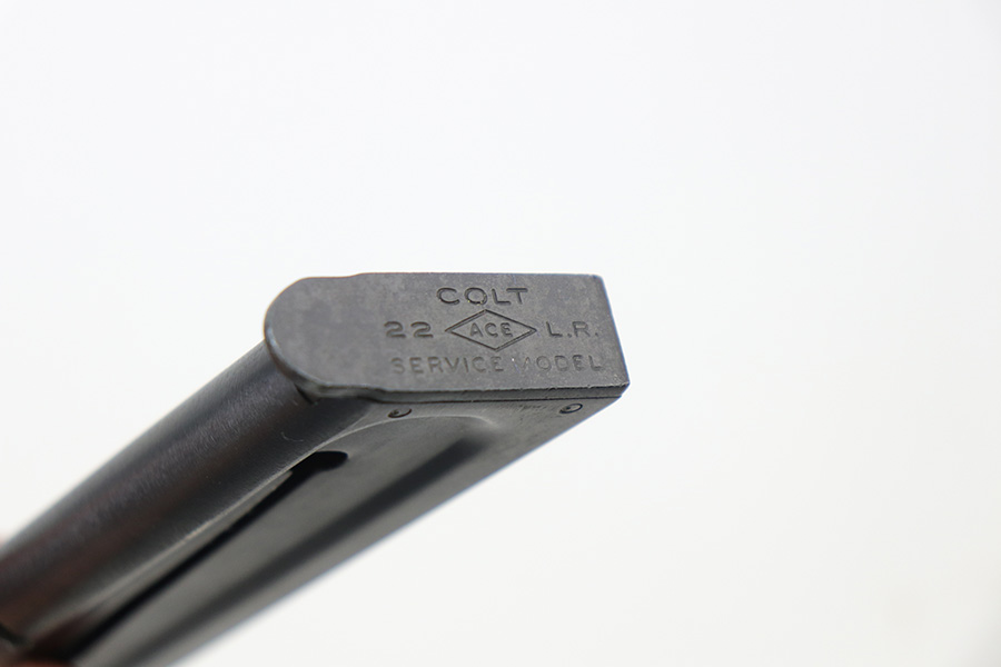 11/5/21 – This is an original Colt ACE magazine made during / just before WW2. The magazine is marked on the base with the Colt ACE New Service Model logo. The magazine has excellent finish throughout with no rust or pitting, and a fully functional spring.