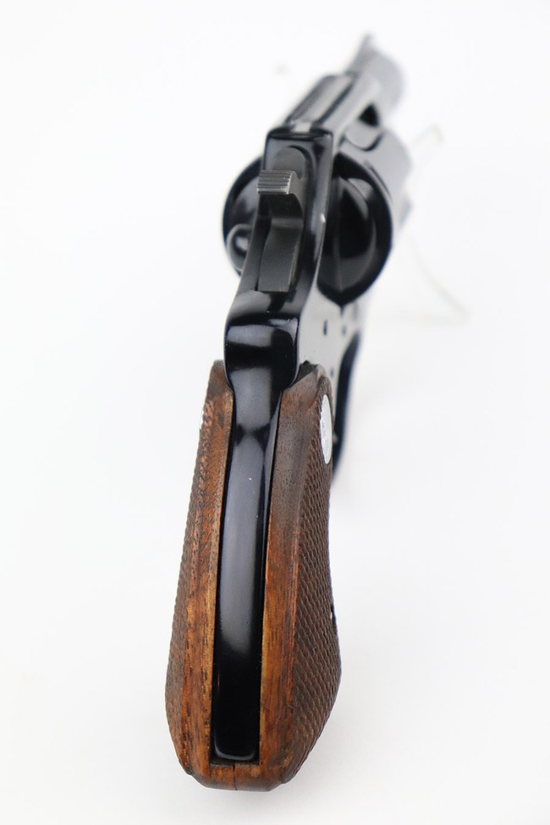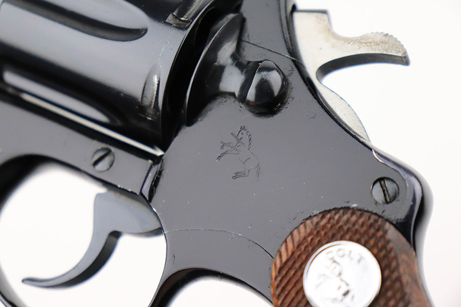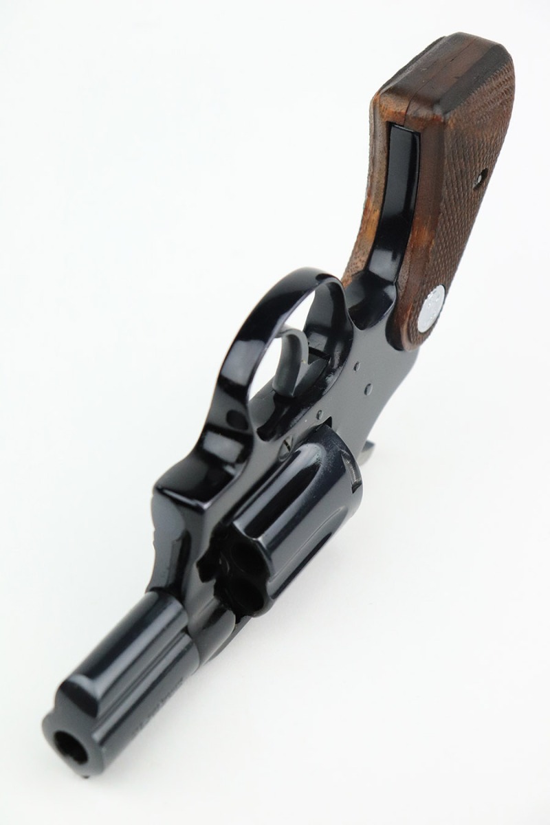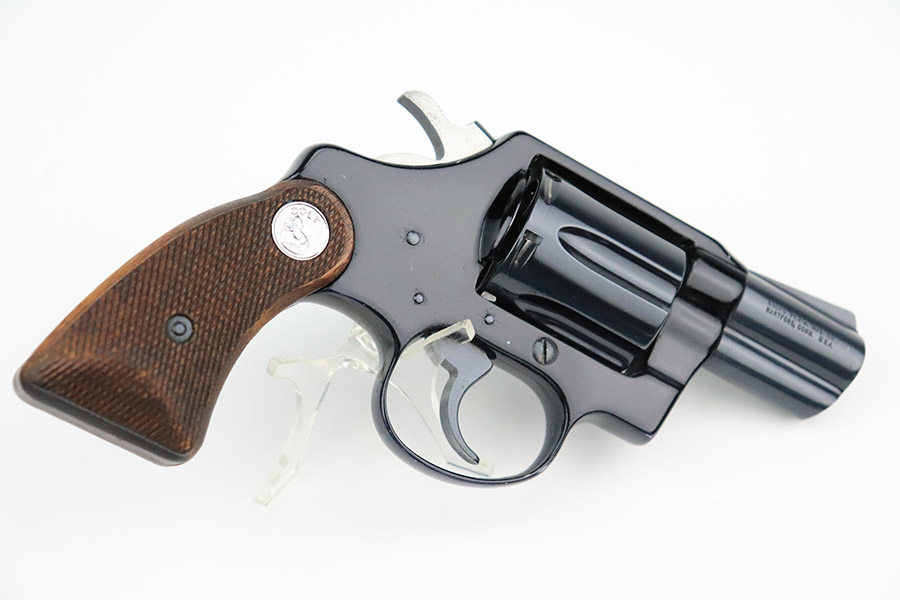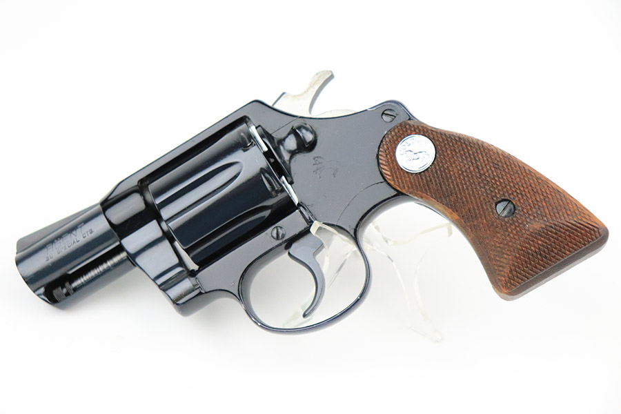 11/2/22 – This is a near-mint example of a Colt Agent Revolver, manufactured in 1976 and chambered in .38 Special. It has a 2″ barrel and a lightweight aluminum frame. The gun has retained essentially all of its original finish with just a couple of tiny surface scratches on the right side of the frame. There is also just the slightest hint of a roll mark on the cylinder. Comes with excellent hand-checkered Walnut grips. Mint bore. The cylinder is tight, and the action is smooth.