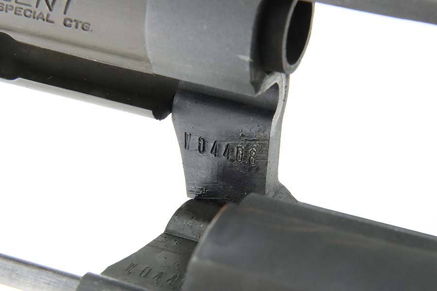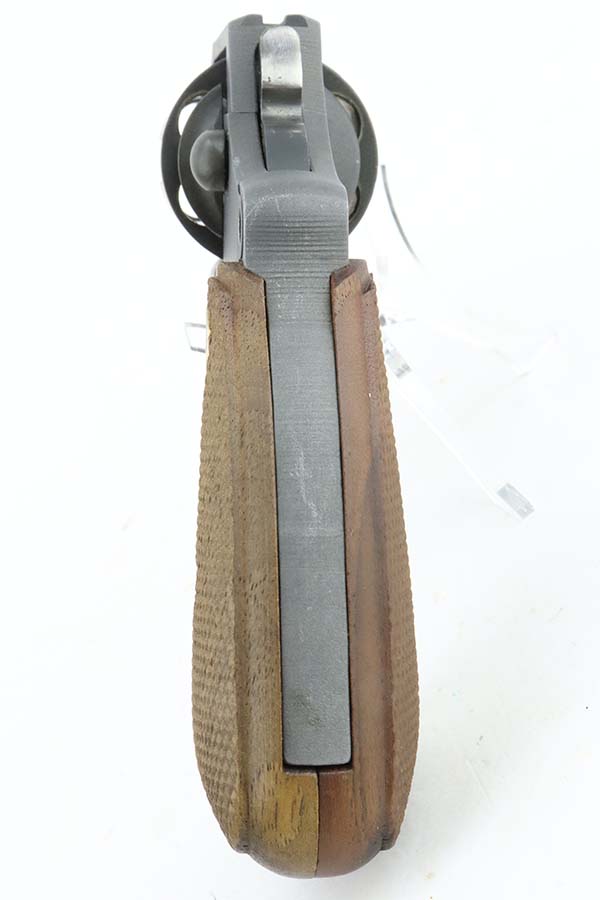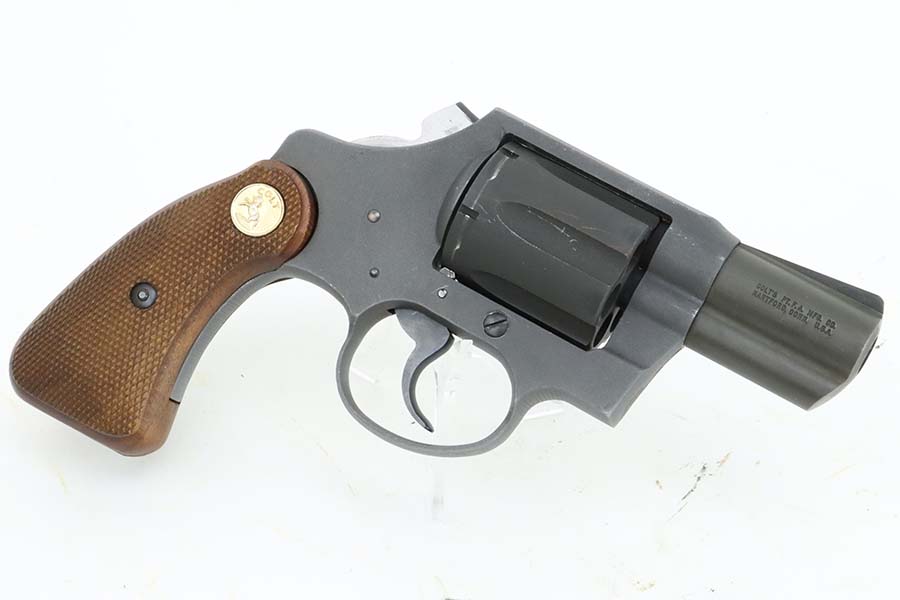 5/31/24 – This is a 2.25″ Colt Agent Revolver, chambered in .38 Special. The gun has a parkerized finish and a bobbed hammer. Virtually no signs of finish loss. Fitted with excellent checkered wood grips. Excellent bore with strong rifling.