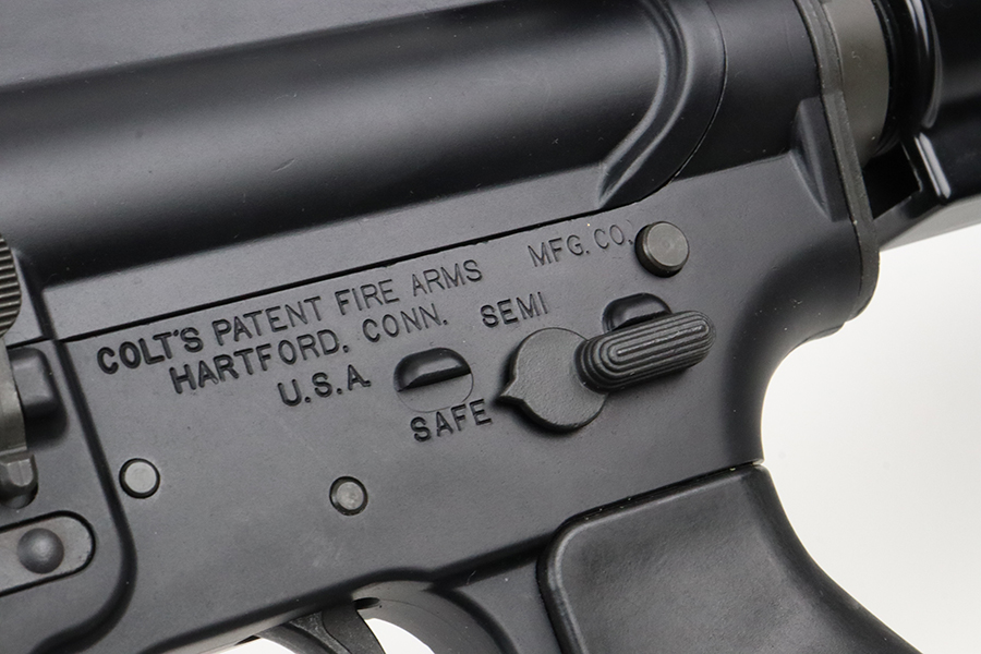 3/20/24 – This is a Colt AR-15 semi auto rifle, chambered in 5.56mm. Fitted with a muzzle attachment and adjustable rear stock. Comes with one Colt magazine. Virtually no signs of wear or use. Mint bore.