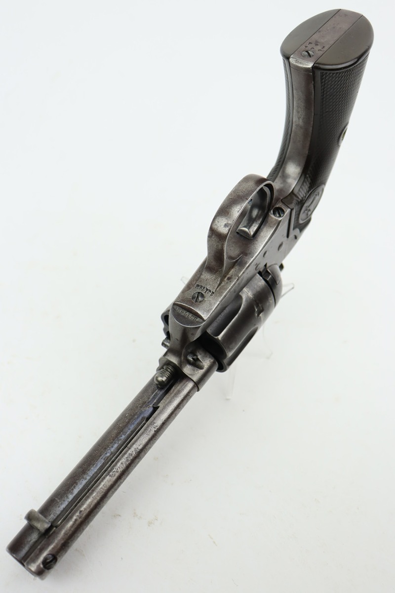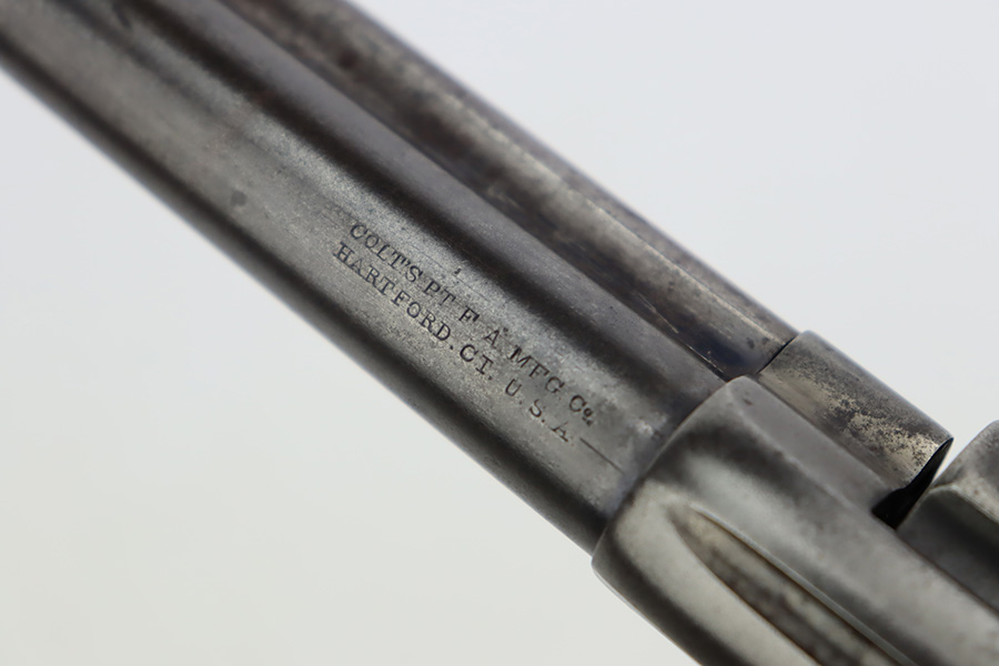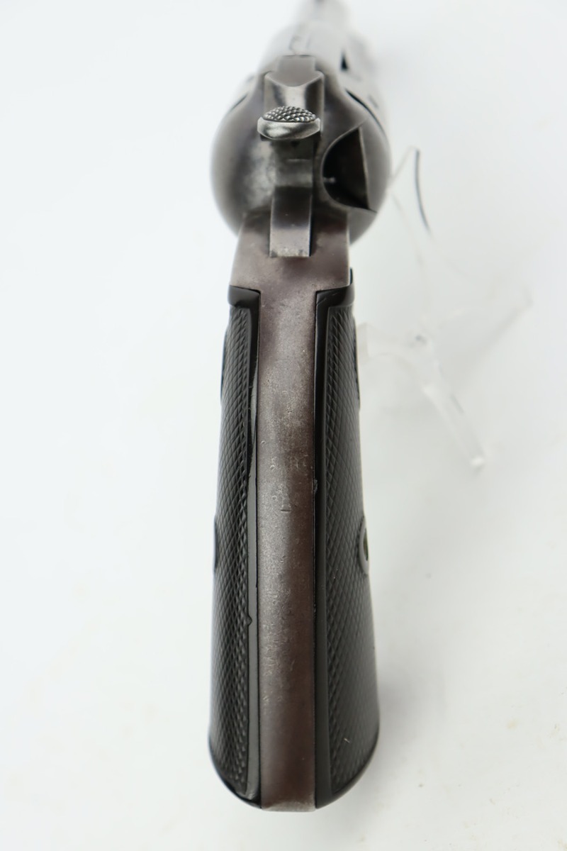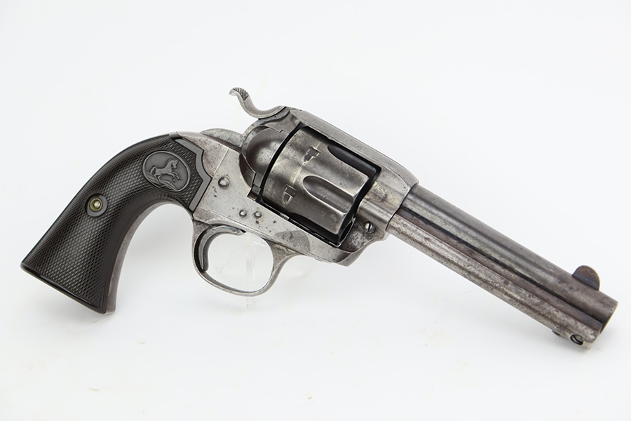 9/20/23 – This is an original Colt Bisley Model revolver from 1907. All numbered parts match and the bluing is original throughout. The finish is obviously worn with notable patina but no major areas of corrosion. Barrel is 4.75in with strong rifling but some corrosion in the forward half of the barrel. Excellent hard rubber grips with no cracks. Good mechanically.