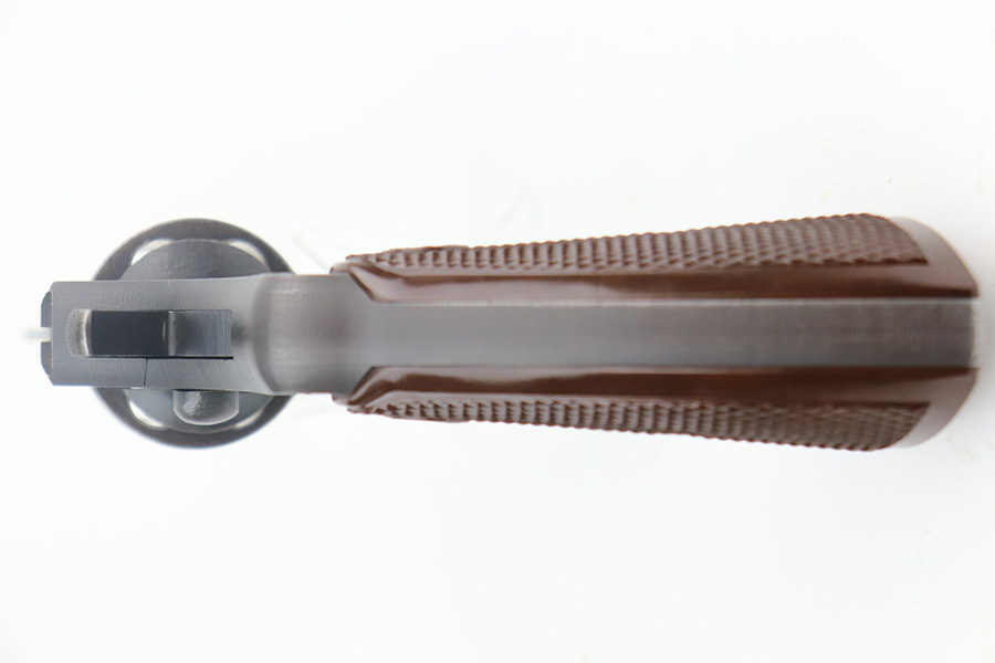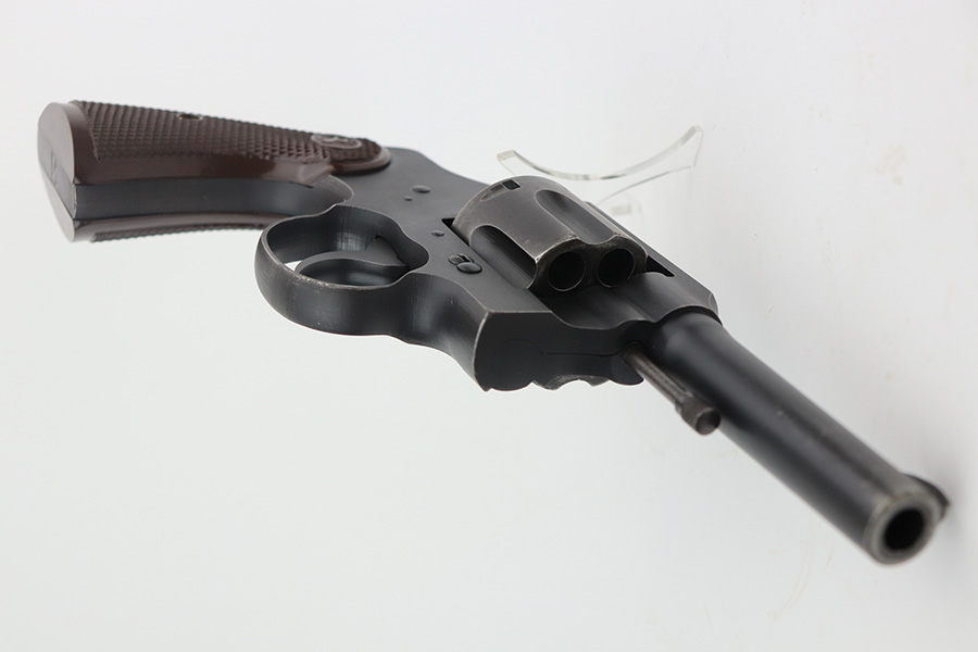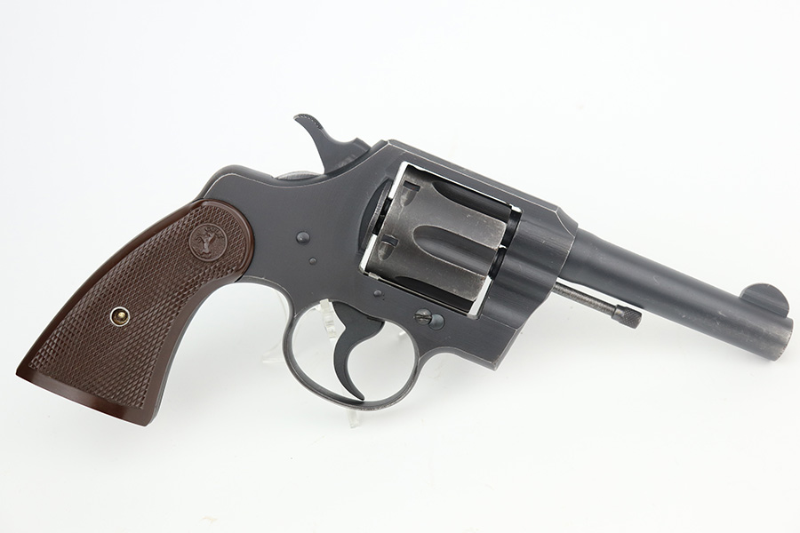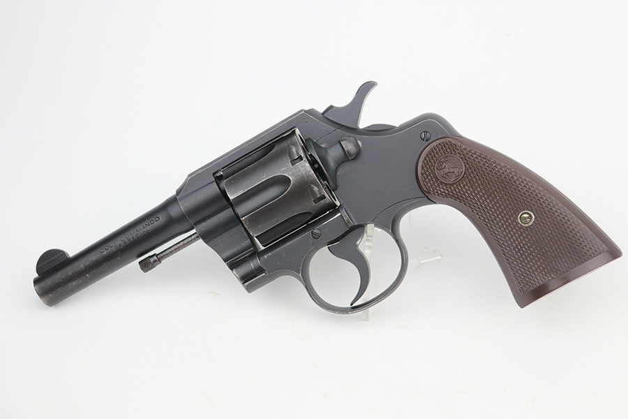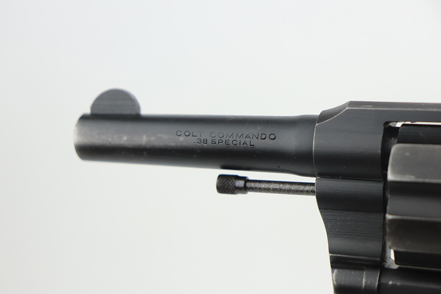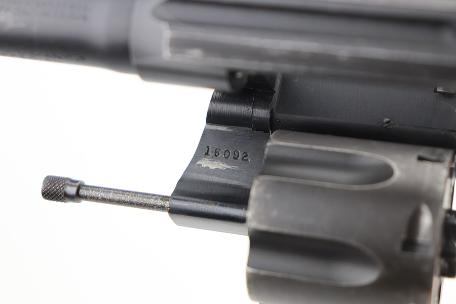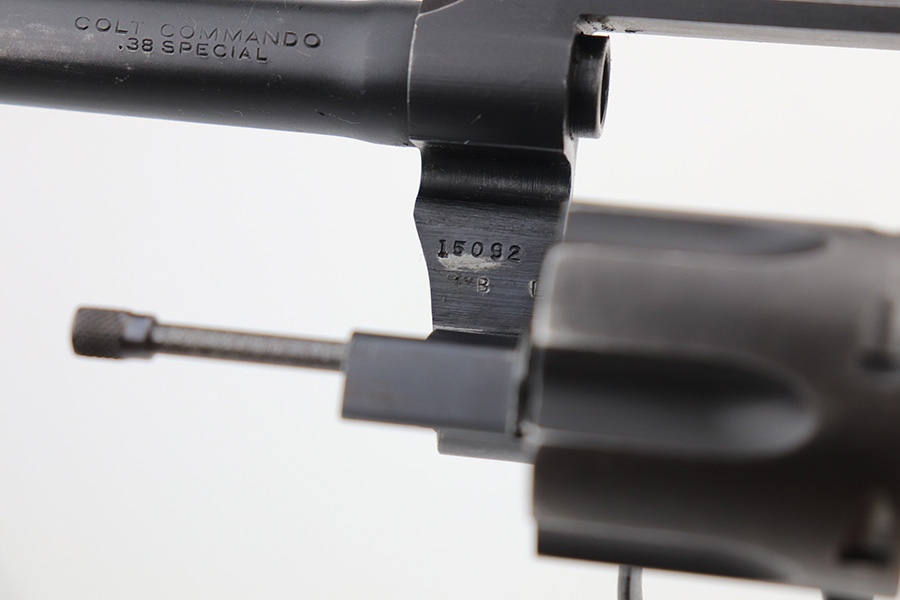6/18/21 – This is a nice example of a Colt Commando revolver, made during World War II. About 93-94% of the original finish remains, with most of the wear on the cylinder and sides of the barrel. Minty grips and smooth action. Flaming bomb proof on frame. Bore has minor hints of frost but excellent overall. A letter ‘B’ is scratched into the bottom frame for whatever reason.
