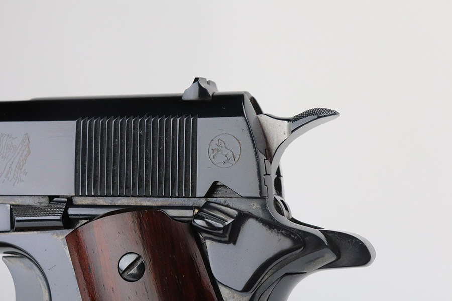 8/2/21 – This is a mint example of a Colt 1911 that was produced to commemorate the Battle of Belleau Wood. The Battle of Belleau wood is where the United States Marines stopped the German Offensive. The Marines fought so hard that the Germans gave them the nickname “Devil Dog”. The gun is in like-new condition and remains in the presentation/display case these were sold in. FFL required.