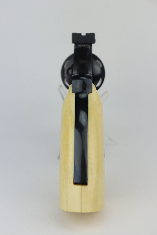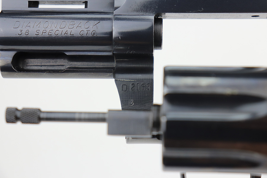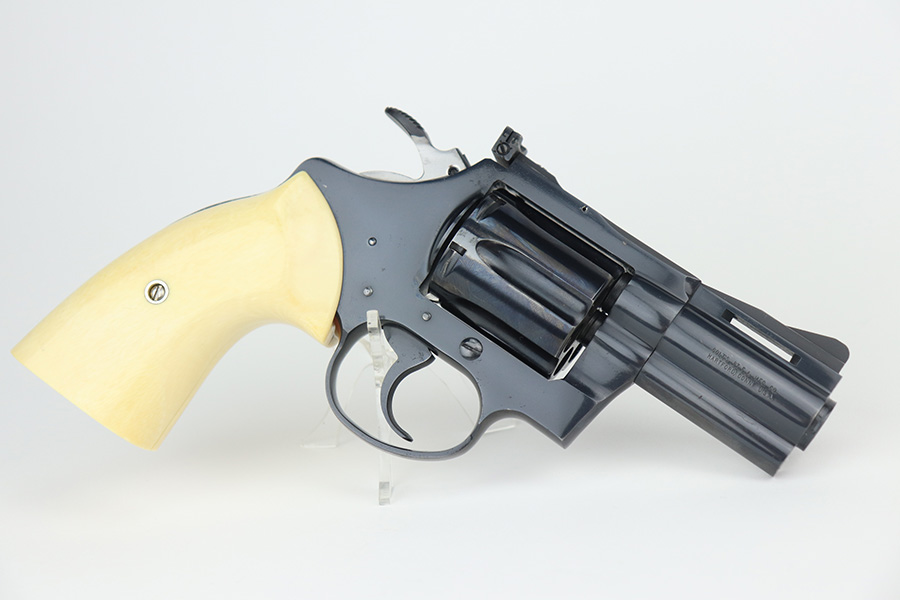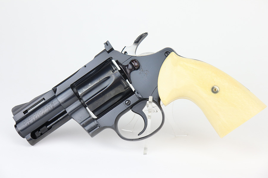 6/17/21 – This is a mint example of a Colt Diamondback revolver, manufactured in 1966. It is all matching The gun has beautiful replaced ivory grips. It has retained about 99% of its original finish. There is just a hint of a roll mark on the cylinder and some very light micro-scratches on the right side of the barrel. The cylinder is tight and the action is smooth. The bore is mint.