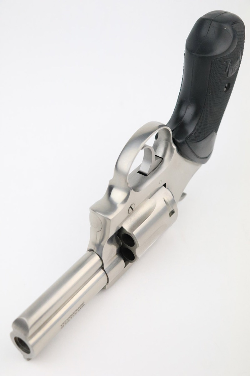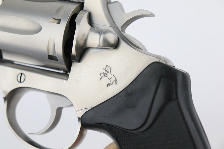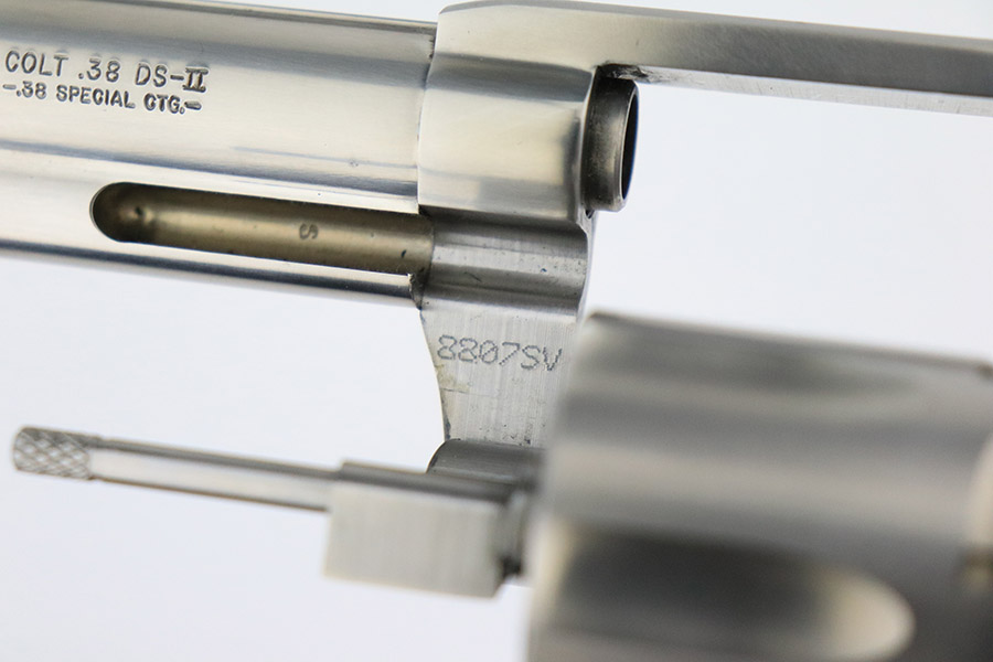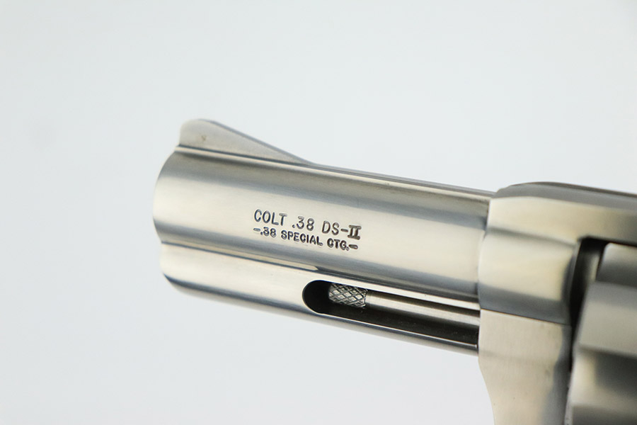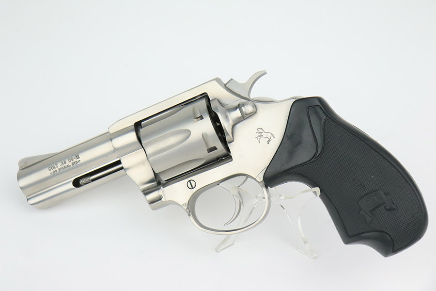 10/20/22 – This is a mint example of a Colt DS-II revolver, manufactured in 1998 and chambered in .38 Special. It is all matching, has a 3″ barrel, and has a really nice stainless finish. The gun is in like-new condition with virtually no signs of wear or use except for a a very faint roll mark on the cylinder. Comes with excellent black rubber Colt grips. Mint bore. The cylinder is tight, and the action is smooth.