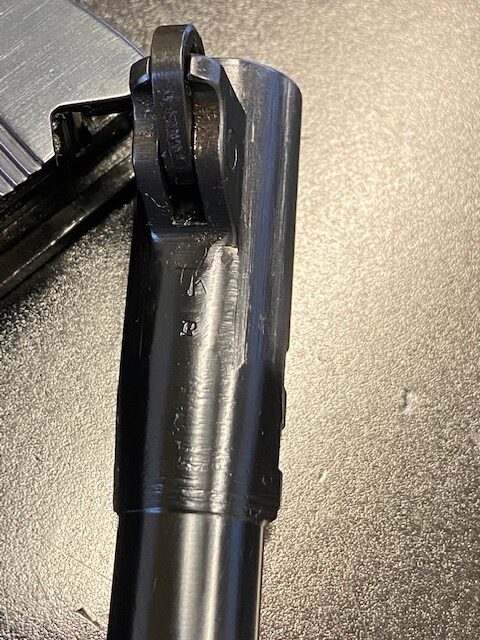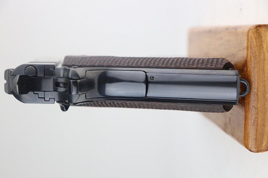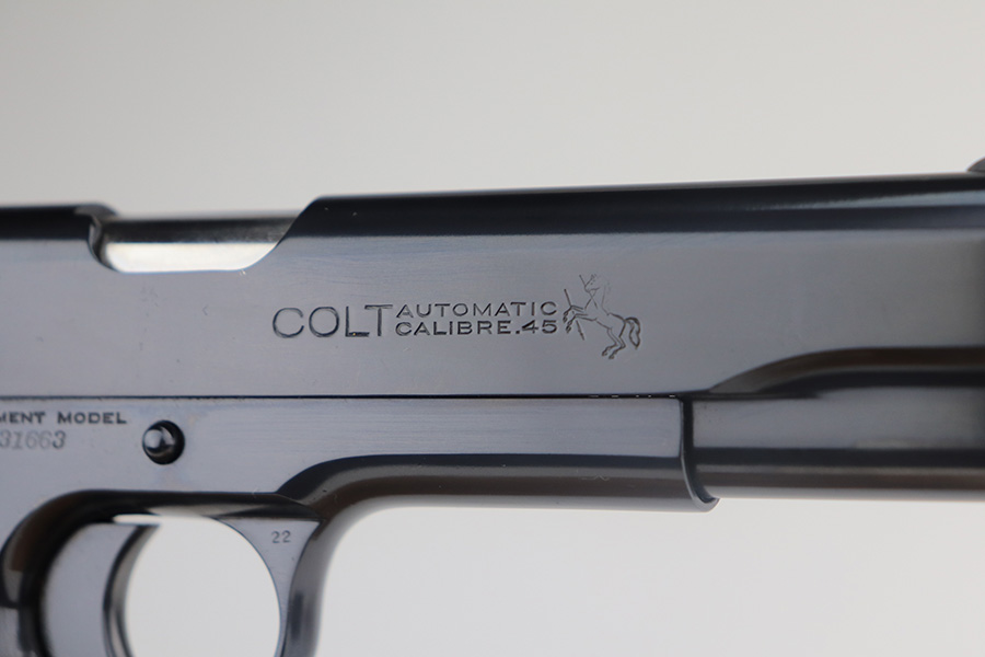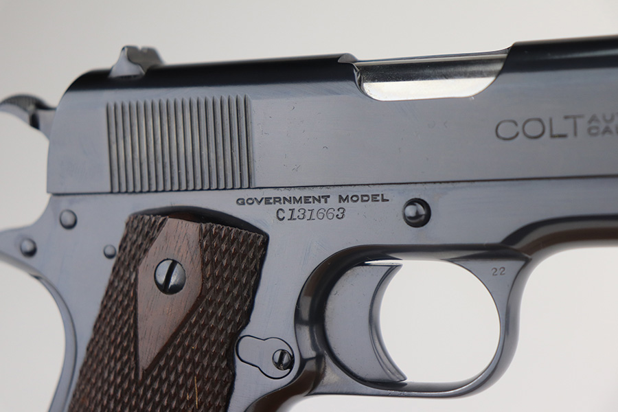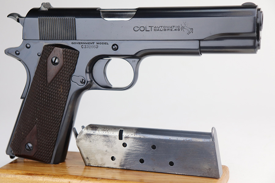 5/18/21 – This is a beautiful Colt Government Model 1911 from 1921 that had the finish professionally restored at some point. The restoration work was done very well and the appearance is very comparable to a minty, original example. Excellent grips with no cracks or chips. Bore has very strong rifling with just a hint of frost in the grooves. Two-tone magazine.