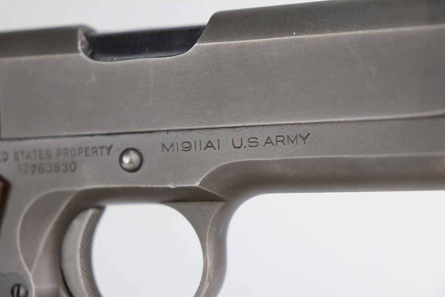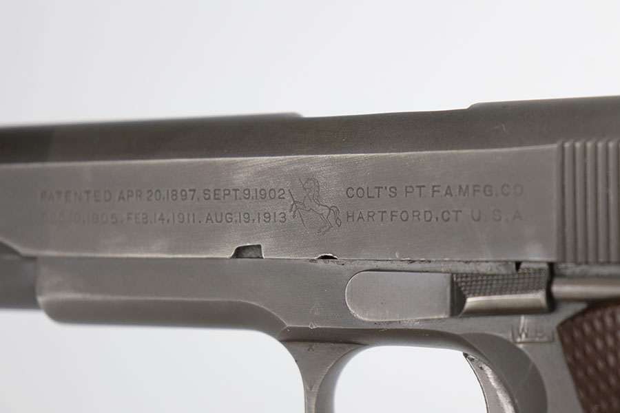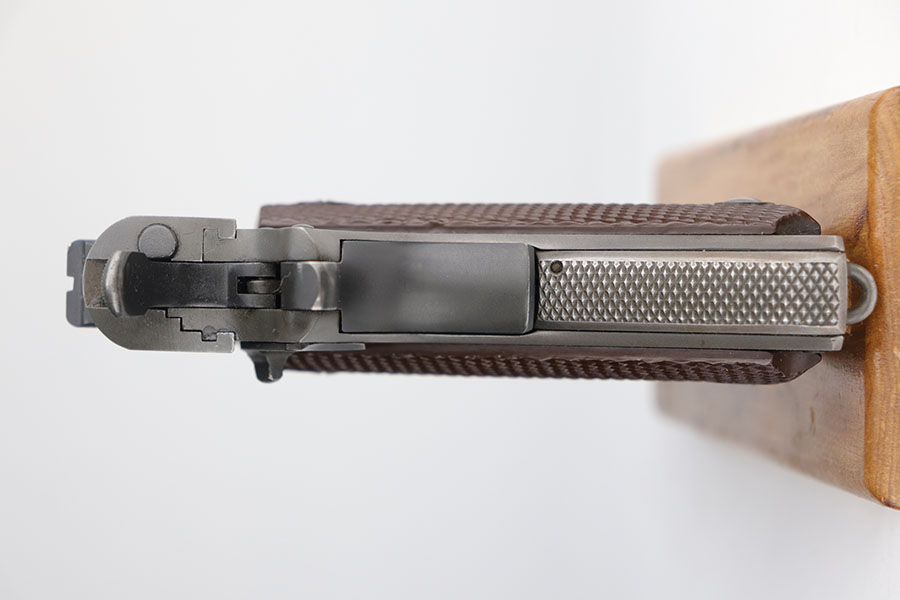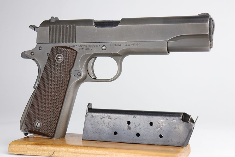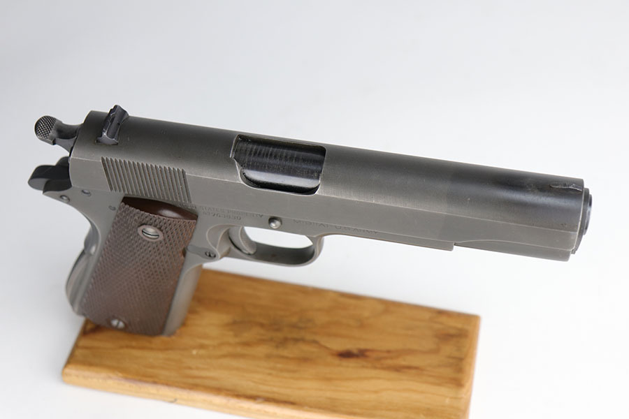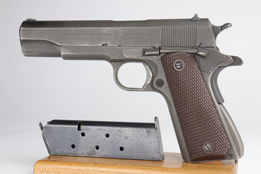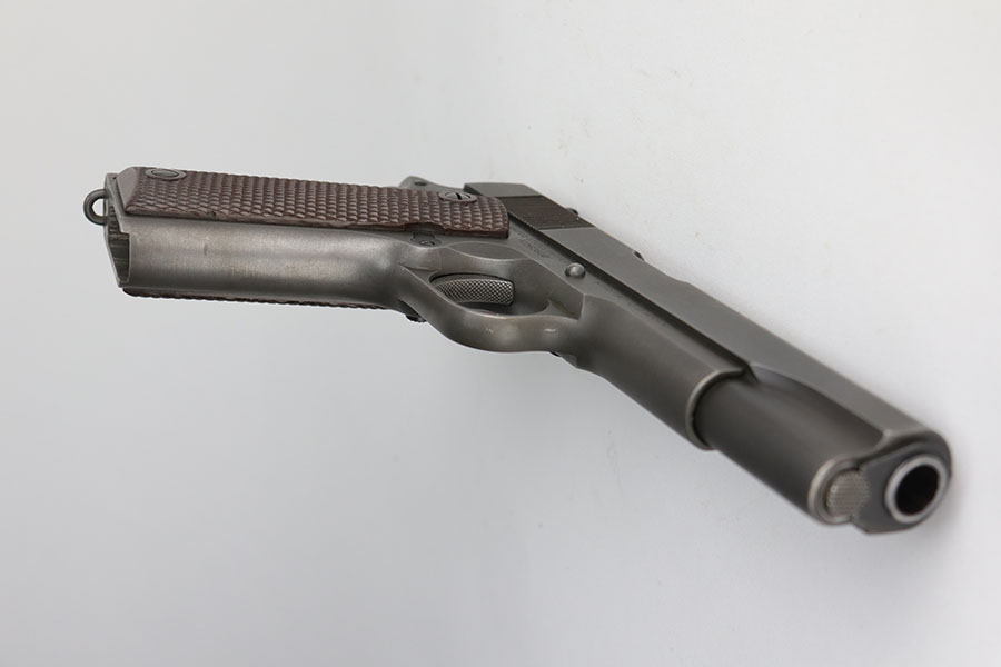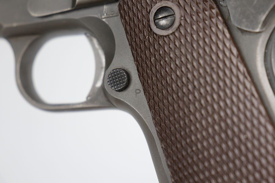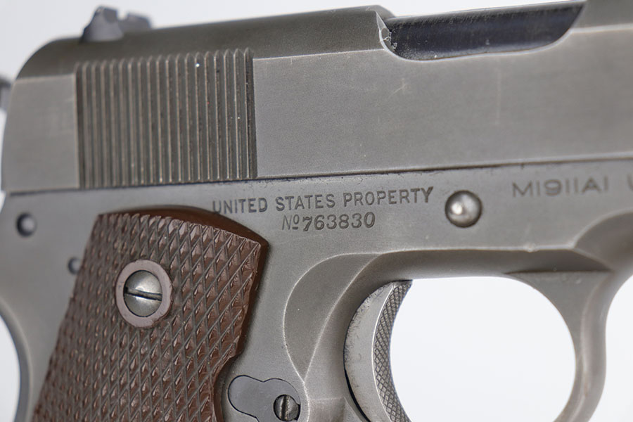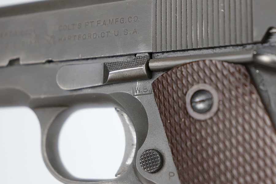 9/9/20 – This is a Colt M1911A1 from World War II. It was manufactured in 1942 and only about 100,000 were produced that year, compared to over 750,000 in 1943. The original finish is very nice at about 95-96% with only minor muzzle and edge wear, and some dulling of the finish on the front strap. This M1911A1 is WB (Colonel Waldemar S. Broberg) inspector marked. Slide is matching numbered to frame. Correct Colt barrel with large ‘G’ under lug. Magazine marked ‘C-S’ on the bottom. Bore is shiny with strong rifling.