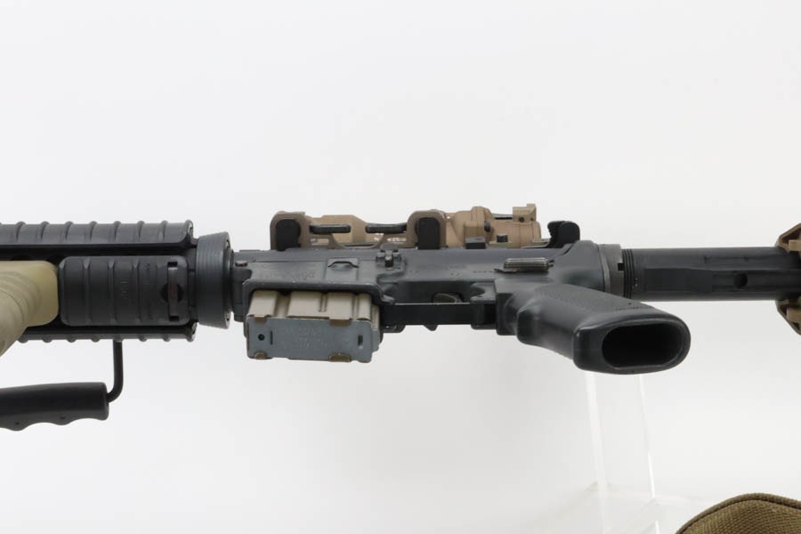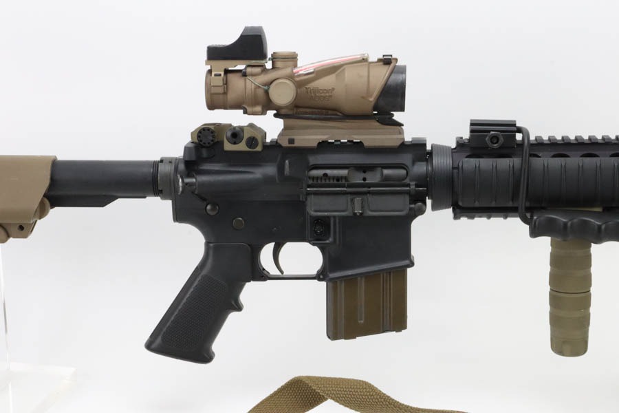 9/25/24 – This is an excellent example of a Colt M4LE with desirable Trijicon ACOG sight. The gun shows minimal signs of wear or use, an is also equipped with Troy combat grip, Vickers Tactical sling, LMT adjustable stock, Knight’s Armament fore grip, and more. The Trijicon scope retails for nearly $1500 alone, so this gun is priced well below the sum of the parts. Optics are crystal clear. Bore is minty and functionality is perfect. FFL required.