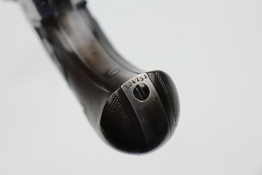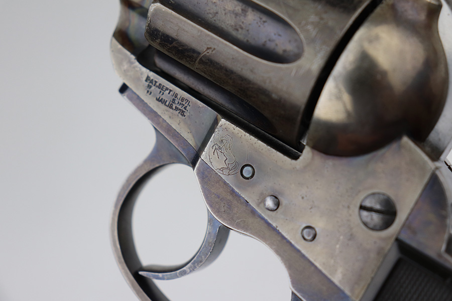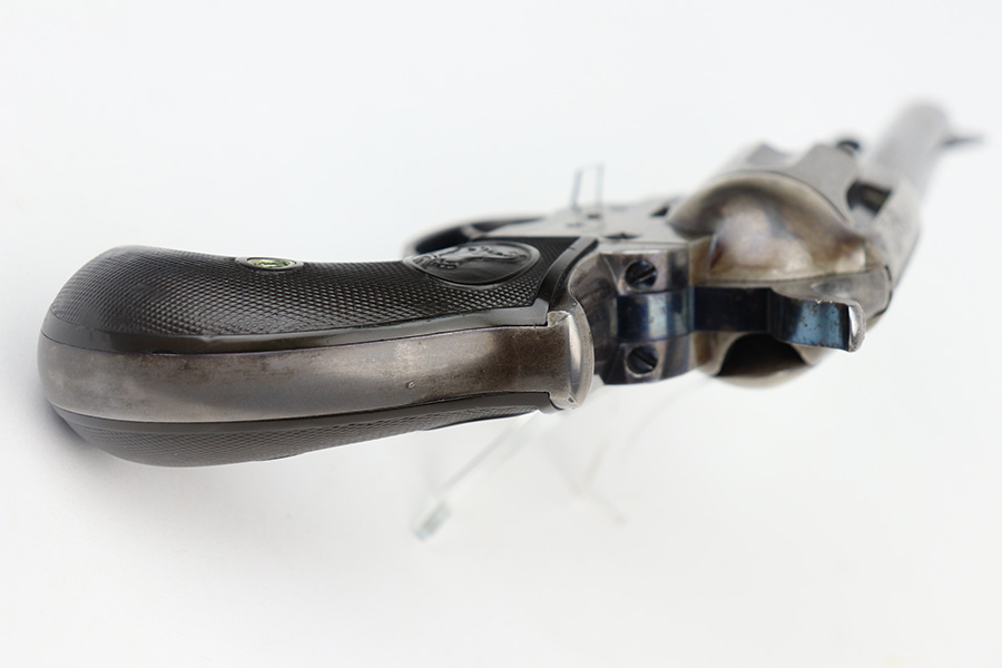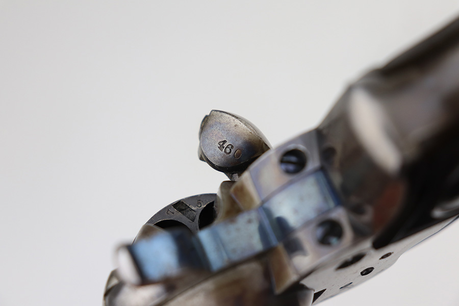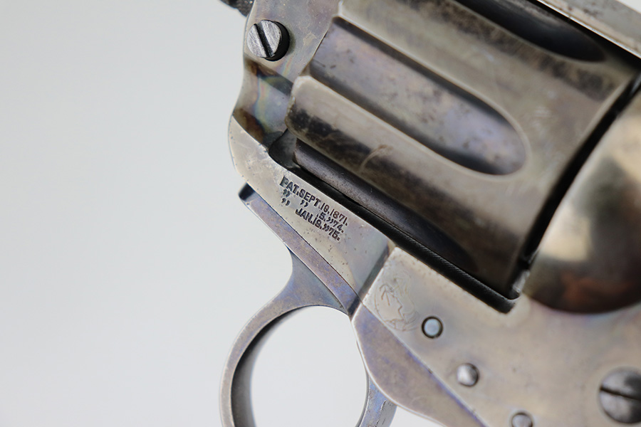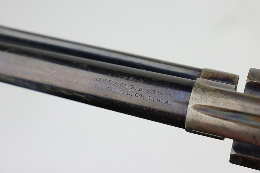 5/12/21 – Here’s a pretty nice old antique Colt Model 1877 “Lightning” revolver. Comes with a Colt archive letter stating it shipped to a hardware company in St. Louis in 1896. The Model 1877 was Colt’s first attempt at a double action revolver and is chambered for the .38 Long Colt cartridge. It has an outward appearance similar to that of the famous Single Action Army with a solid frame and loading gate. This revolver wears a 4-1/2″ barrel with ejector rod. The serial number is matching on frame, trigger guard, backstrap, cylinder and both hard rubber grips. Overall condition is decent and there is quite a bit of the case hardening remaining. Obvious finish loss on cylinder, grip frame and side of barrel, with some pitting along the top of frame. The original hard rubber grips are in good shape with minor smoothing. This revolver functions well in double action, but hammer occasionally doesn’t stay all the way back in single action. Timing is good and lock-up is excellent with the trigger held to the rear. The bore is excellent. Antique so no license required. Also includes 20 rounds of vintage .38 Long Colt ammunition.