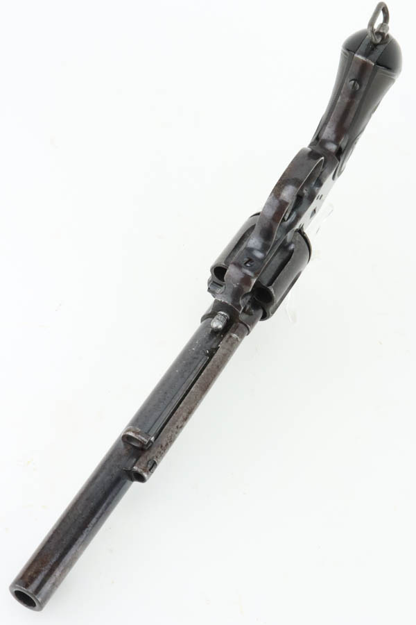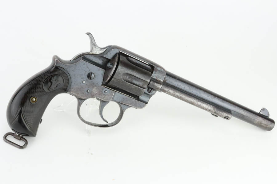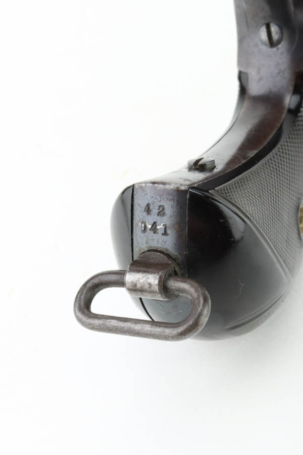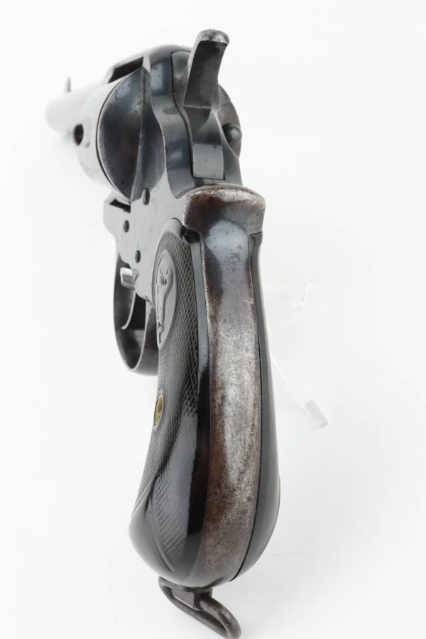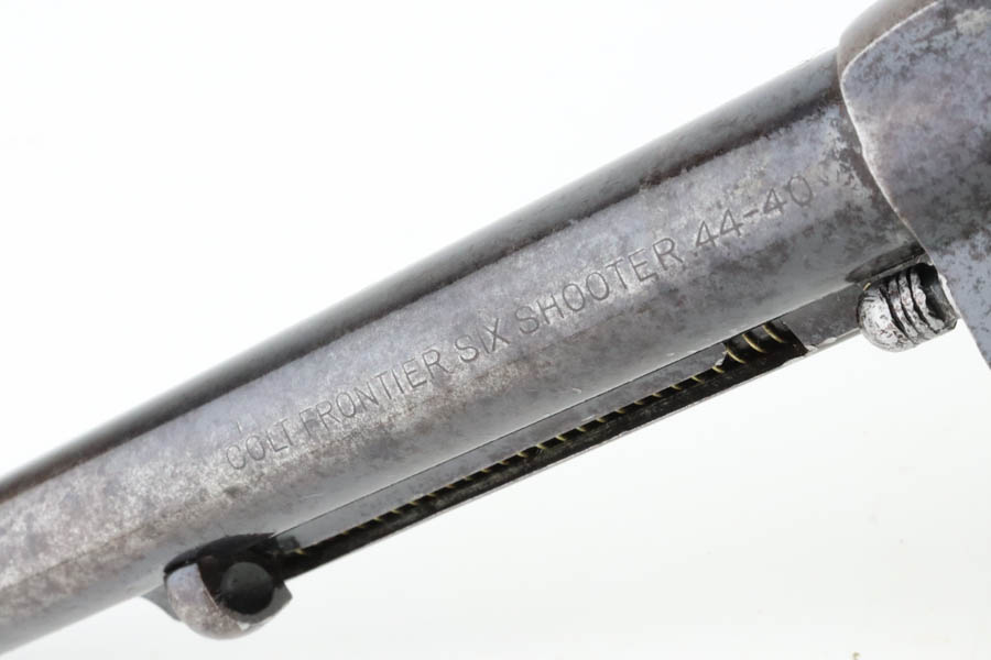 6/19/24 – This is a Colt Model 1878 Frontier Six Shooter, manufactured in 1899 and chambered in .44-40. 7.5 inch barrel. It has retained roughly 75-80% of its original finish. Most of the finish loss is along the barrel and on the grip straps. There is also obvious spotty oxidation throughout. Fitted with proper black hard rubber grips. The bore is mostly shiny with great rifling, but there are some spots of minor surface oxidation.