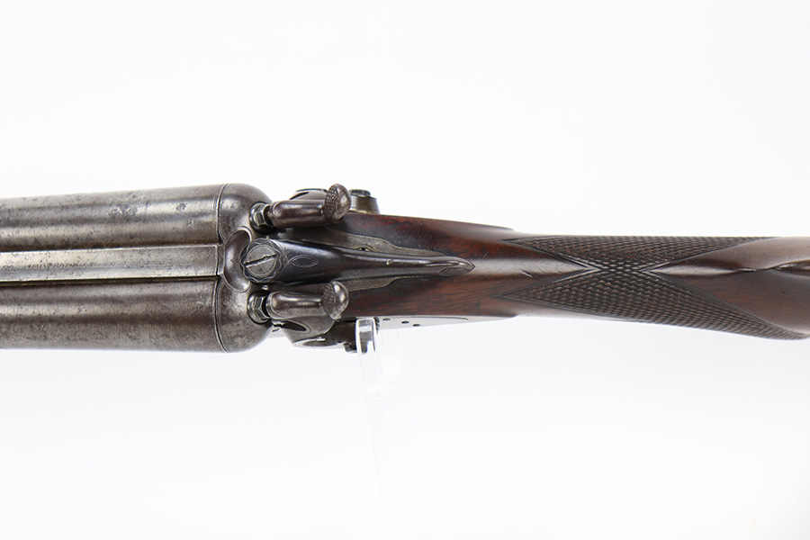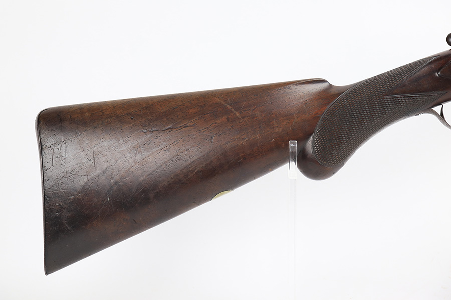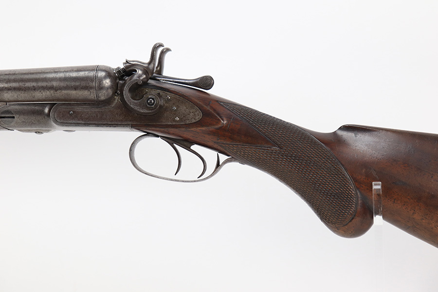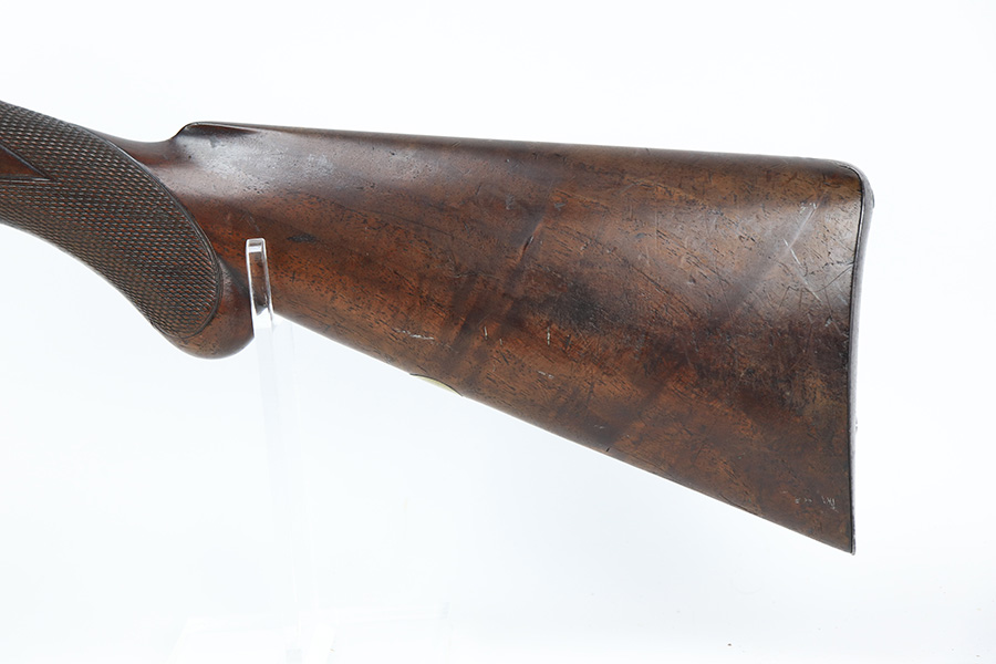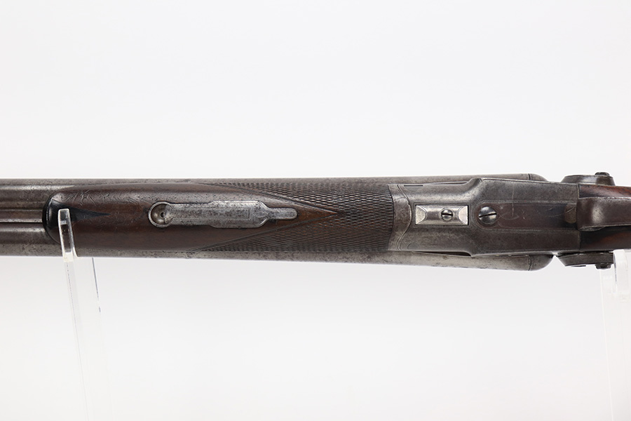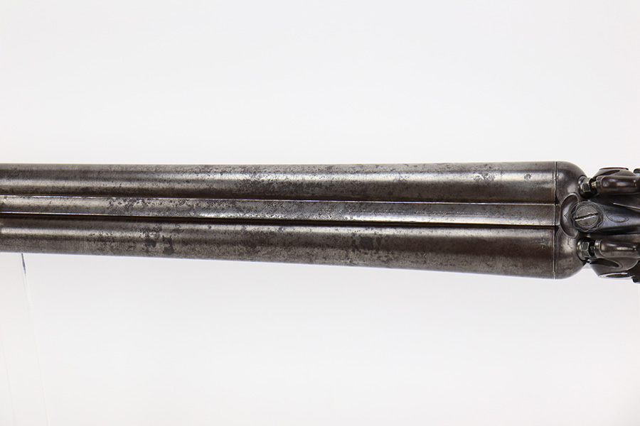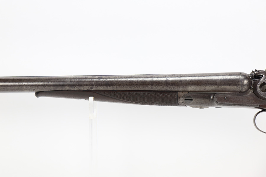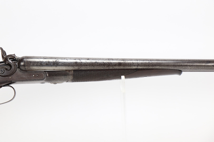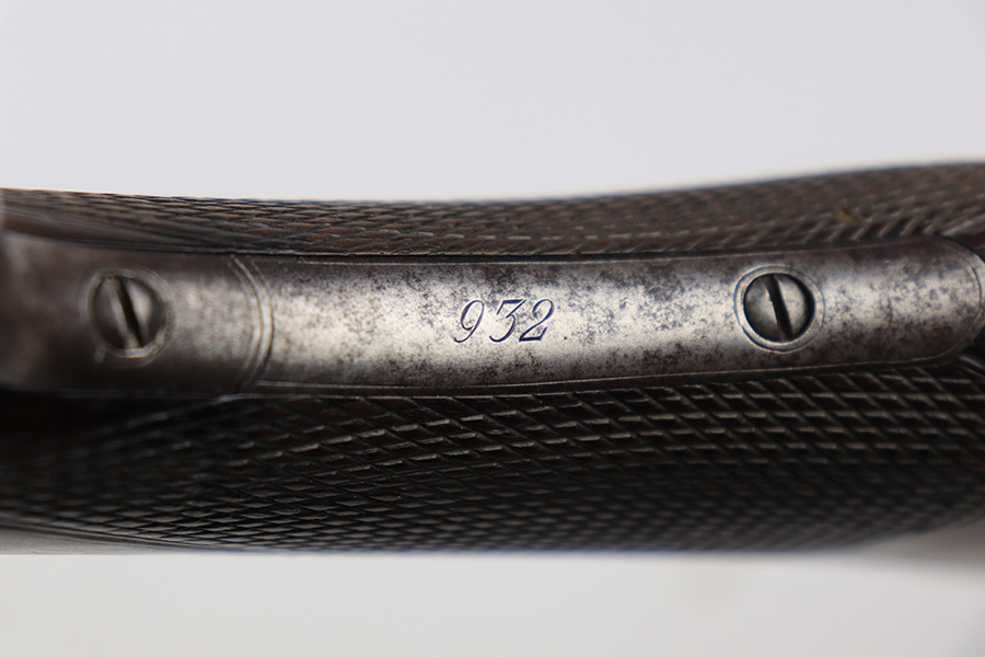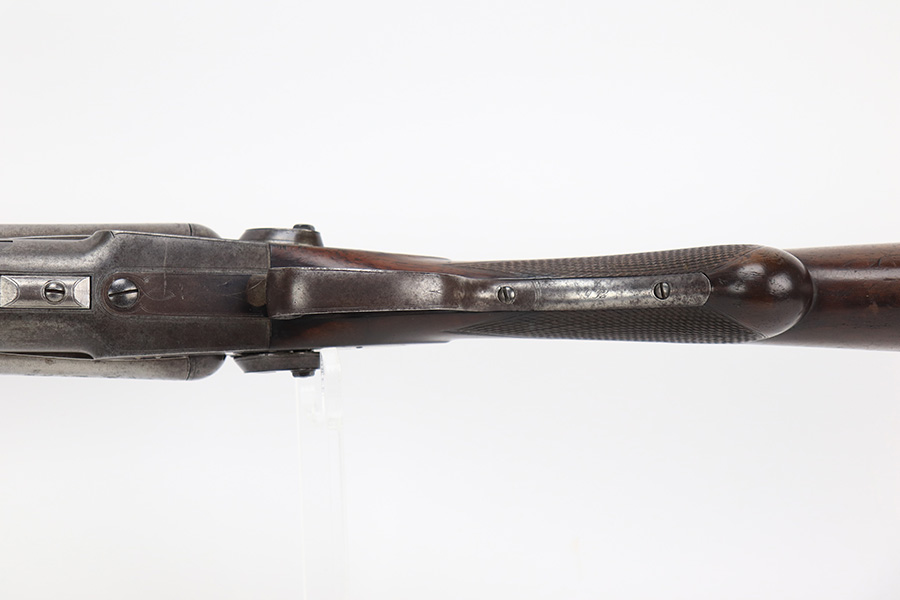 6/7/23 – This is a nice example of a Colt Model 1878 Hammer shotgun made in 1878. The gun is all matching and fully functional. Overall, the gun is in nice condition, almost all of the original finish is worn with brown “attic patina” and spotty oxidation throughout. The original damascus pattern on the barrels is barely visible in some places but mostly worn. The case-hardening on the receiver and small parts is almost entirely worn but still partially visible on the inside of the foregrip. No major damage to the original wood furniture, but there is minor scratching throughout. Heavy brown patina on the butt plate. The bores have minor pitting throughout. Everything seems to function as it should.