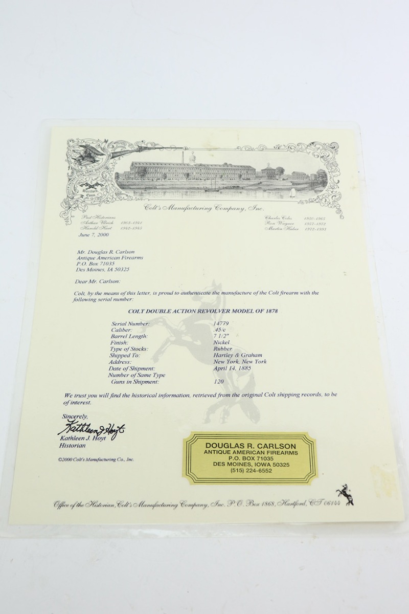 SOLD – Colt Model 1878 Revolver – With Factory Letter