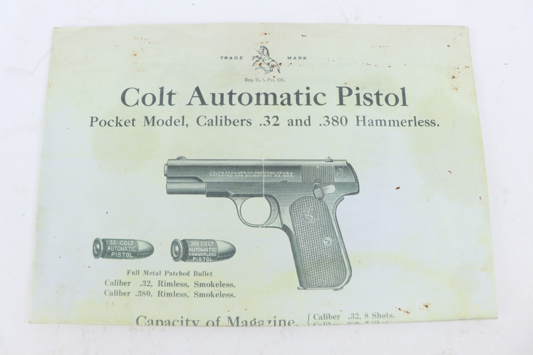 SOLD – Colt Model 1908 Pocket Hammerless – Factory Letter