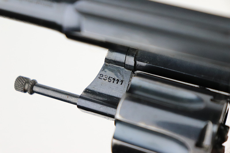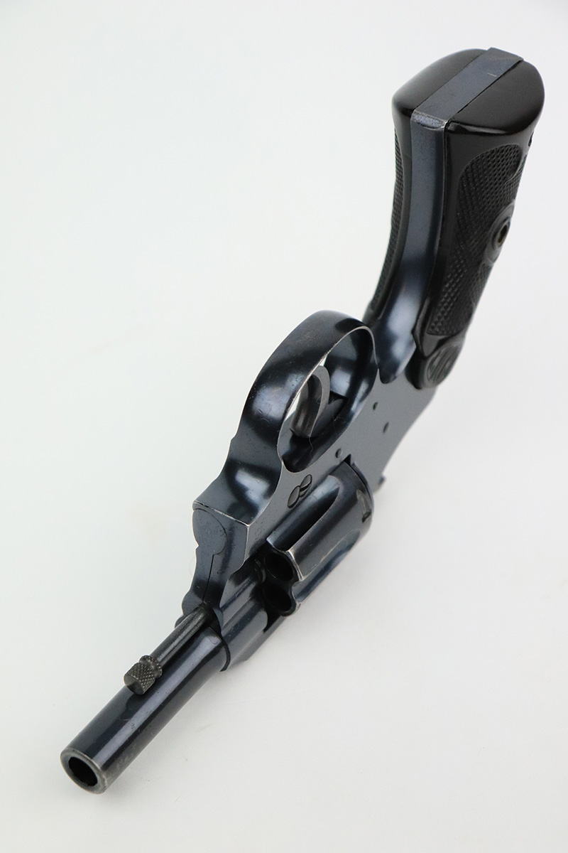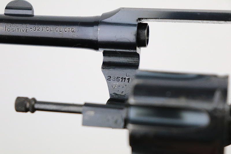 10/7/22 – This is an original Colt Police Positive from 1937. Second issue example, with 2.5in barrel and chambered for .32 Police. Original blue rates at about 90-92% with wear on muzzle and cylinder. Minty bore and good timing/action. Nice, original hard rubber grips aside from a small chip in the upper corner of the right panel.
