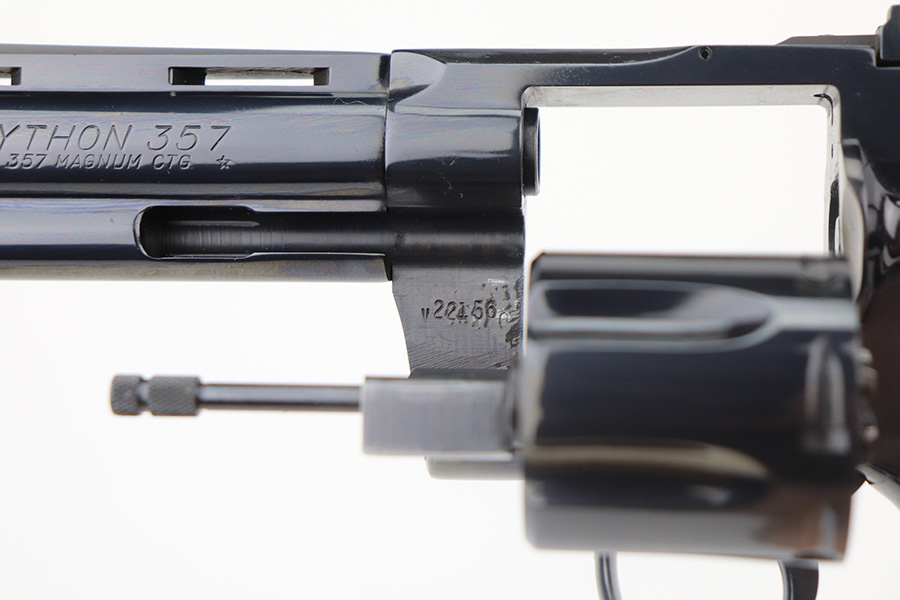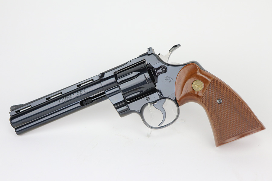 6/25/21 – This is a mint Colt Python from 1978. All original bluing with six inch barrel. Hardly even a roll mark on the cylinder and bore looks nearly unfired. Terrific grips with no defects. Perfect mechanics. FFL required.