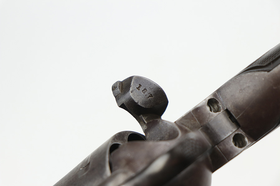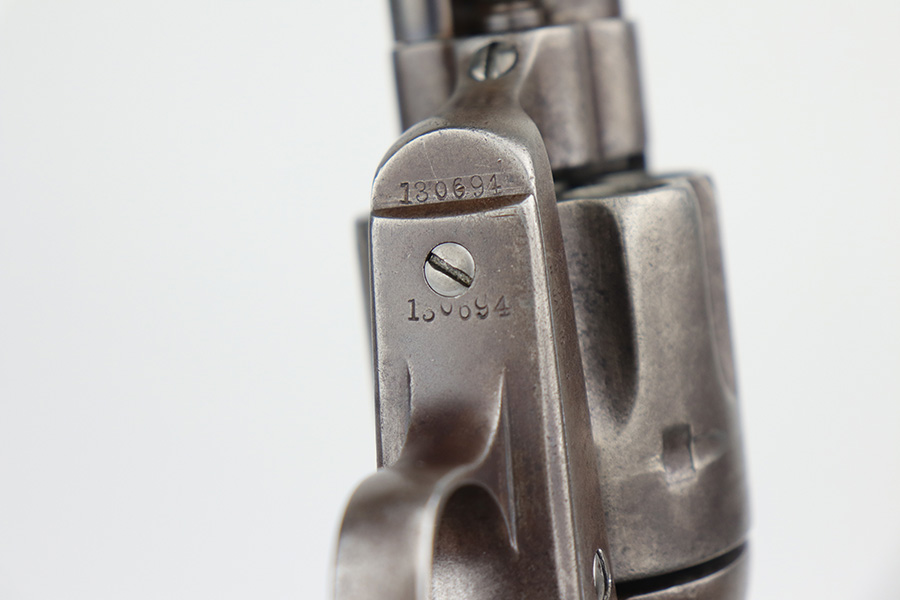 10/29/21 – This is an honest example of a Colt Single Action Army revolver from 1889. It’s a black powder frame with 4.75in barrel and features the eagle grips. The finish is obviously worn throughout with patina all over but no major areas of corrosion. Bore has decent rifling but there is frost throughout, and a few localized areas of pitting. Timing/action seem good. Antique so no license required.