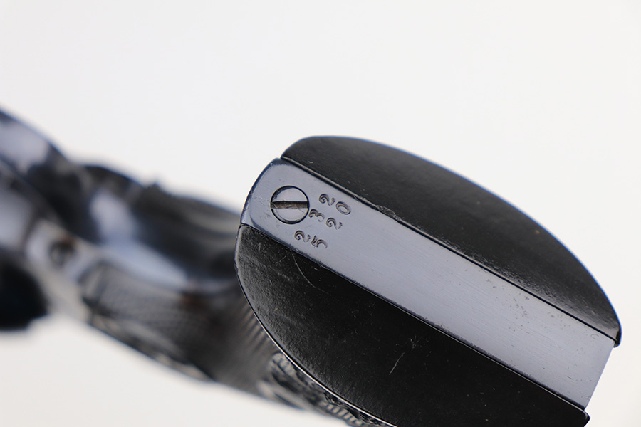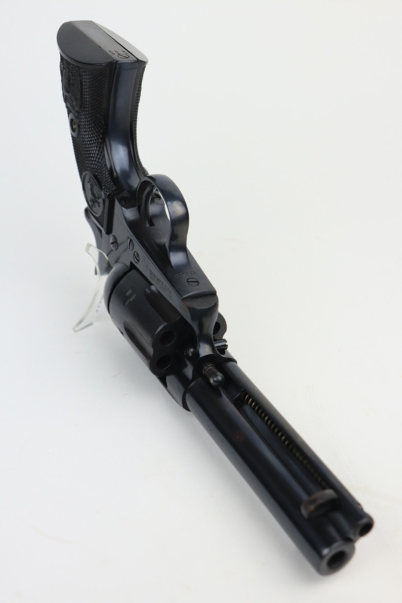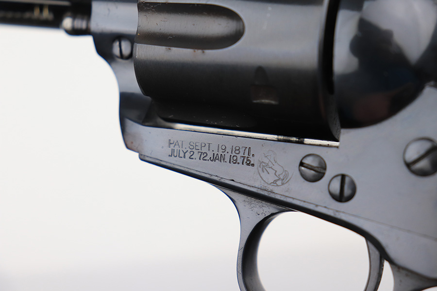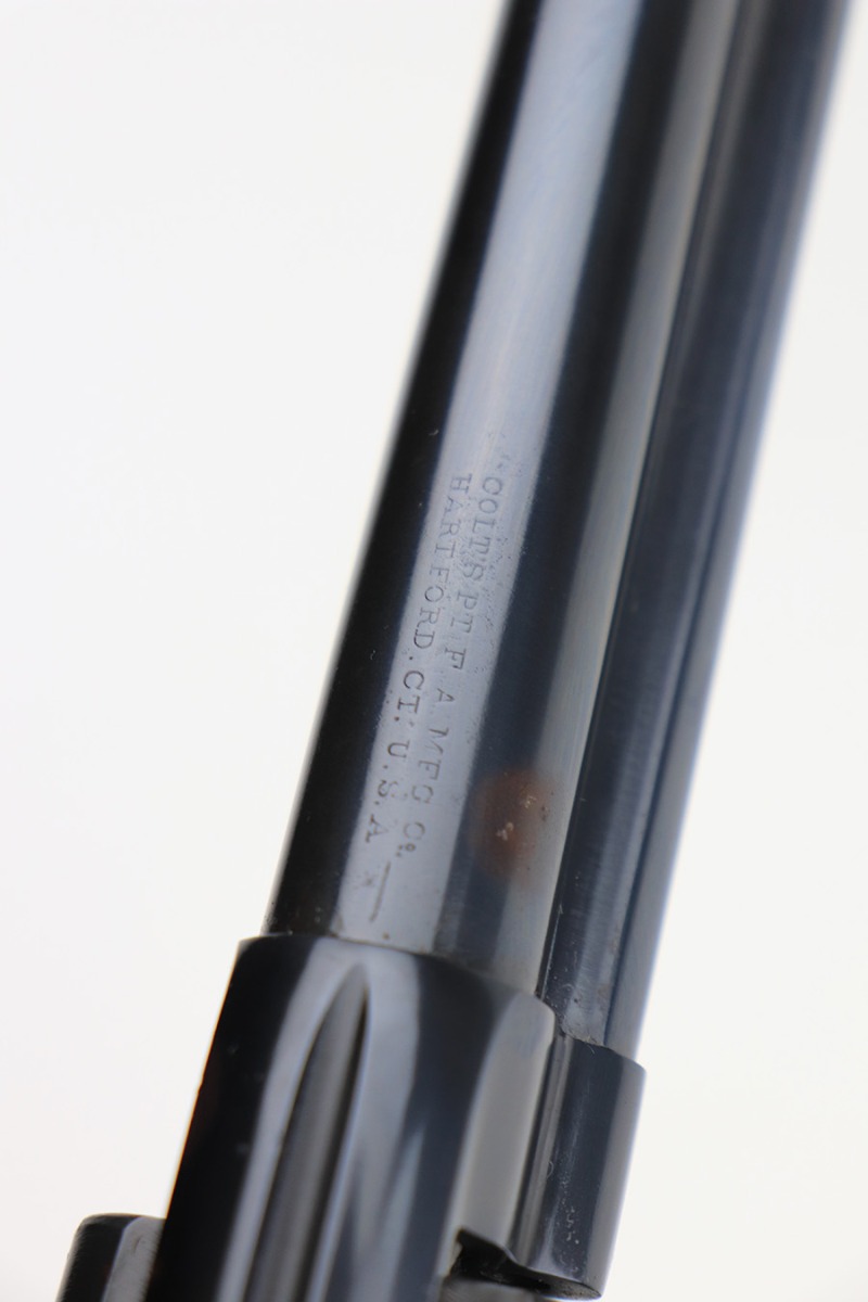 2/11/22 – This is a nice Colt Single Action Army revolver from 1902. It’s a first gen example that is accompanied by a Colt archive letter stating it shipped to a hardware company in Houston, TX. Barrel is 4.75in and it’s chambered for .32-20 WCF. The gun has matching numbers throughout but the finish was restored at some point. Couple of areas of patina/freckling but generally in nice shape. Hard rubber Colt grips that were replaced at some point. Bore is shiny with strong rifling, but has a couple patches of minor pitting.