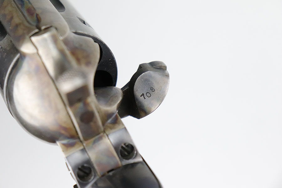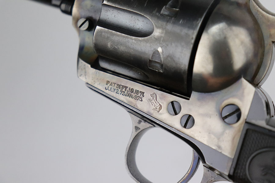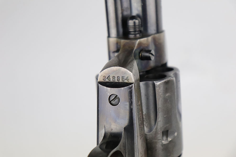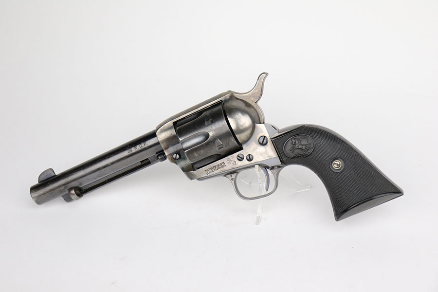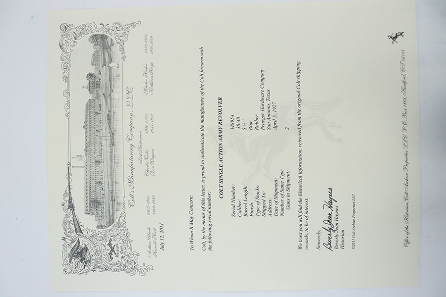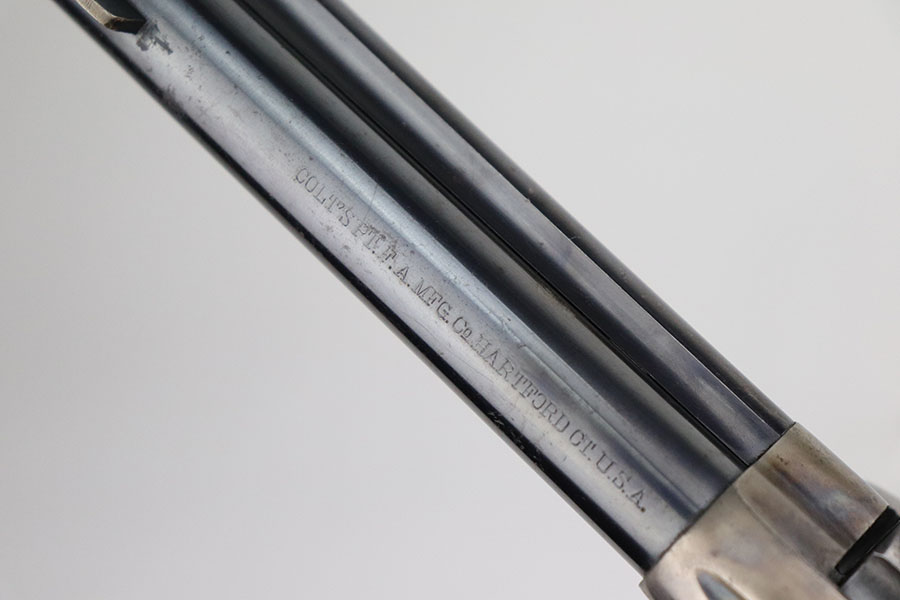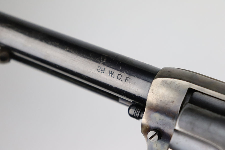 8/21/20 – This is an all matching and original first generation Colt Single Action Army, made in 1926. It’s chambered for .38 W.C.F. and has a 5.5 inch barrel. The original blue rates at about 80% with some thinning on the barrel, cylinder and grip frame. The frame still has very nice case hardening, and some fire blue on the trigger. Terrific bore. Excellent Colt rubber grips. Comes with Colt archives letter saying it shipped to a hardware company in San Antonio in April of 1927.