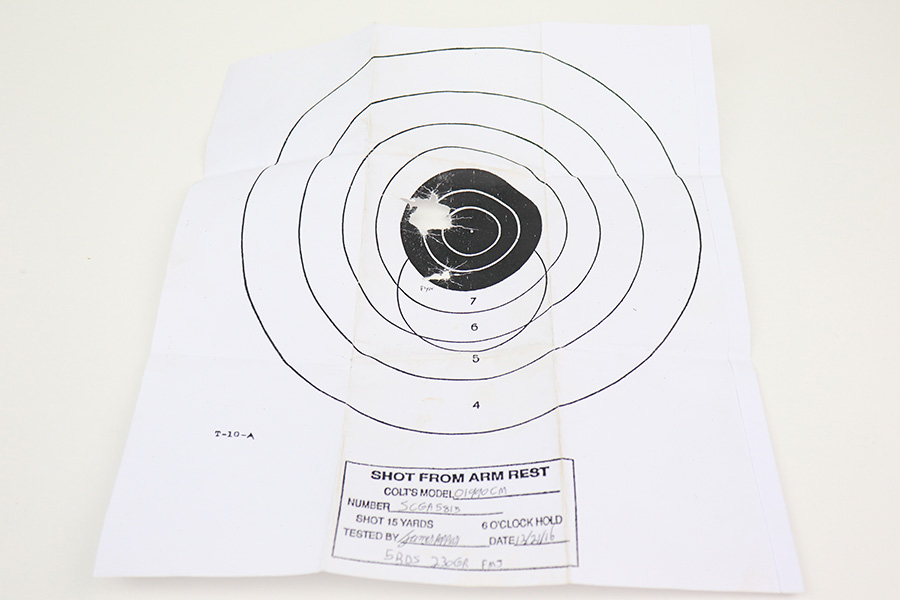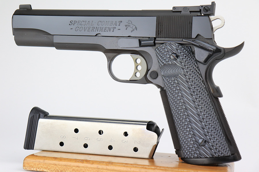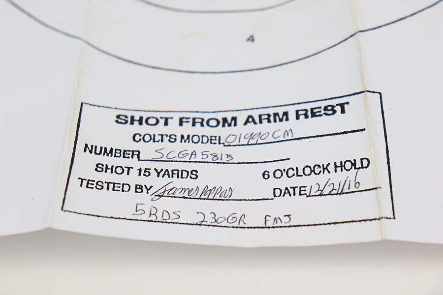 5/16/22 – This is a factory-new example of a Special Combat Government Model 1911 manufactured in 2016. This gun came to us from a former employee of Colt and was purchased as a part of their employee purchase program. The gun has not been fired since test firing. As a result, it is in factory-new condition. It comes with its original matching-numbered hard case, matching-numbered test target, owners manual, two magazines, gun lock, and sales papers. The bore is factory-new.