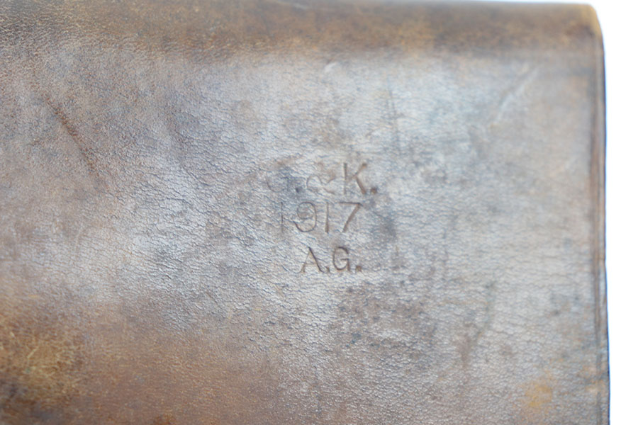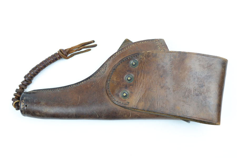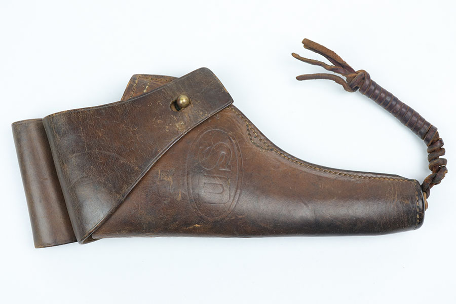 12/1/20 – This is a very nice, all original and in tact model 1917 holster from WW1. This revolver holster is maker stamped and dated on the back leather and shows light signs of use. Toe completely in tact, which is fairly uncommon. All original stitching is in tact as well.