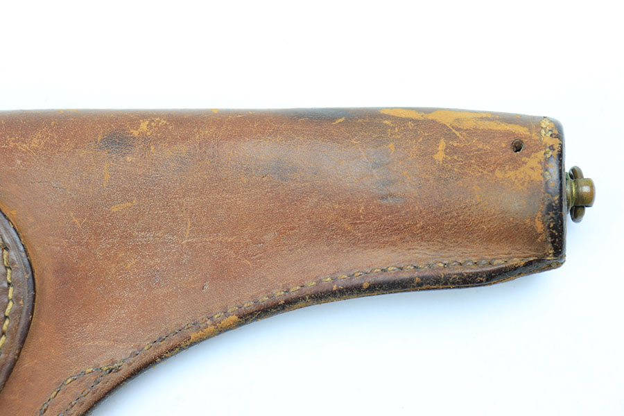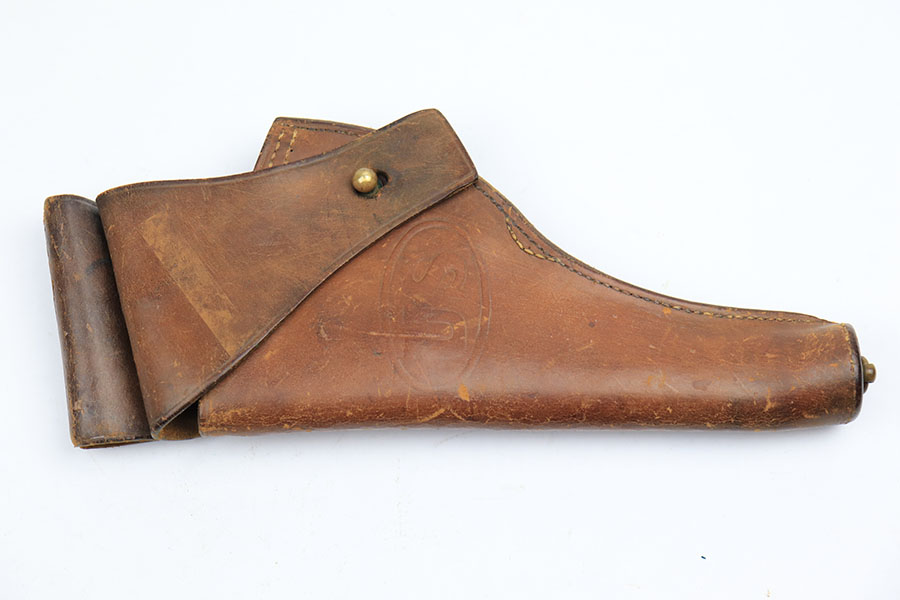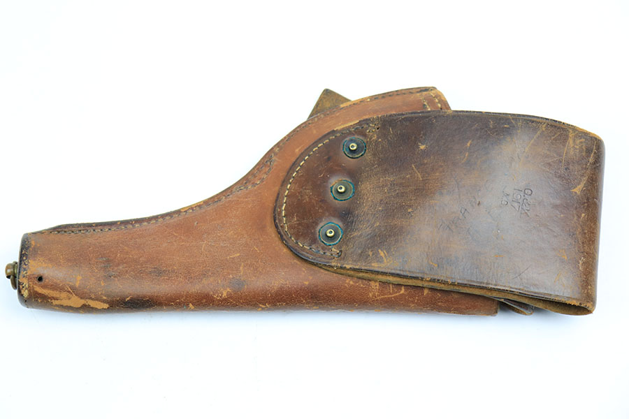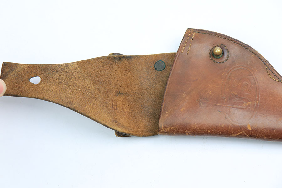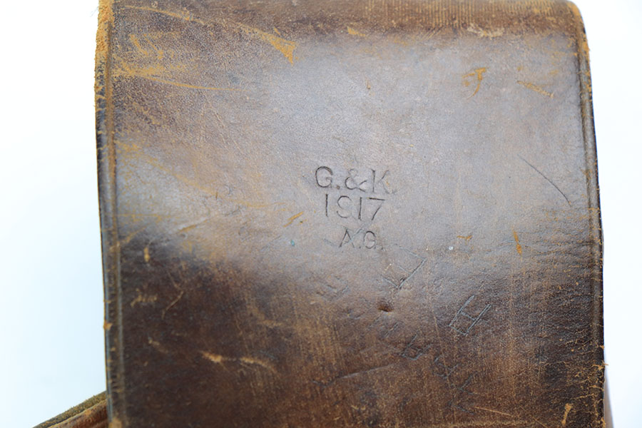 1/13/21 – This is an original WW1 production holster for a model 1917 revolver. The holster is maker stamped by G&K and dated 1917 with a “A.G.” inspection stamp. The leather has some light surface wear and signs of aging, but overall in great condition especially given its’ age. Stitching is all original and in tact.