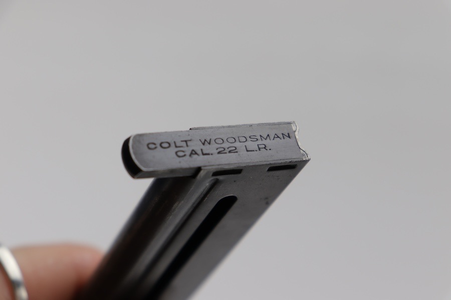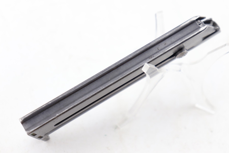 8/27/24 – For sale is a great and original condition Colt Woodsman magazine. This magazine retains most of its bluing finish with the bulk of finish wear on the spine and belly. Spring is functional with great retention. Makred on the footplate is “COLT WOODSMAN Cal.22 LR”.