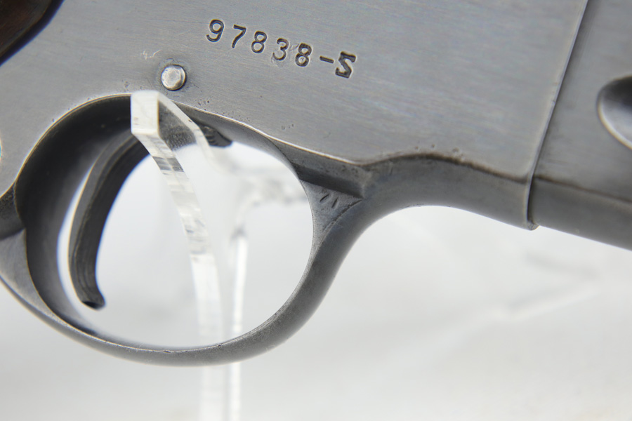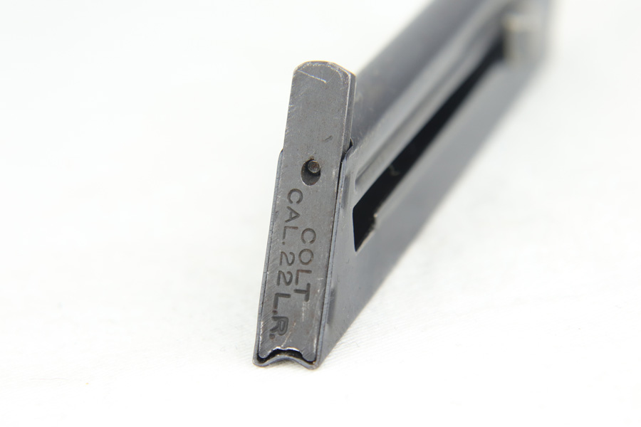 1/24/19 – This is an uncommon Colt Woodsman Match Target pistol from the second series with 4.5 inch barrel. The original blue rates at about 95% with no major areas of finish loss but minor thinning/patina to the finish. Proper, period correct magazine. Minty bore. Serial dates the pistol to 1951. Correct, original plastic grips for this year. This series has the generally preferred mag release push button, as opposed to bottom release lever.