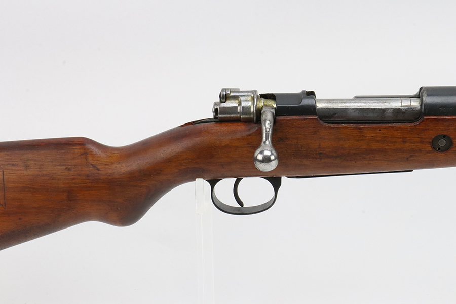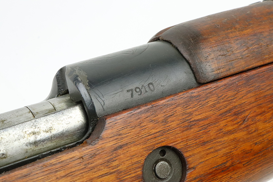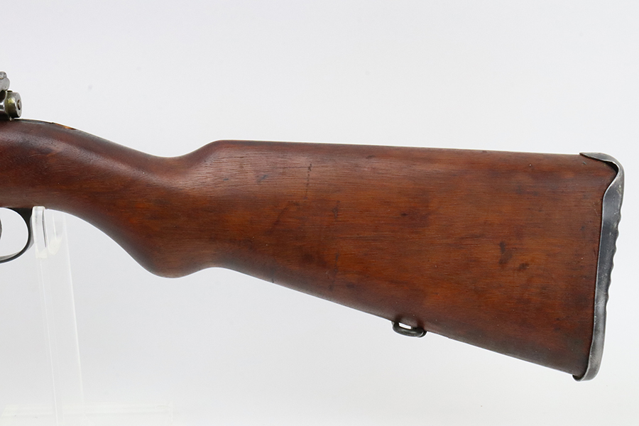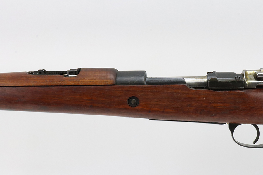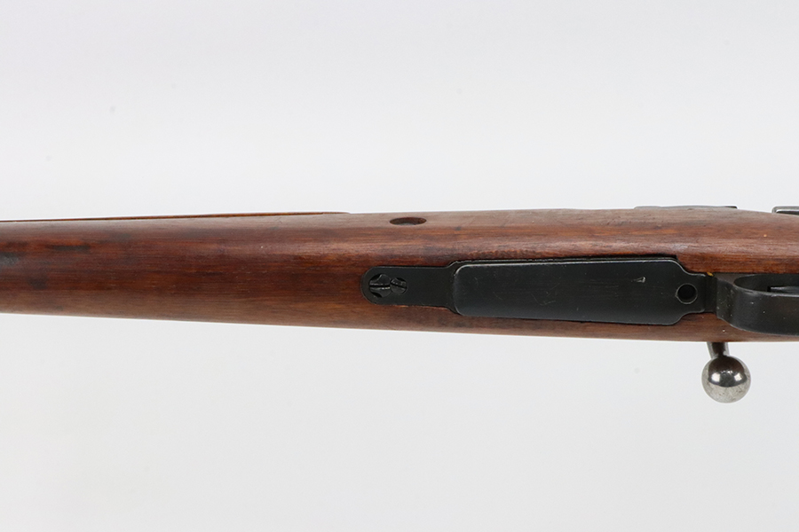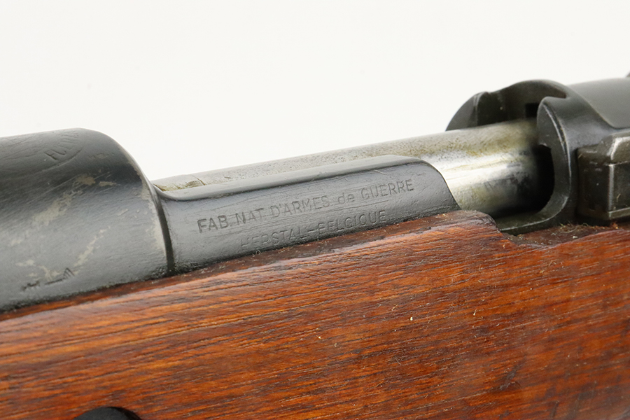 6/11/24 – This is a Model 1950 Carbine made by FN Herstal in the 1950’s for the Columbian Government. The bolt matches the receiver, and the chamber has the Columbian seal. The back of the receiver is marked “.30”, indicating it is chambered in .30-06. The metal parts have been re-blued. There is very little finish loss, but there is some scratching under the finish on the receiver and floor plate. Very nice wood. The butt stock does not fit perfectly. Mint bore. No visible import marks.