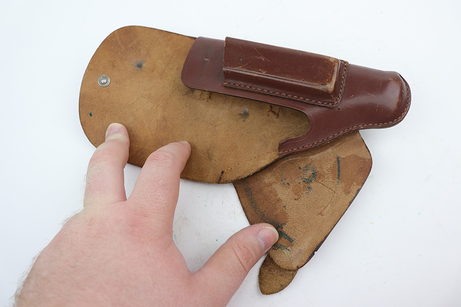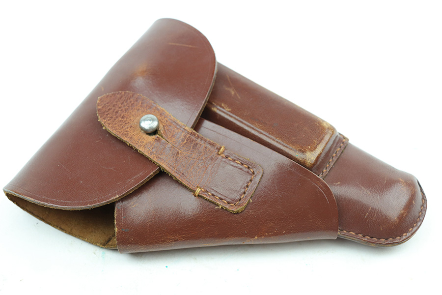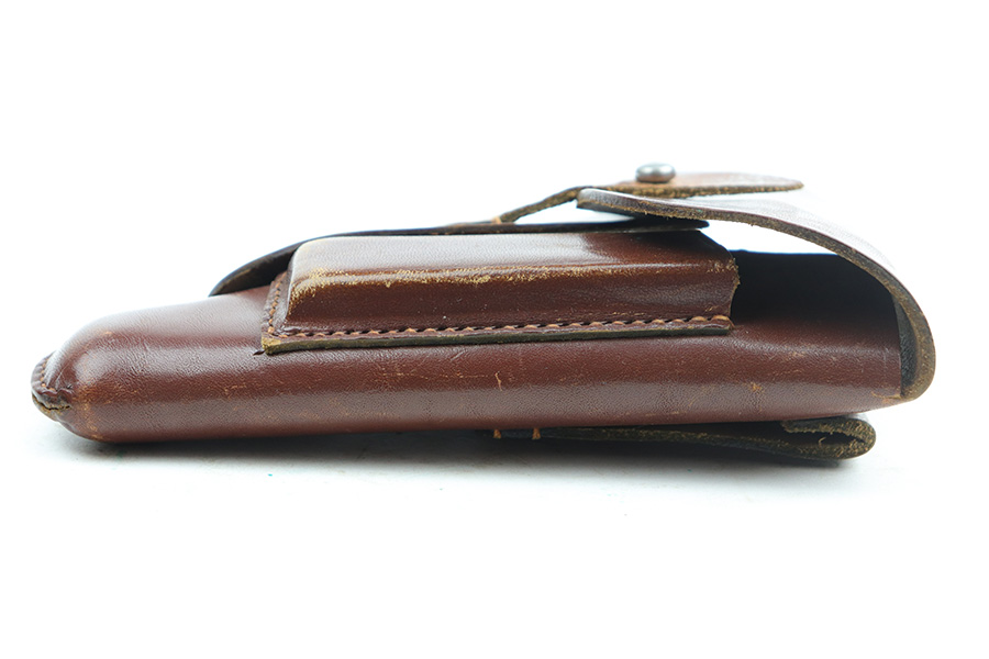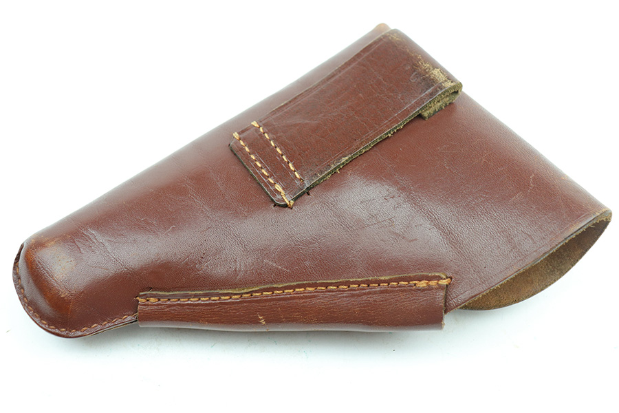 9/17/21 – This is a commercial, unmarked Walther PPK holster. Also appropriate for a 7.65mm axis pistol of similar size. The leather has some mild signs of use and aging but no significant wear. No stitching issues.