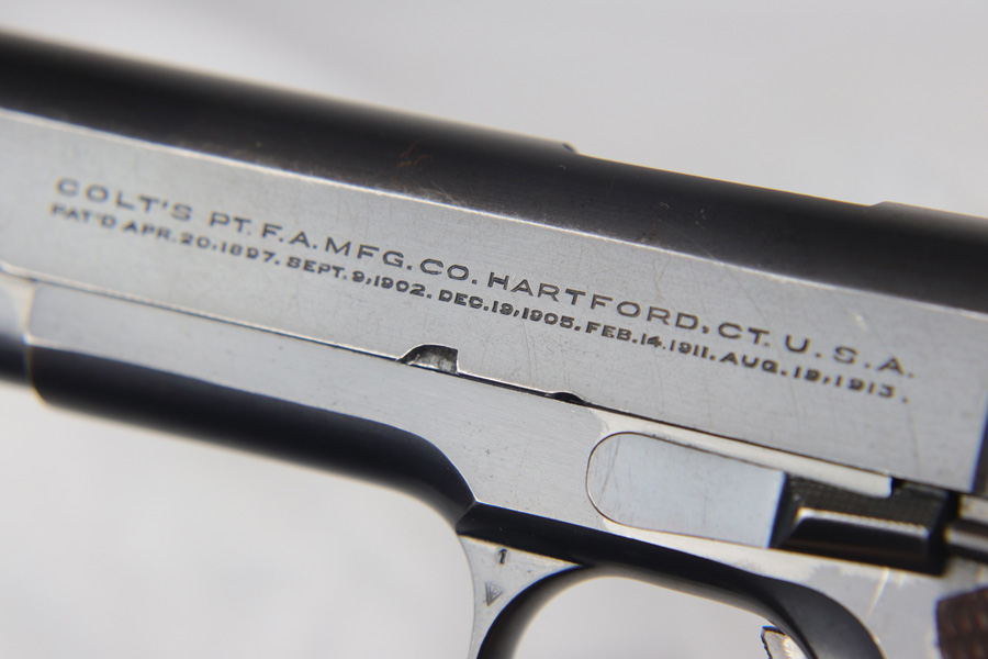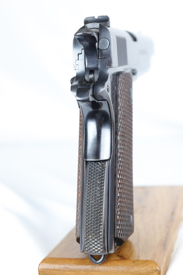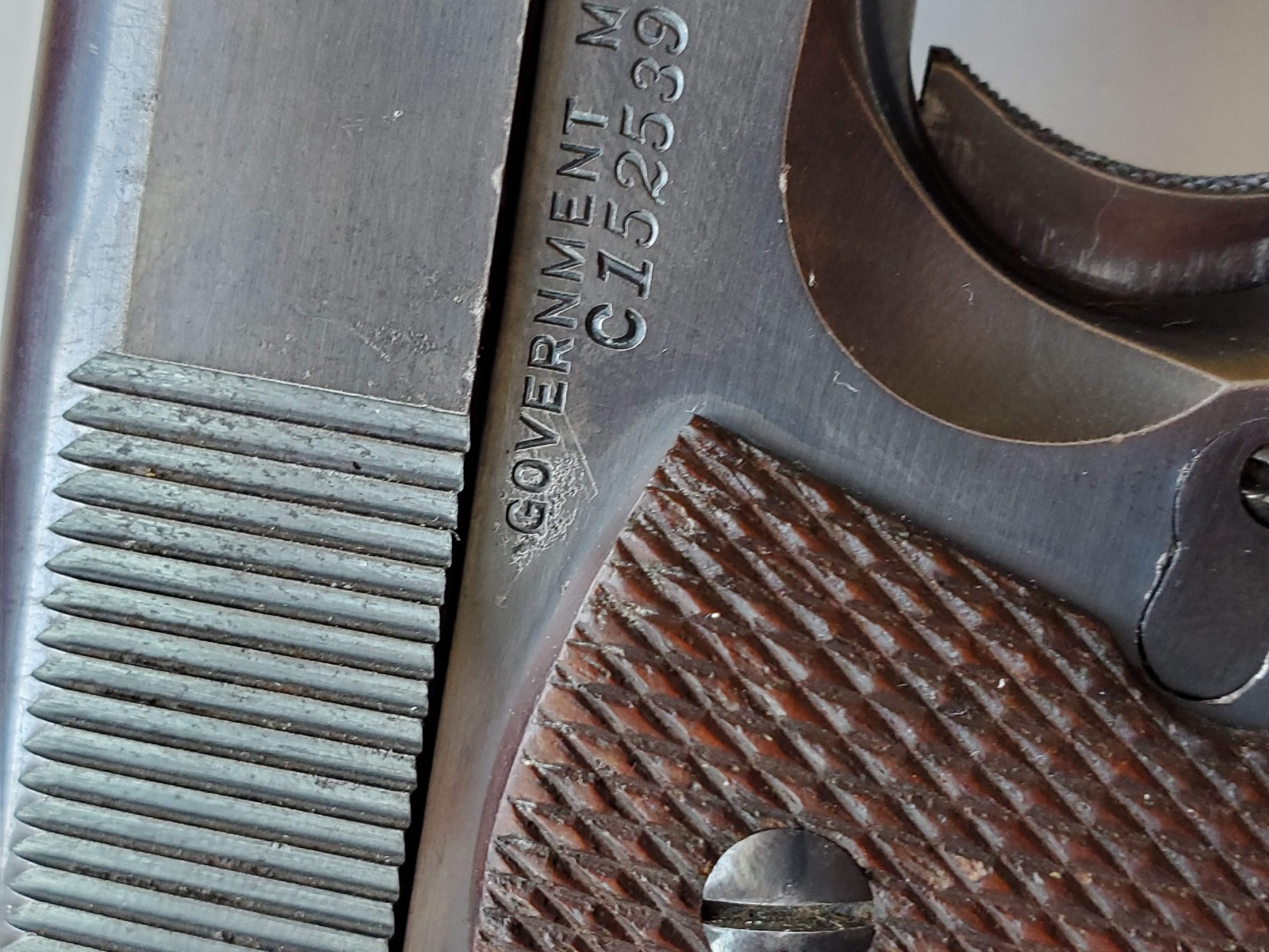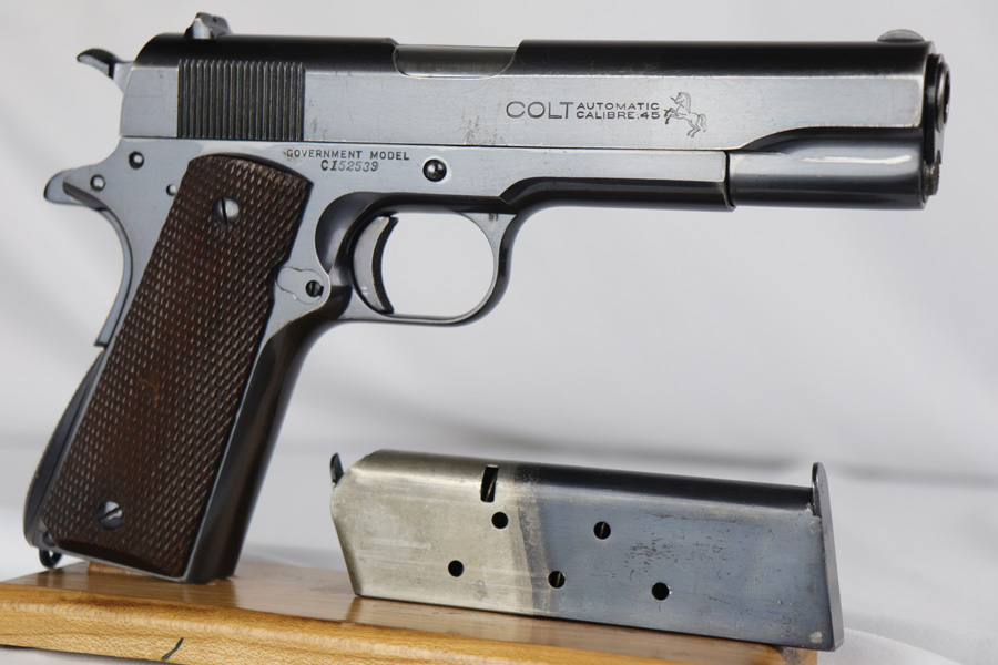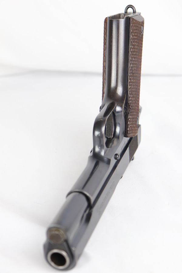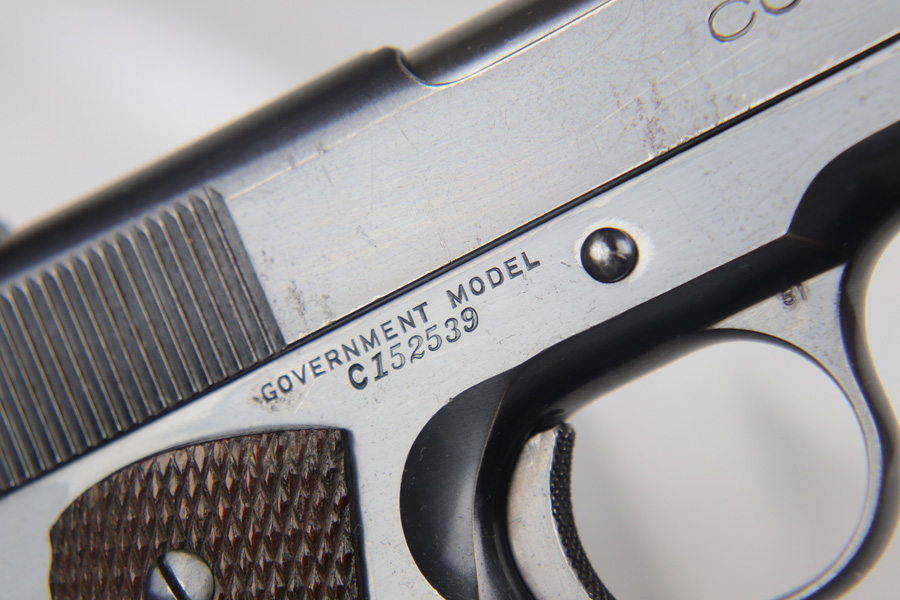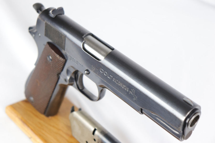 4/4/19 – This is an all correct and original Government Model Colt 1911 that was made in 1928 for the commercial market. The polished blue is nice and clean, rating at about 90% with high edge wear and various small surface scratches and scuffs, as well as some patina on the front strap. Excellent grips and two-tone magazine. Terrific bore. Barrel is marked ‘S’ under the lug.
