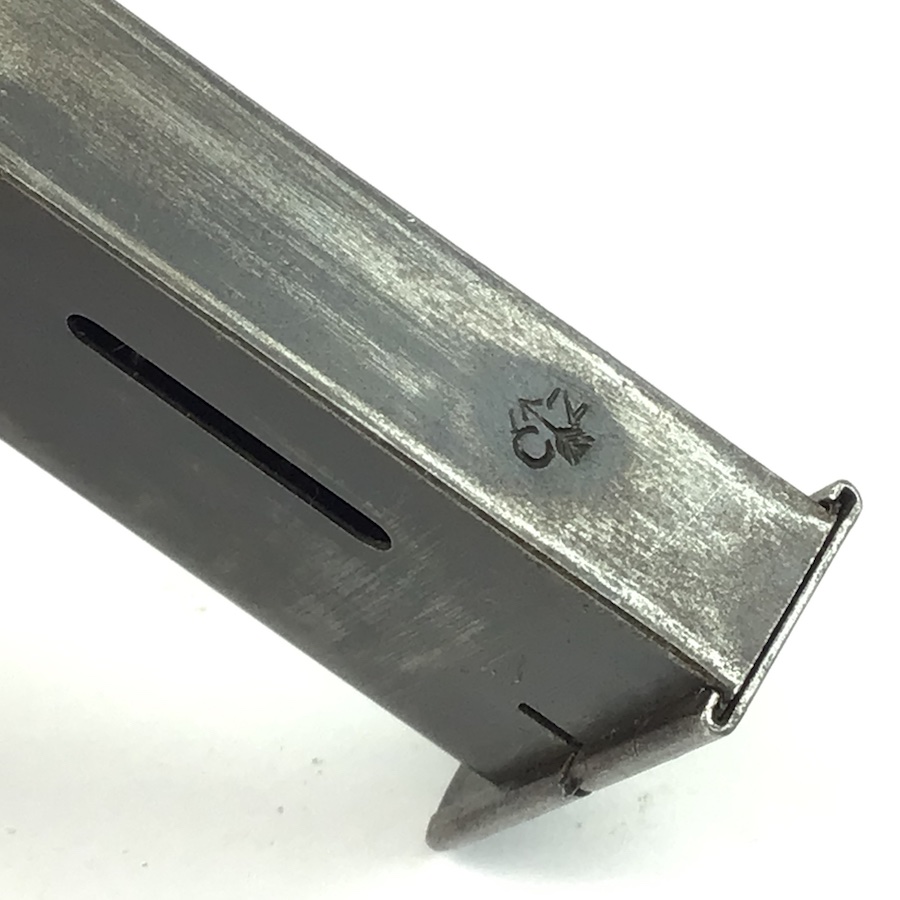8/10/21 – Original and great condition. Commercial CZ-27 magazine. Phosphate body and base. Minor use wear. Base and spine are stamped with “CZ” and Arrow logo. Strong, smooth spring. Early variation.
