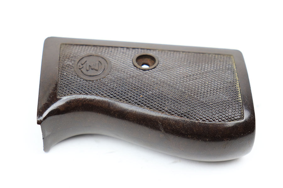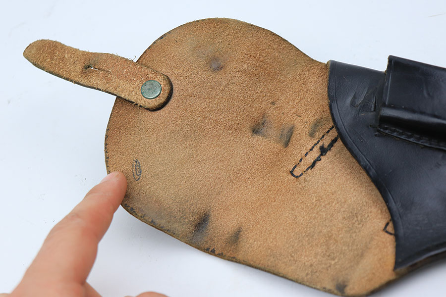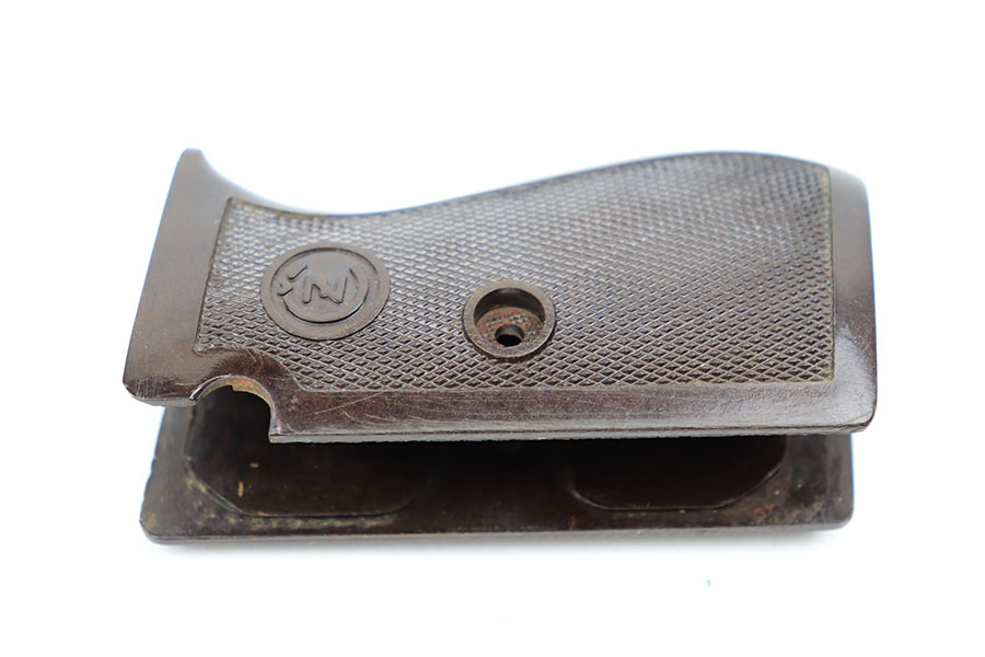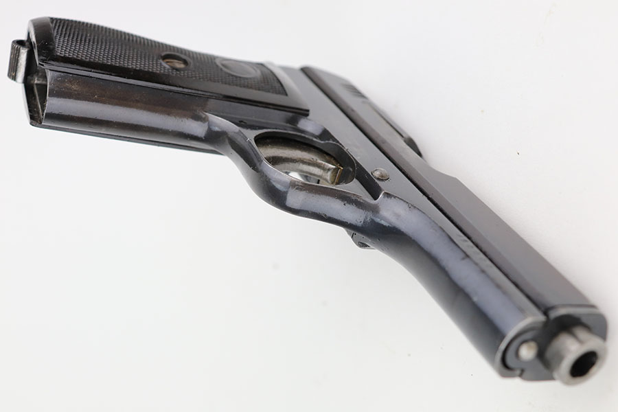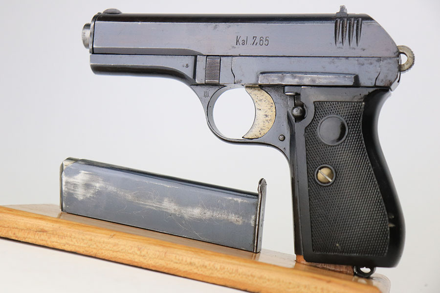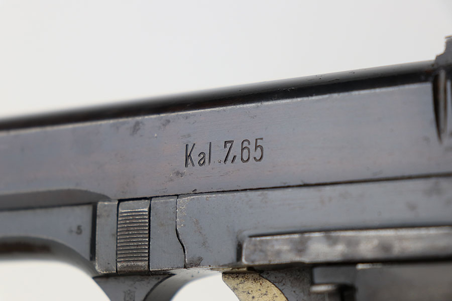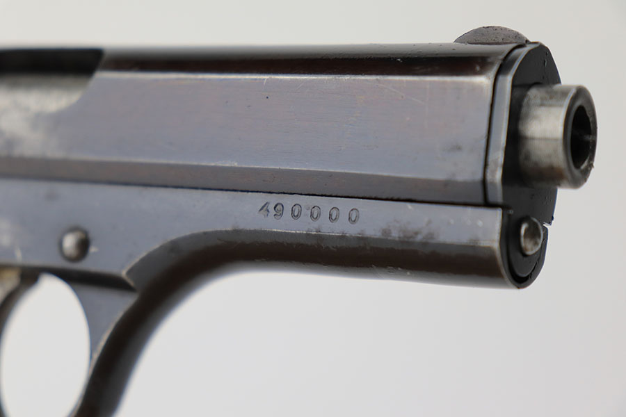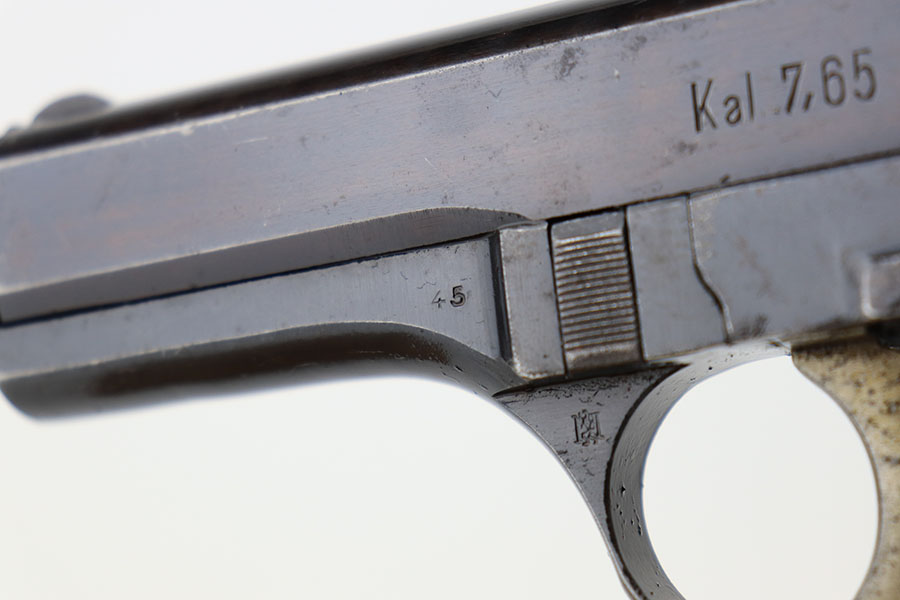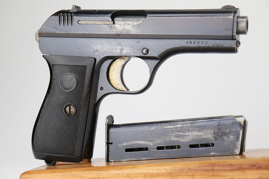 4/8/21 – This is a rare commercial CZ Model 27 rig, the first such example we’ve offered. It features just a ’45 manufacture date, and the Czech lion on the left side of the trigger guard. It also has a desirable serial, ending in 4 zeroes. This pistol was made just after World War II ended, and interestingly features a high-polish finish again rather than the phosphate you’d expect at the end of the war. There’s some freckling in various areas, and some finish loss on the right side of the pistol. The rig includes a total of two original magazines, and one reproduction magazine. One of the originals is police numbered on the base. Holster is also postwar. Comes in a custom storage case, and includes a spare repro grip.