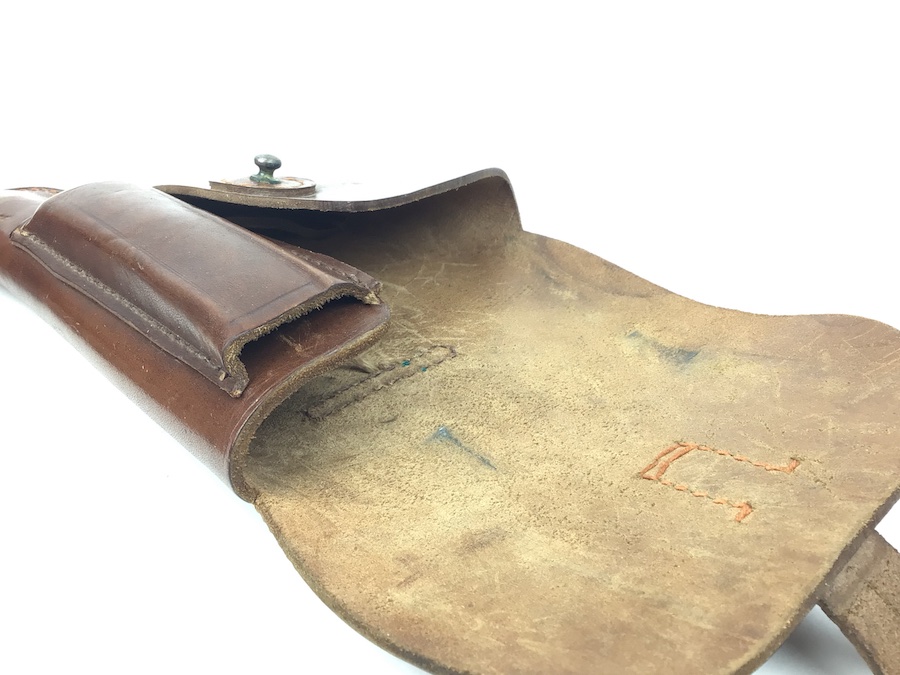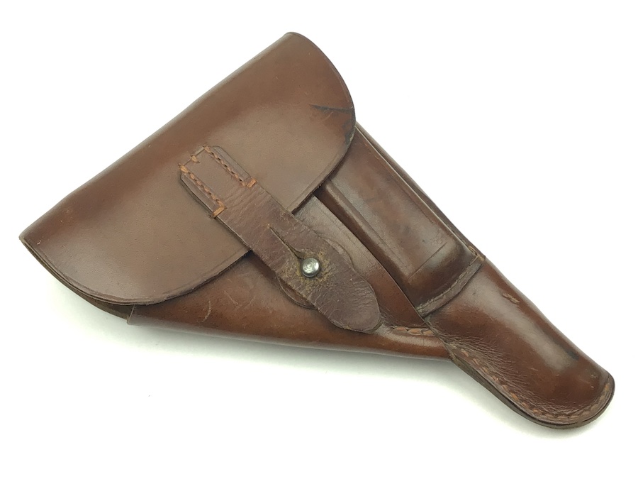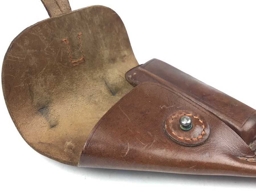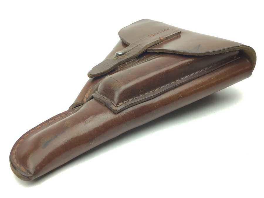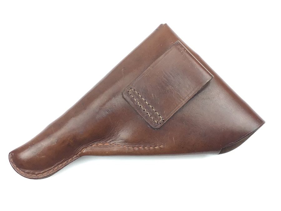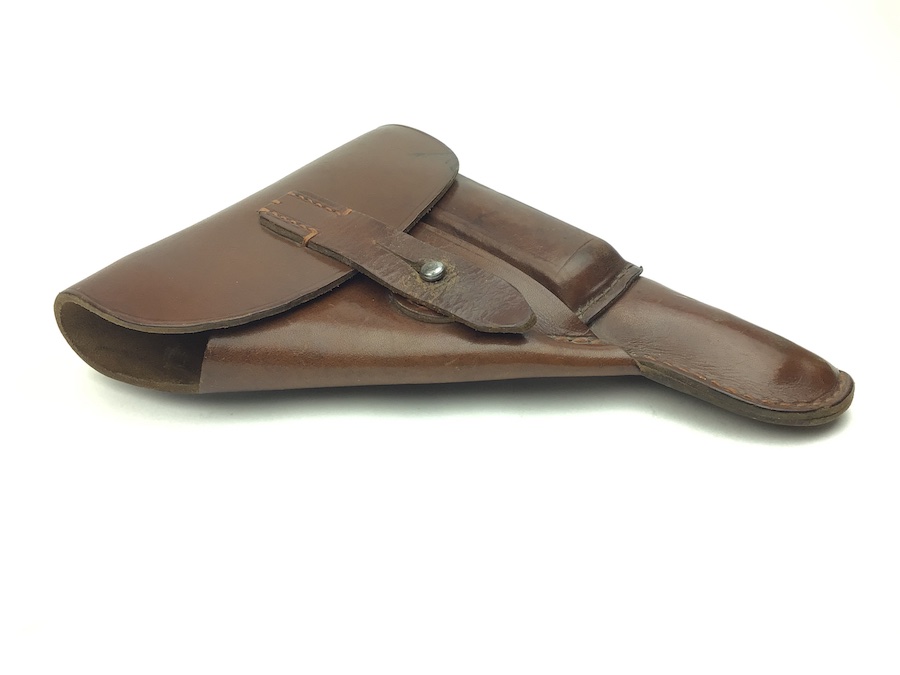 10/28/21 – Original and excellent condition. Brown leather holster for the FN M1922 handgun. Unmarked and undated, however, made in the style of a WWII era holster. Tight original stitching. Clean interior.
