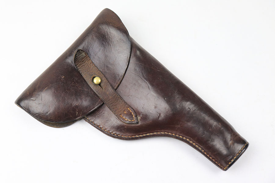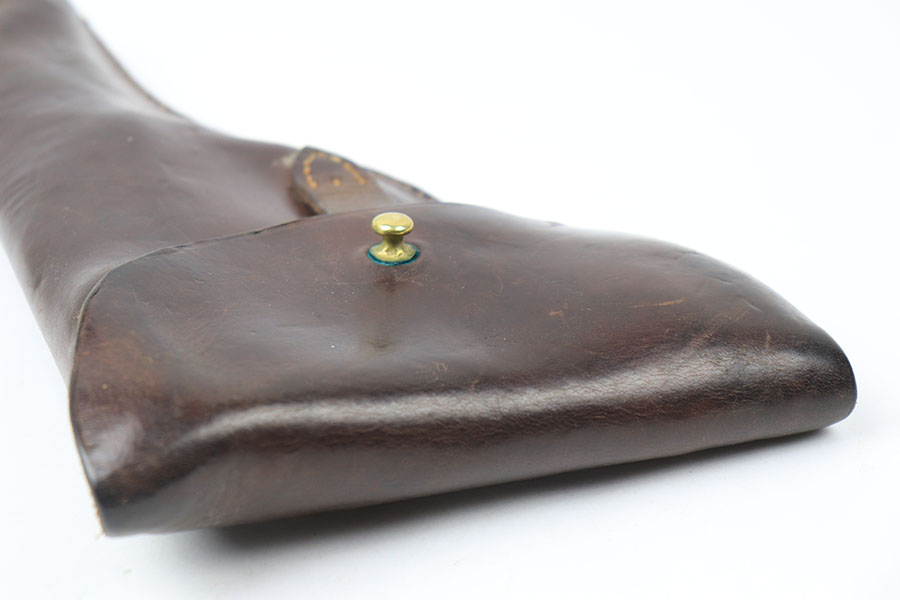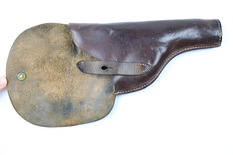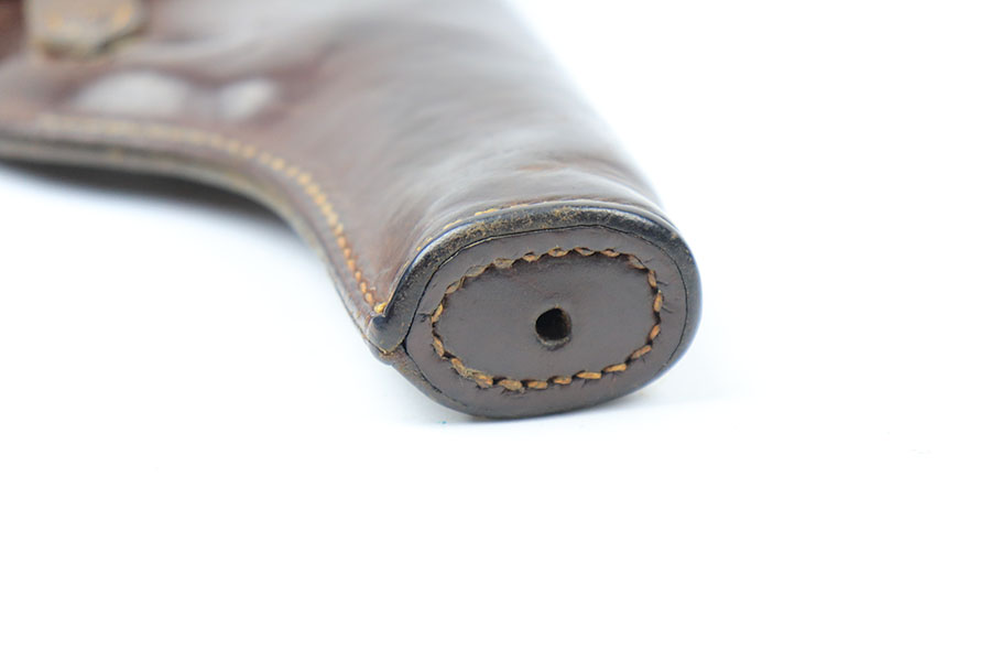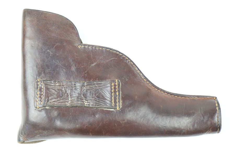 8/3/21 – This is a Commercial style Luger holster for an early 1900s to Weimar era commercial P.08. The holster has no markings or stamps. Nice leather and stitching is completely in tact with an early brass closure knob. The leather shows light signs of use and normal pliability.