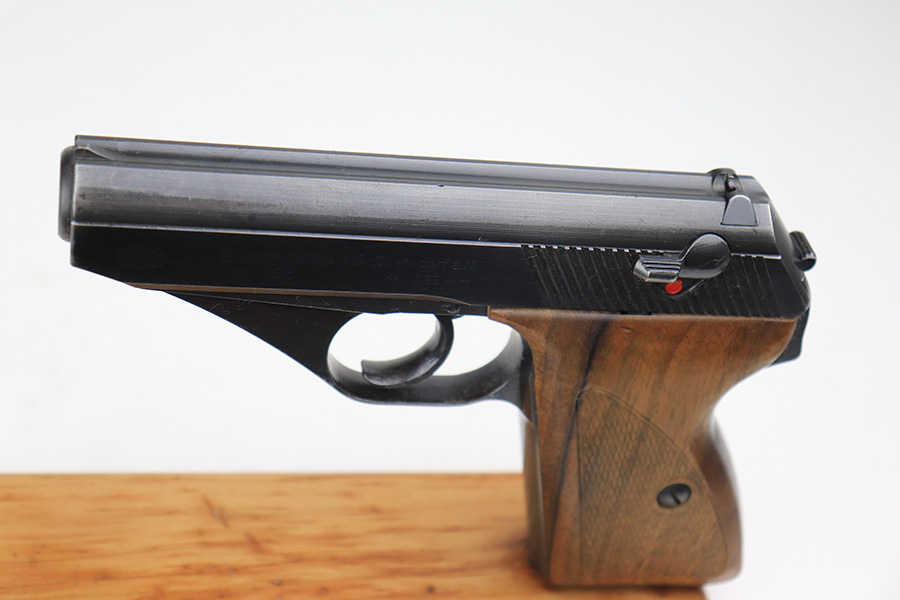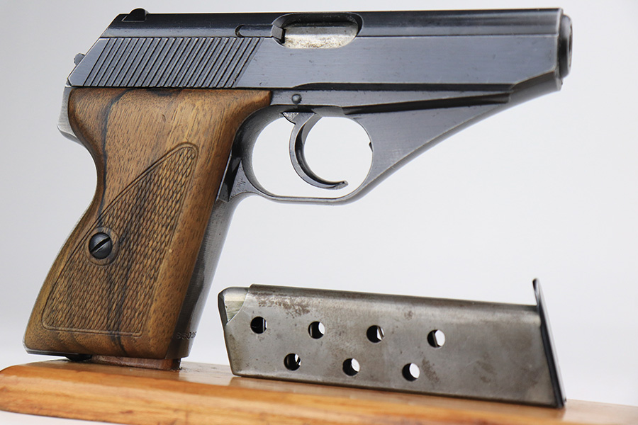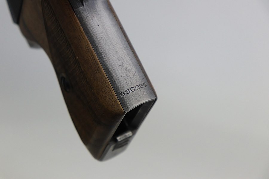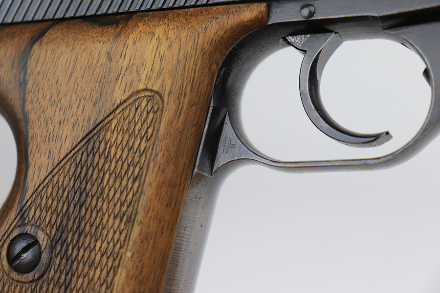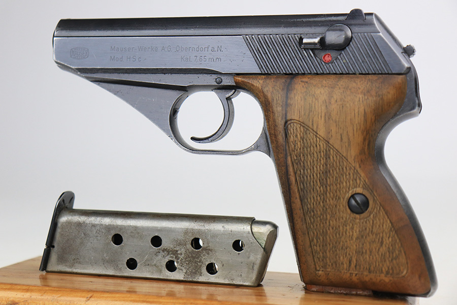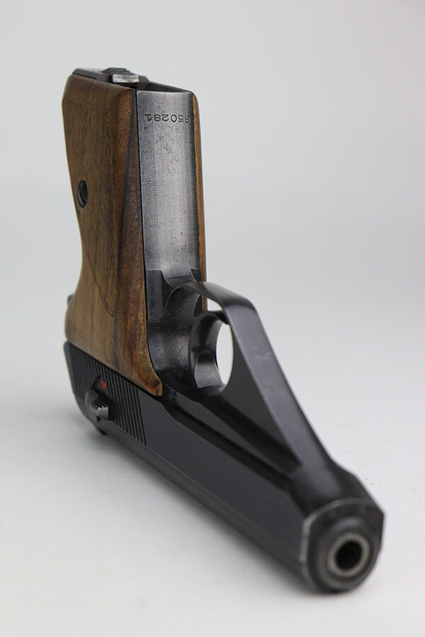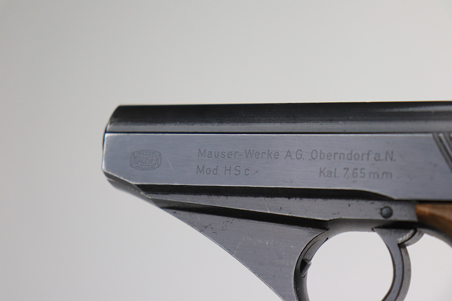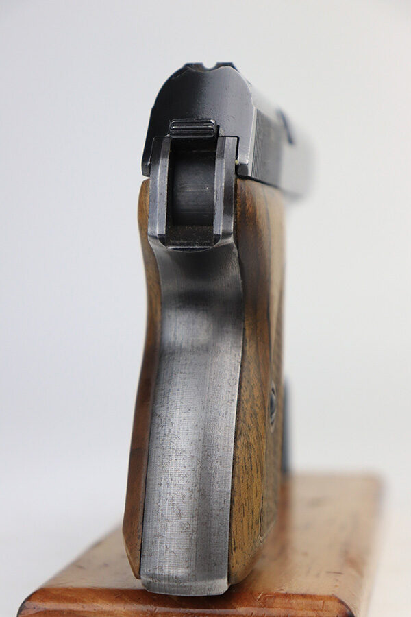 5/31/24 – This is a very nice example of a Mauser HSC sold in the commercial market in 1943. The gun is all matching, has the proper “Eagle N” commercial proofs, and lacks any Nazi military acceptance proof. It has retained roughly 80-85% of its original finish. Most of the finish loss is on the grip straps, where there is significant thinning. There is also very minor wear around the muzzle, very tiny freckling on both sides of the slide, and a few very light scratches here and there. Comes with minty wood grips and one period-correct magazine. The bore is mint.