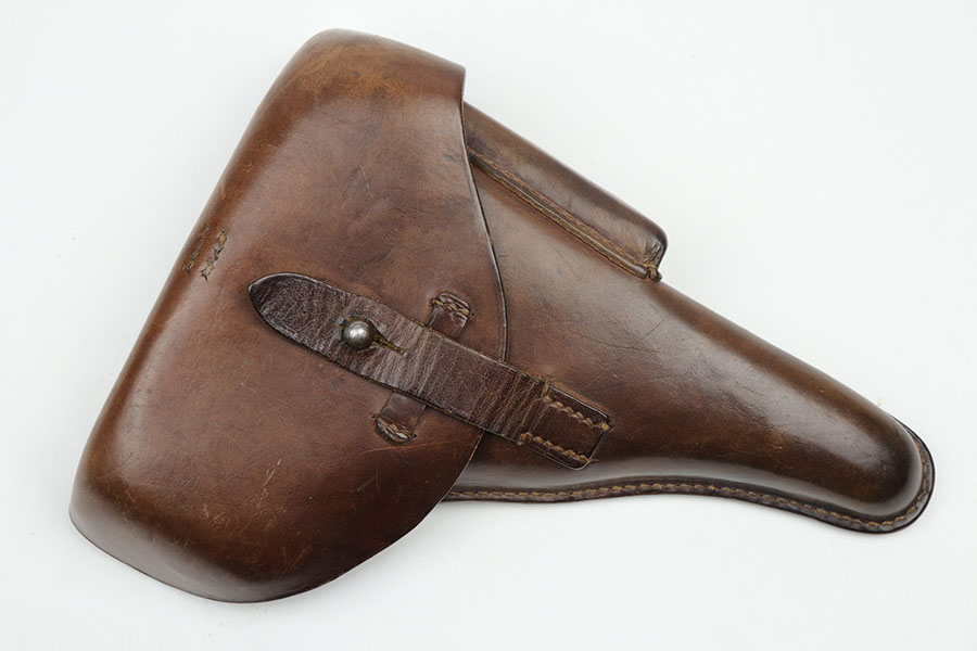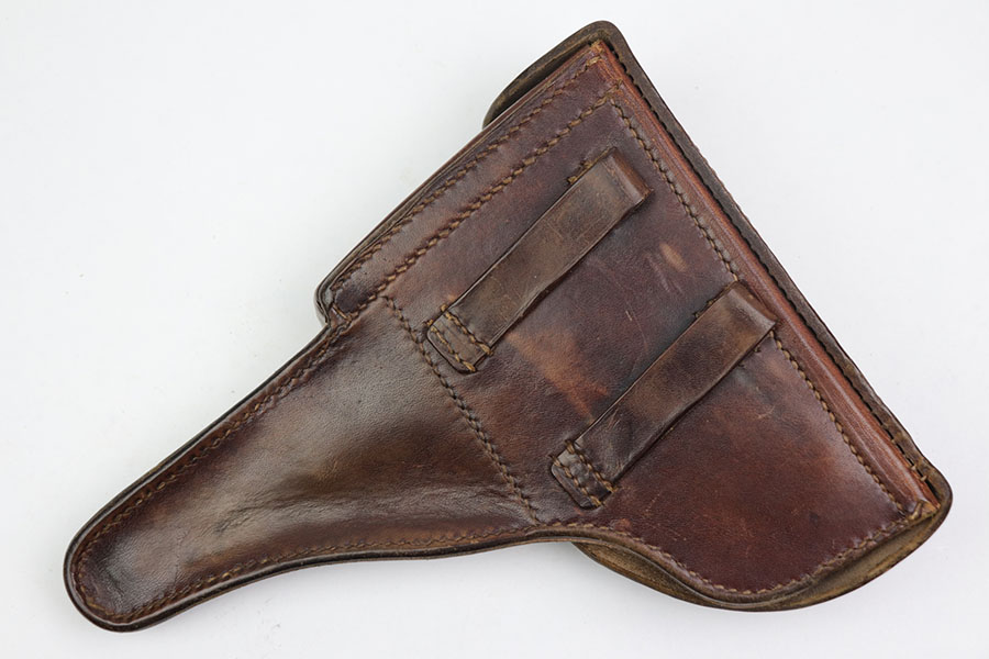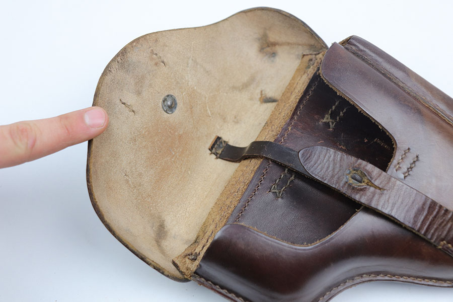 1/7/21 – This is an early/pre WW2 production Commercial P.38 holster. Fairly scarce and in great overall condition. No markings or stamps and nice brown leather. All original stitching in tact. Clean interior leather. Normal pliability and no major issues on the leather.