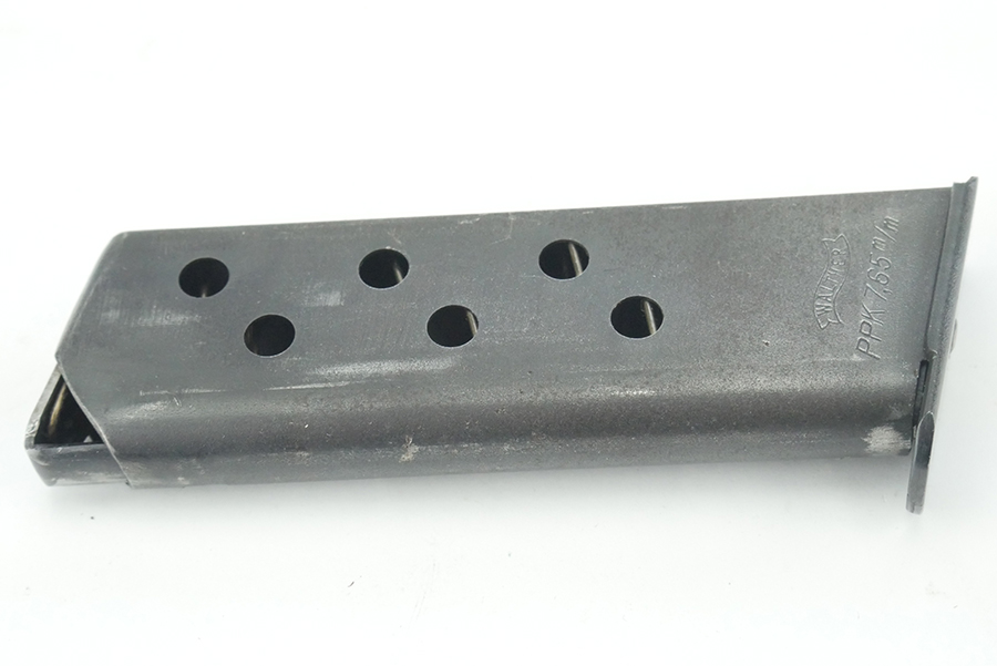 8/30/24 – This is a commercial Walther PPK magazine. The magazine is in overall excellent condition. There is no signs of oxidation anywhere on the magazine. The magazine retains almost all of its original finish. There is very minor finish loss in the areas that would be associated with the use of the magazine. The Walther logo remains strong and is easily legible. The spring in this magazine remains strong and is functional.
