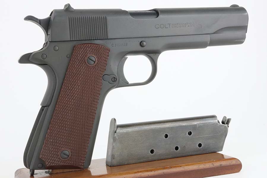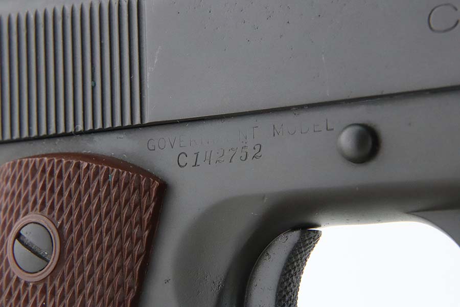 6/3/2024 – For sale is a nice commercial 1911A1 that was made at the Colt factory in 1925. The handgun overall is in great condition but has been refinished. The finish is even throughout without any active rusting but there are signs of old pitting behind the ejection port on the slide that was there before the handgun was refinished. The bore is excellent and bright. The magazine is WW2 era and has been reblued. The magazine does not properly engage the bolt hold open.