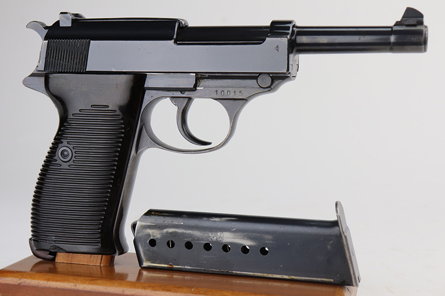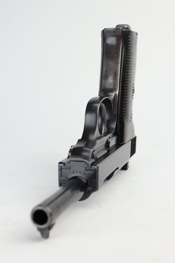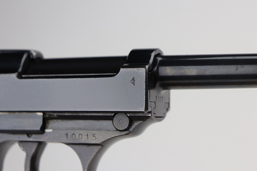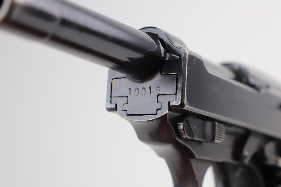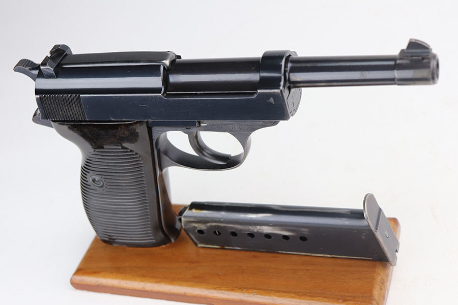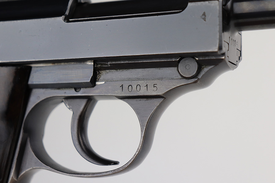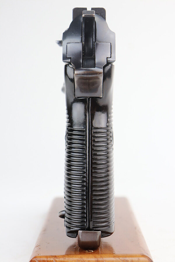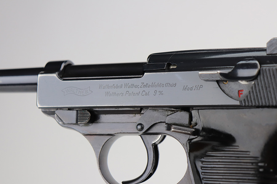 6/11/21 – This is a very nice example of a Walther Mod HP sold in the commercial market around 1940. It is all matching and has the proper “Eagle N” commercial proofs. It has retained about 85% of its high polish finish. Most of the wear is on the front strap, but there are areas of minor wear on the high edges of the slide and around the muzzle. A few very light scratches on the slide here and there. Comes with excellent grips and a proper un-marked commercial magazine. Mint bore. Functional de-cocker.
