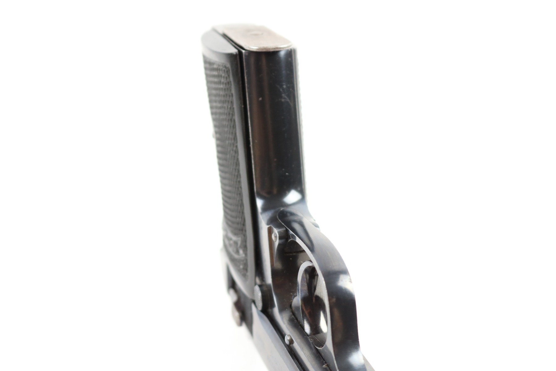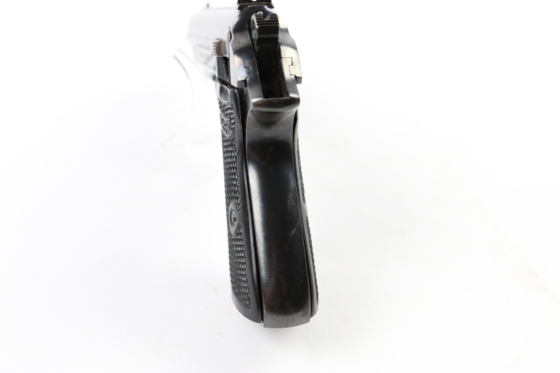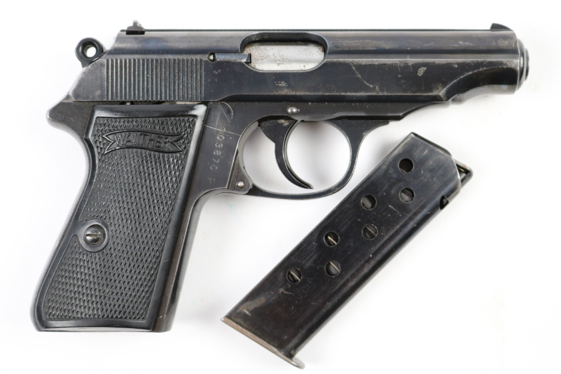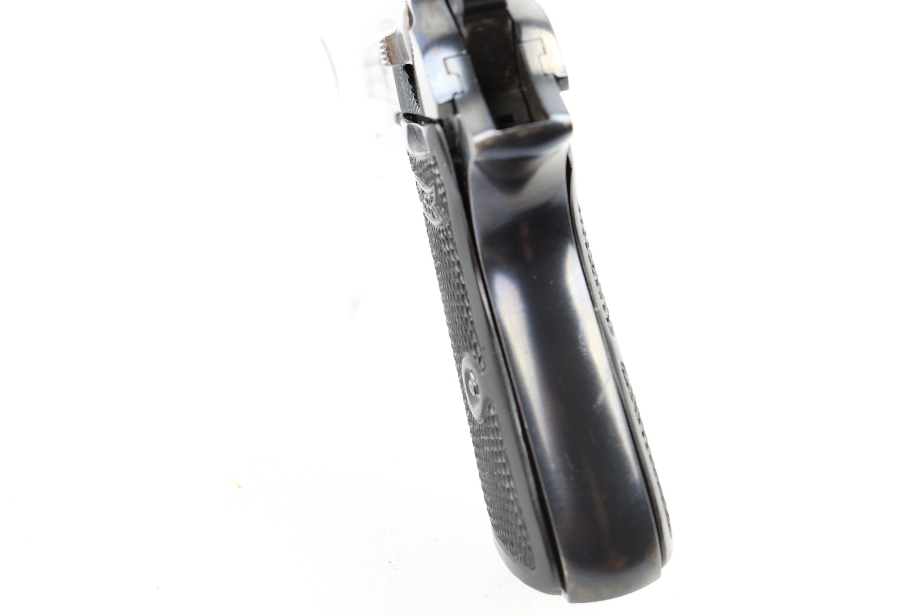 5/17/18 – This is an original WW2 production commerical Walther PP pistol. The gun has all original and correct parts, including the magazine. The pistol has edge wear and slide wear throughout – especially on the right side of the slide where there’s more significant discoloration. The straps are fairly clean with minimal wear. The grips have no cracks or chips. Bore rates at 9 out of 10 with no major issues and clean rifling. Guaranteed all original and authentic.
