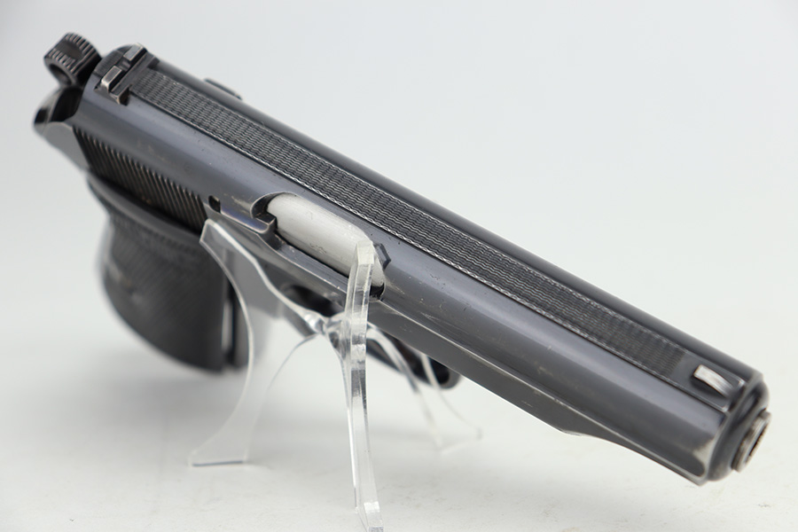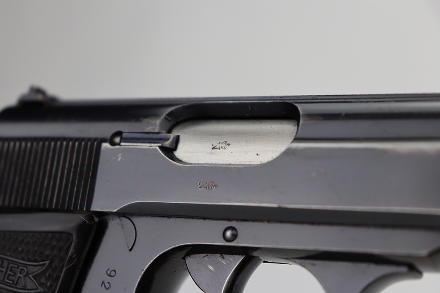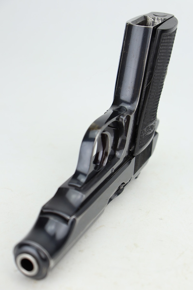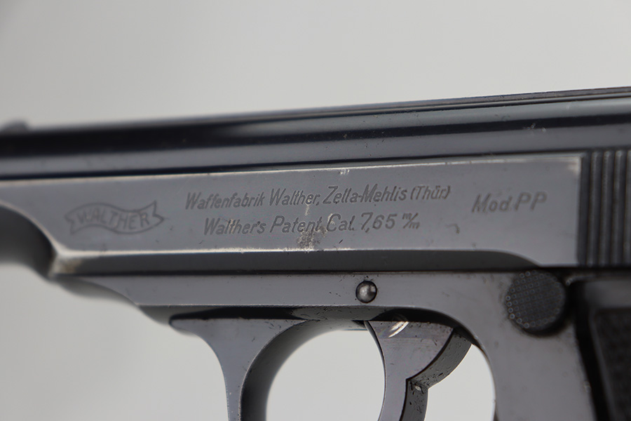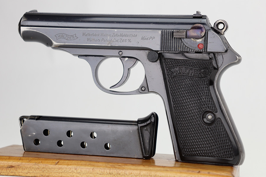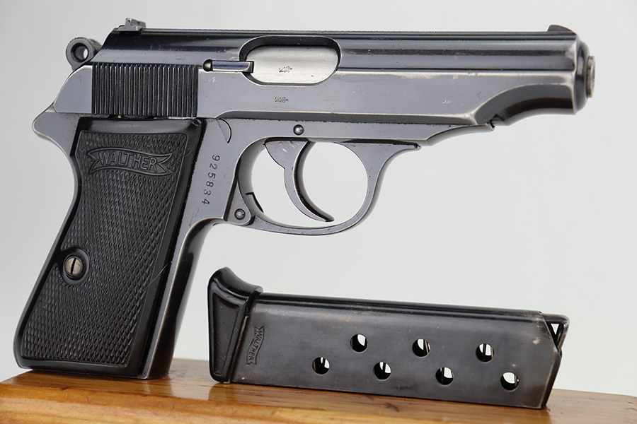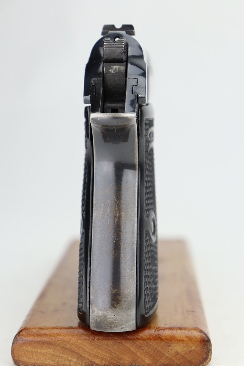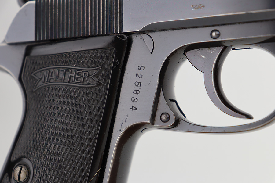 12/27/23 – This is a nice Walther PP sold in the commercial market in 1936. All matching and “Crown N” proofed. The original high polish finish rates about 90%. The majority of the finish loss is on the back strap, but there is also wear around the muzzle and on the high edges of the slide. Fitted with period-correct black bakelite grips and comes with a finger extension magazine. Excellent, shiny bore.