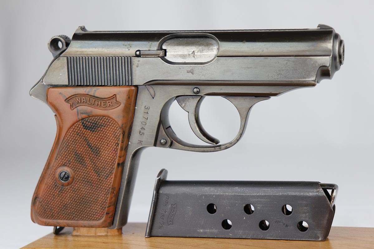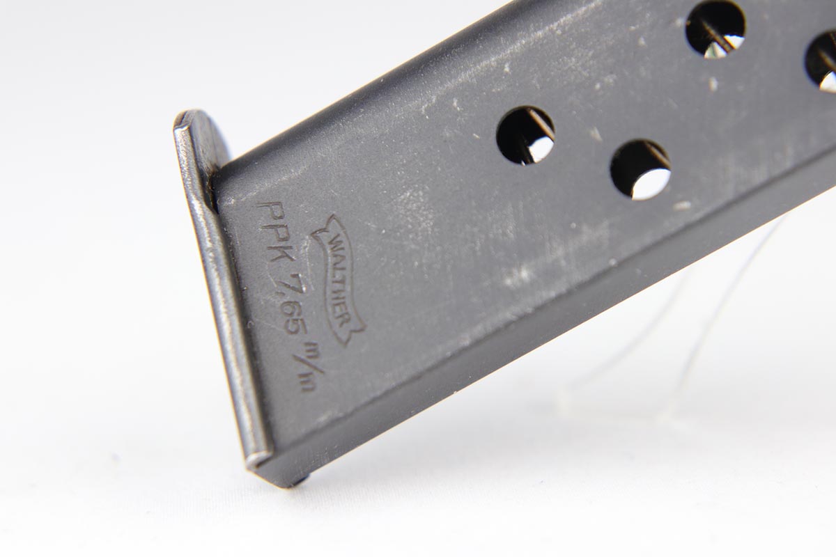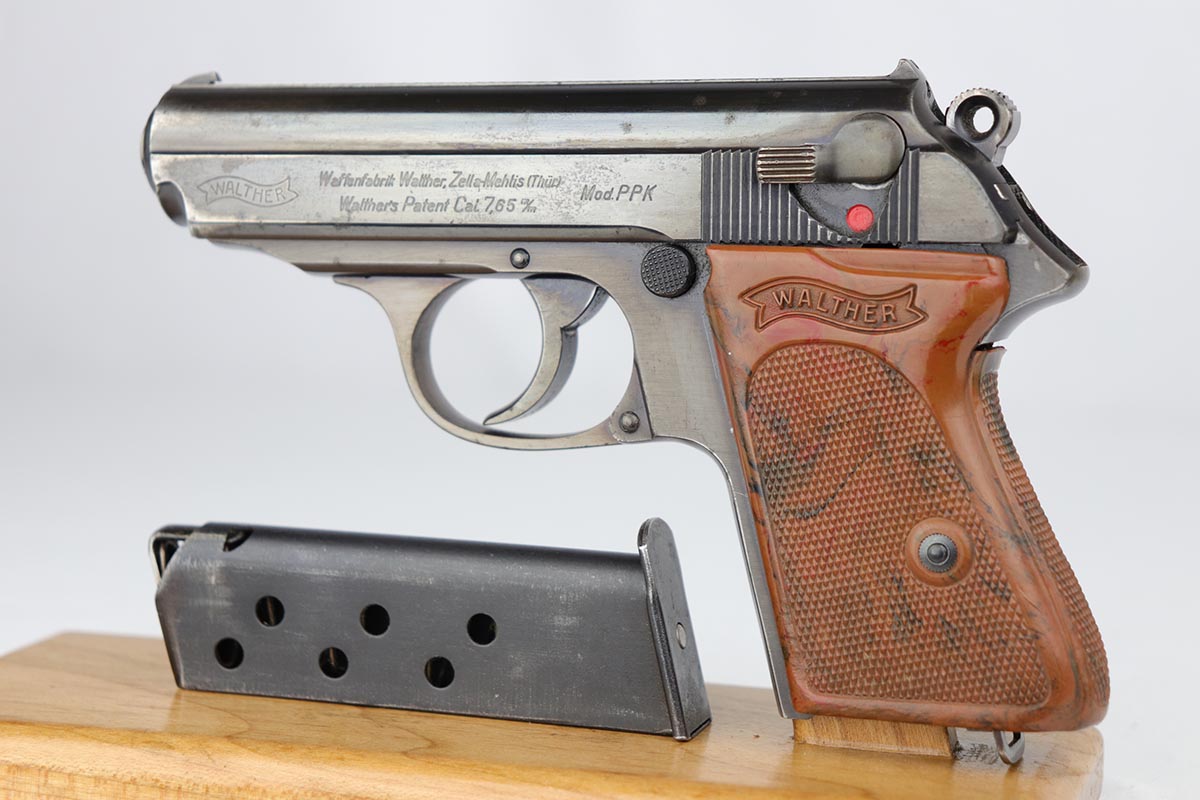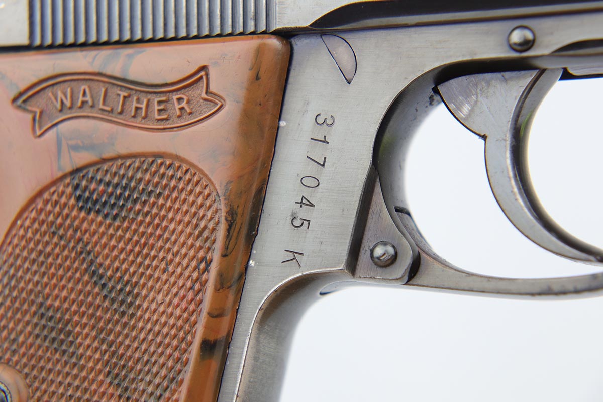 11/21/18 – This is a wartime commercial Walther PPK from the Nazi era. All original and correct with 80-85% original high-polish blue. The slide is very nice with basic muzzle wear, but the front strap is missing most of the finish. Excellent grip with no cracks or chips. Wartime magazine. Shiny, strong bore that would make this one a good shooting candidate.