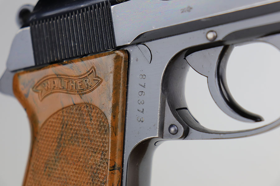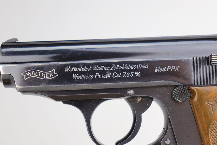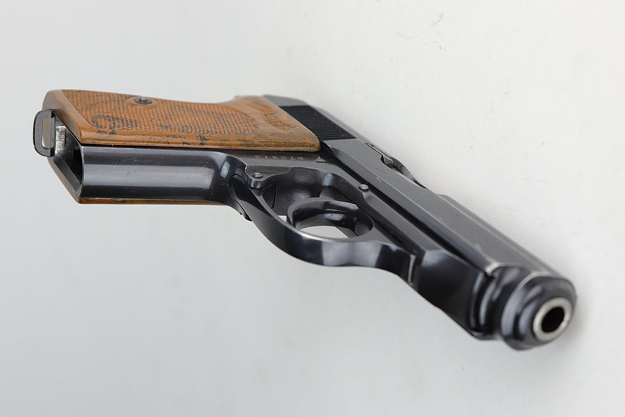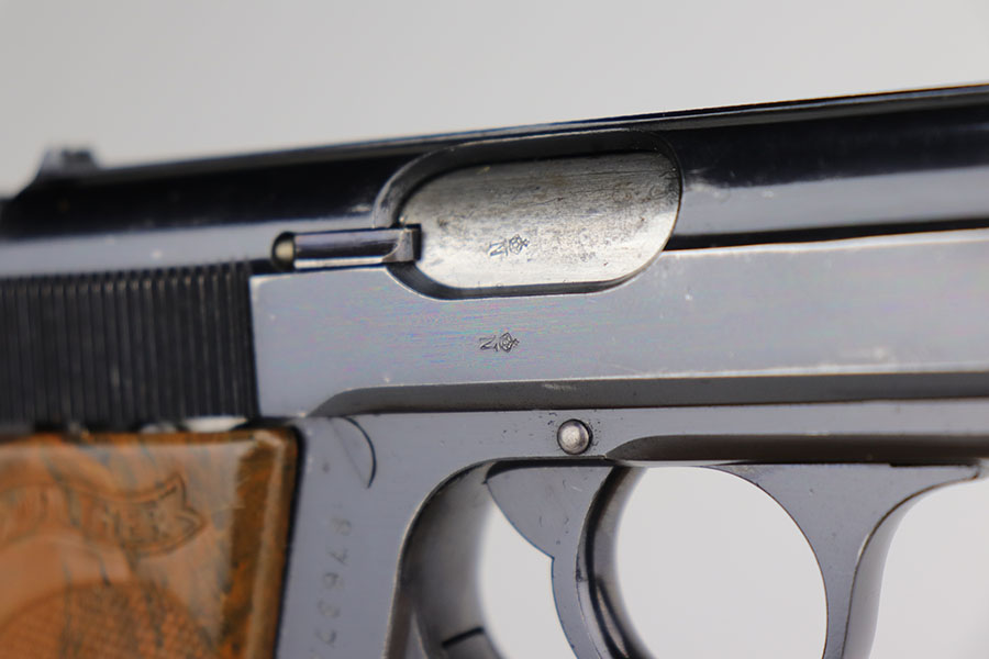 12/24/20 – This is an excellent commercial Walther PPK from 1935. Standard muzzle wear on each side of the slide, and a little more finish loss along the edges of the right side. Beautiful frame. Crown/N proofs on slide and frame. Nice finger extension magazine but does have a crack in the base. Excellent grip with no chips or cracks. Strong, shiny bore.