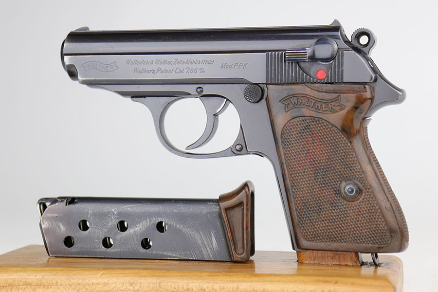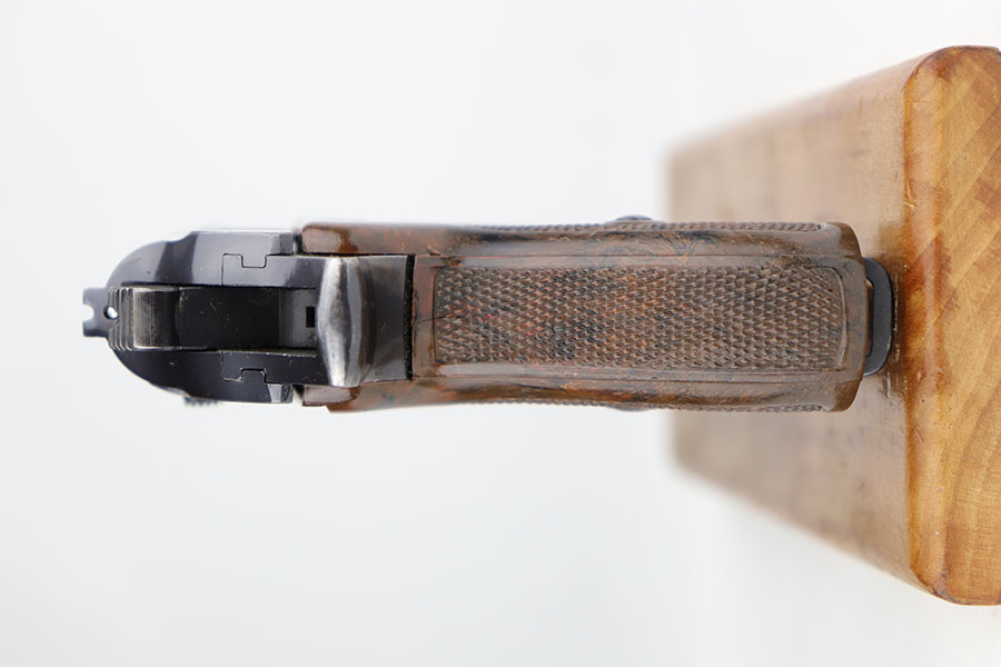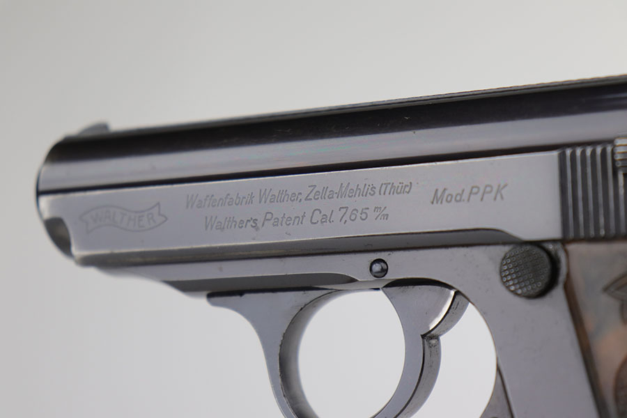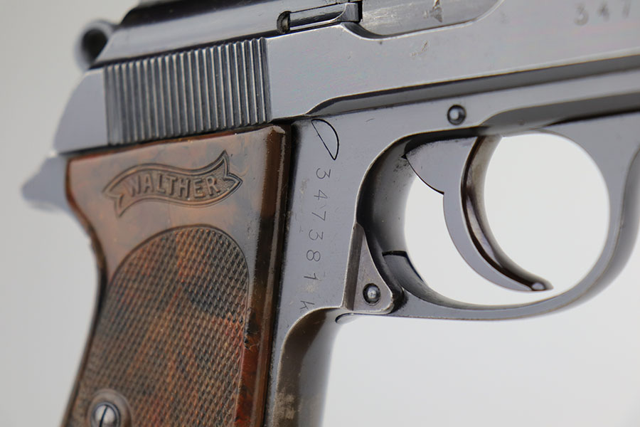 12/9/20 – This is an excellent example of a Walther PPK sold in the commercial market in 1941. The gun is all matching and has the proper “Eagle N” proofs. The gun has retained about 92-93% of its original bluing. The most obvious sign of wear is an area of wear on the front strap. There is also very minor wear around the muzzle. It comes with an excellent brown grip – hairline cracks down the sides and on the spine. It also comes with an excellent period-correct brown finger extension magazine. The bore is excellent – shiny with strong rifling.