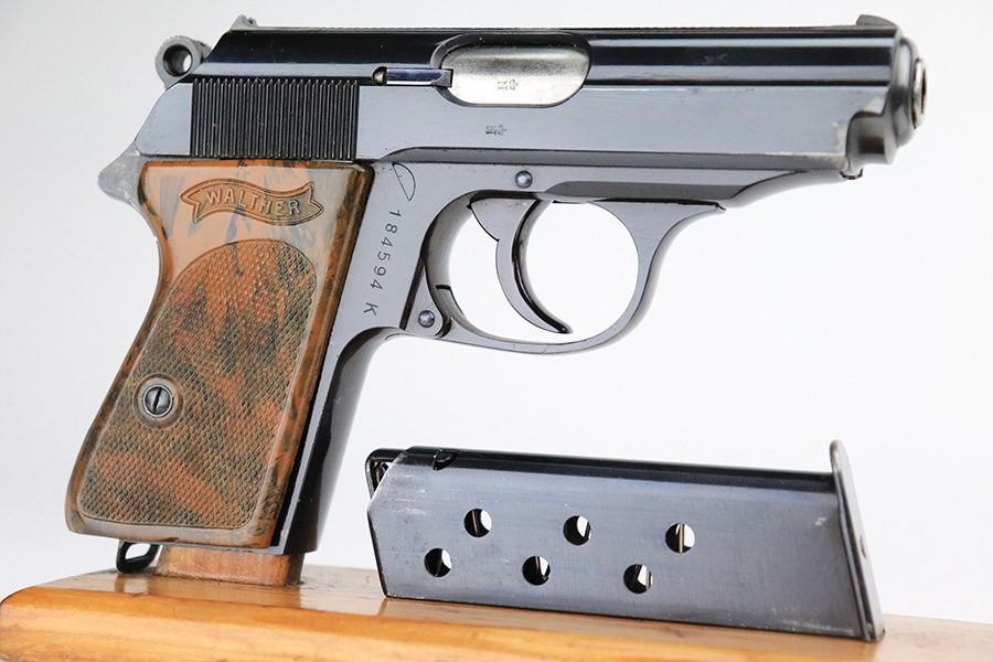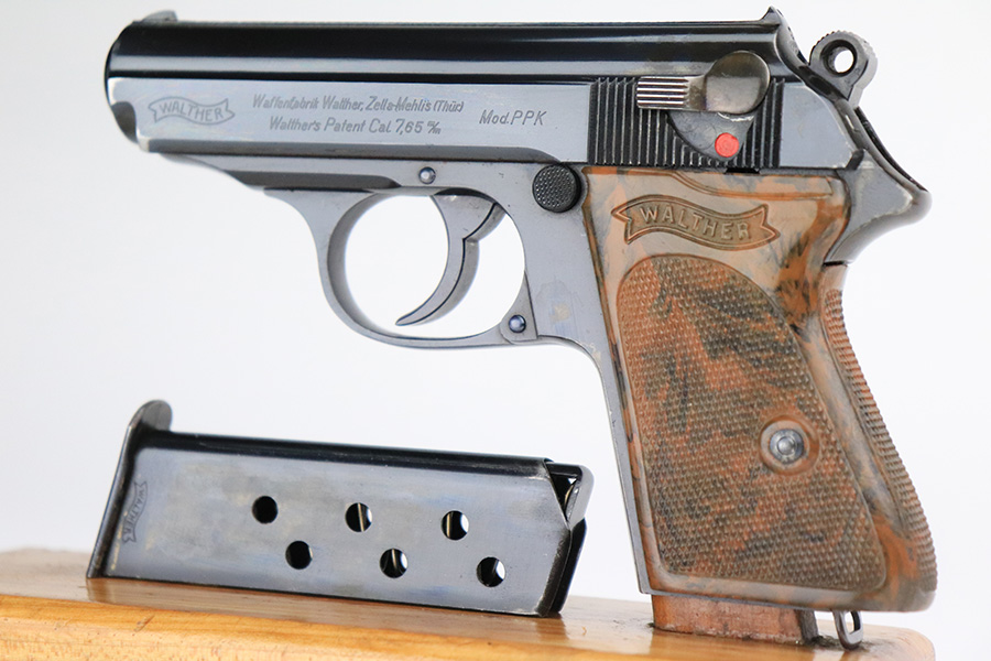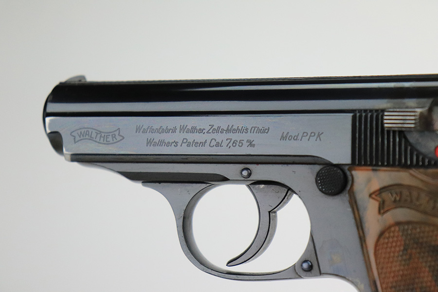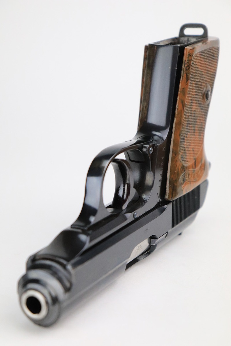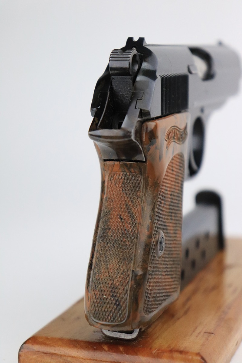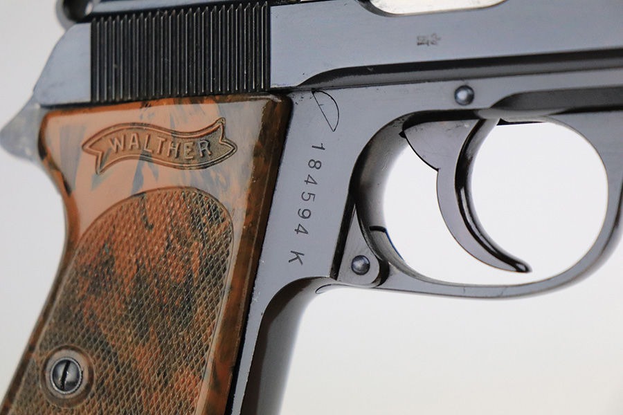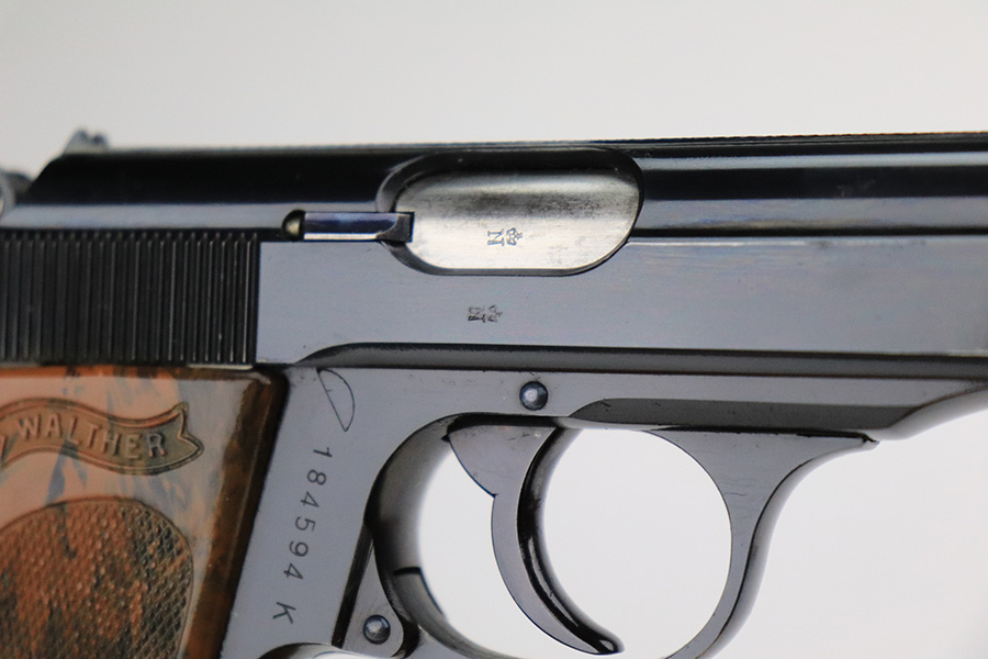 8/1/22 – This is very nice example of a Walther PPK sold in the commercial market in 1938. It is all matching and has the proper “Crown N” commercial proofs. It has retained about 94% of its original finish loss. There are some areas of splotchy discoloration on the front strap and on the tang. The profile views are excellent. Comes with a very nice brown Walther grip and a period-correct Walther banner-only magazine. Mint bore.