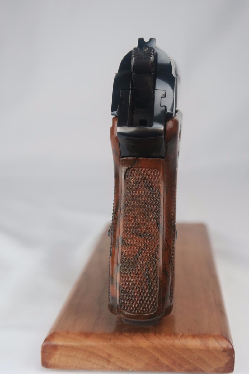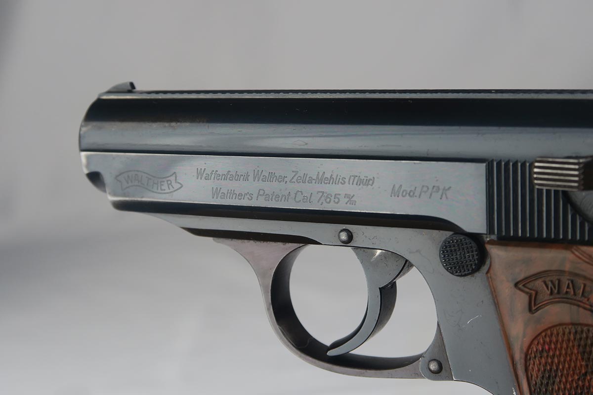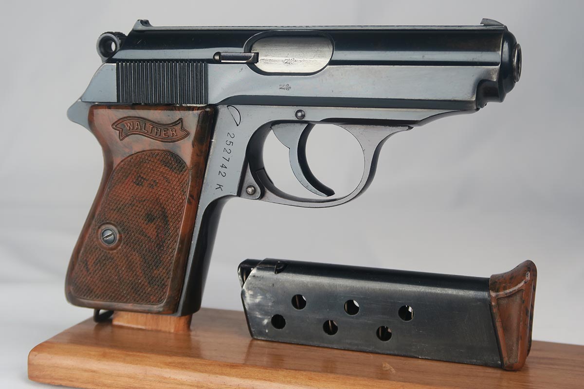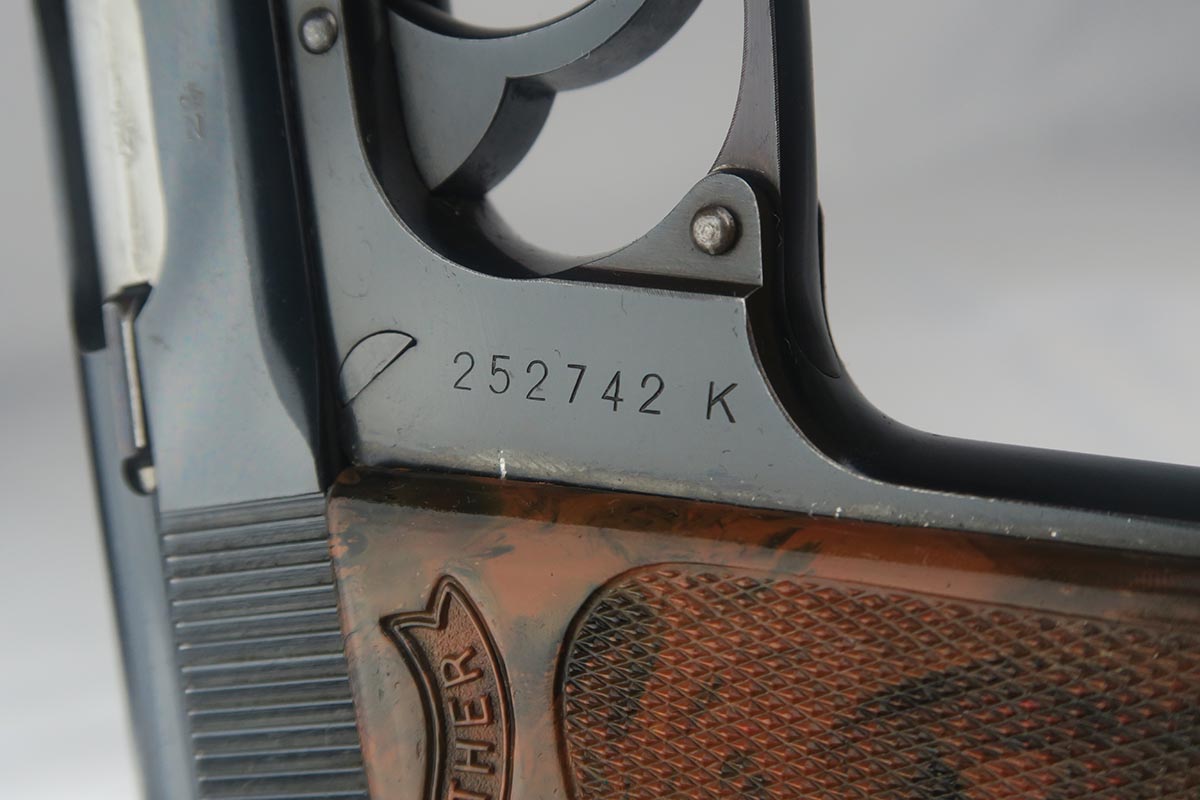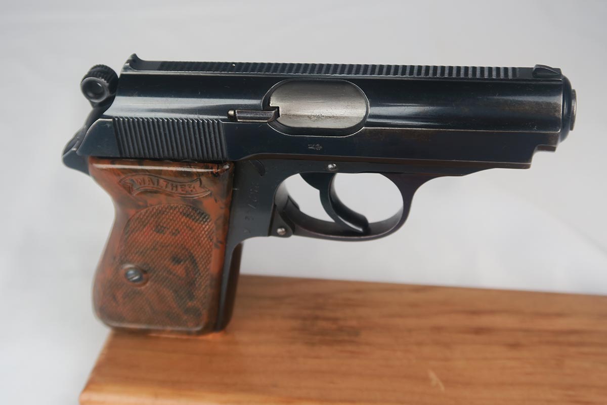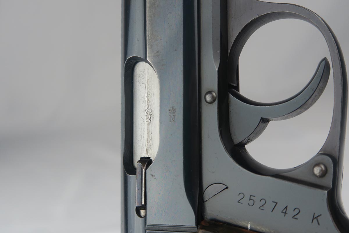 8/24/17 – This is a nice commercial Walther PPk from the Nazi era. It was manufactured in 1939 and has crown/N proofs. All parts are matching and correct. The original finish is about 997% with some minor holster wear and a little browning on the slide. Correct Walther grip and finger extension Walther magazine, both in excellent condition. Excellent bore.