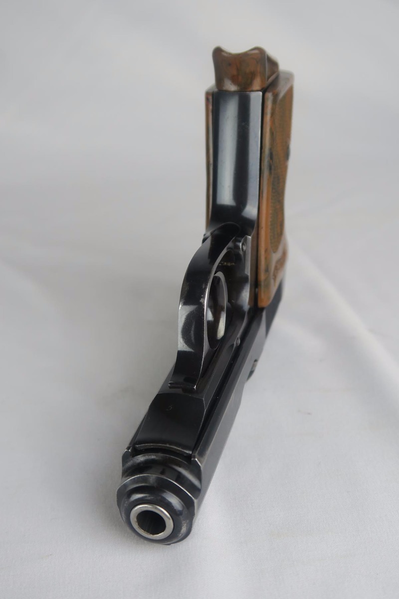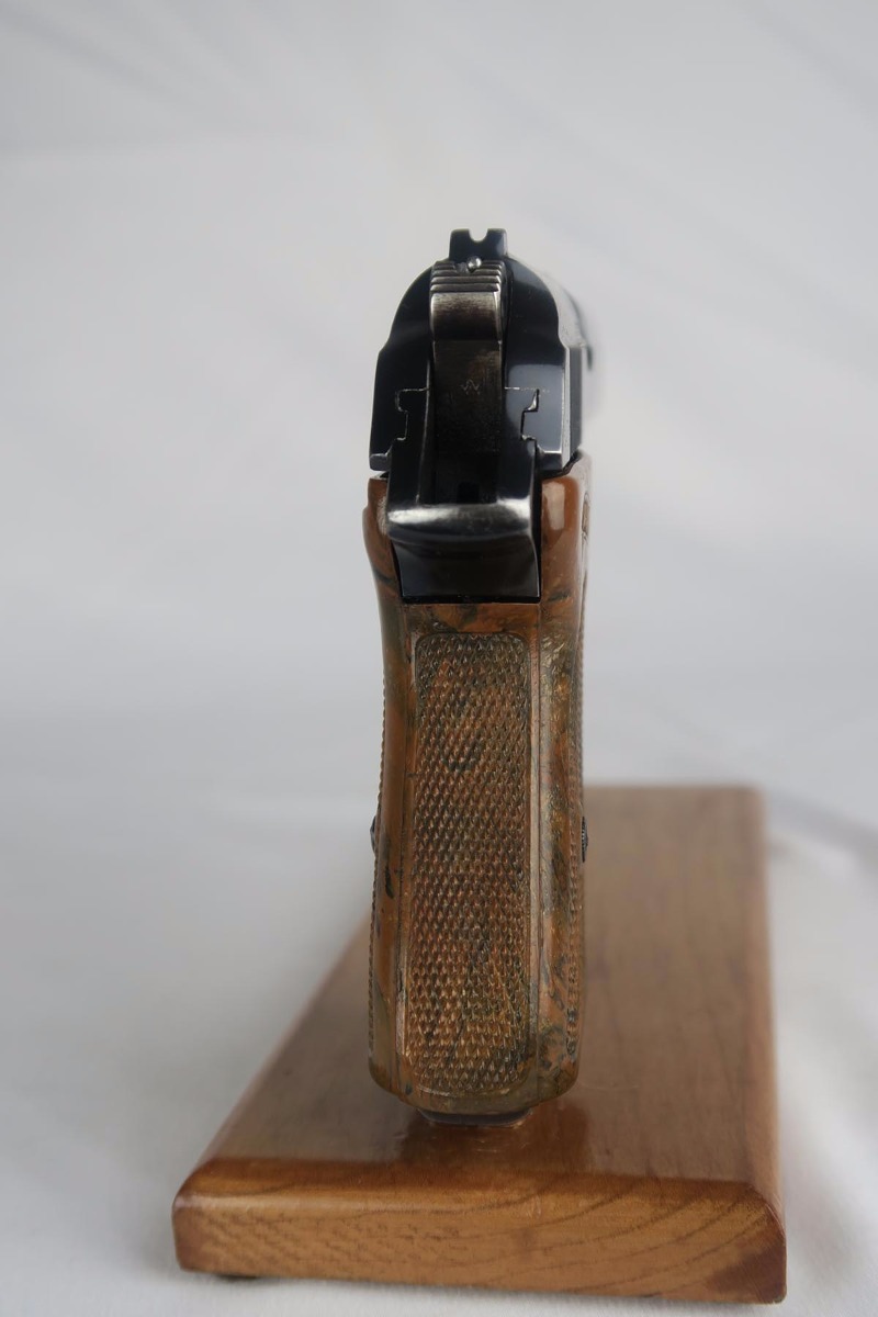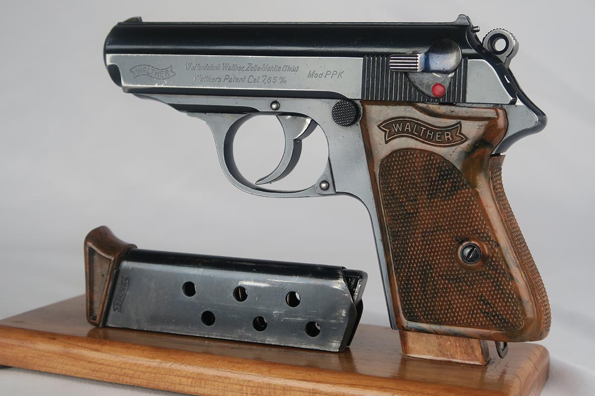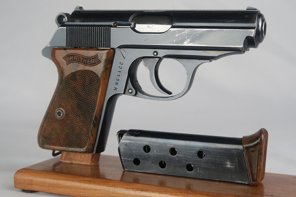 9/15/17 – This is a commercially issued Walther PPK from 1939.  It is all original and correct, with a finish that rates at about 94%.  The most notable spots of wear can be seen on the trigger guard and the right side of the slide.  Crown/N proofs on the slide and frame.  60 degree safety.  Wartime mag with excellent finger extension.  Grip is excellent too with no major flaws.  Very good bore.