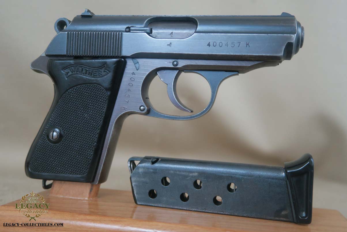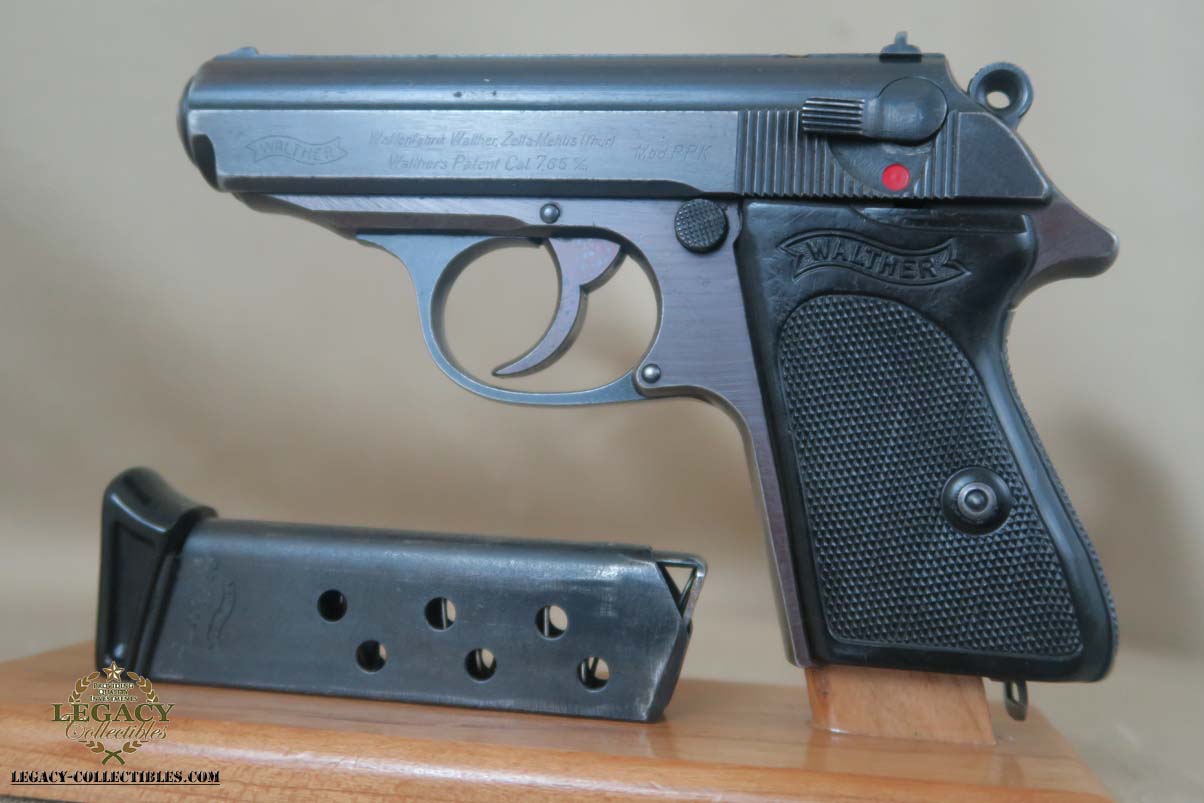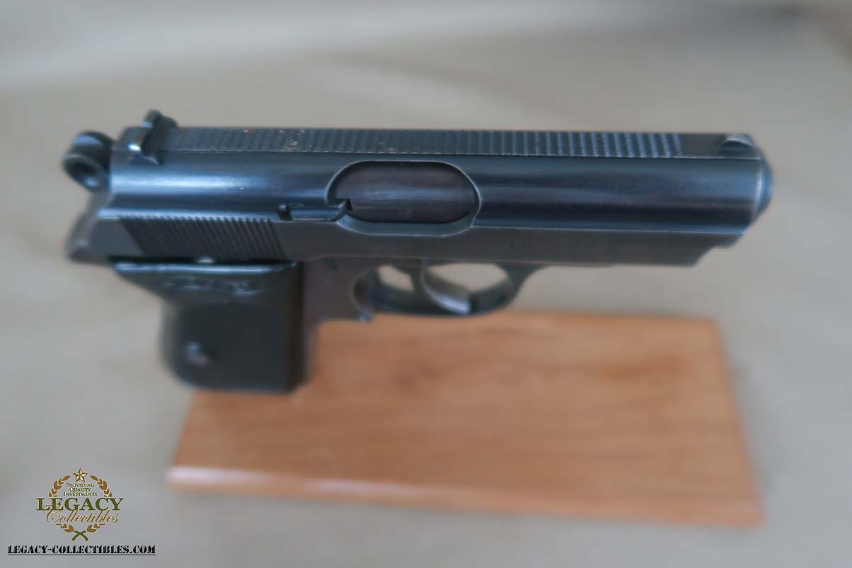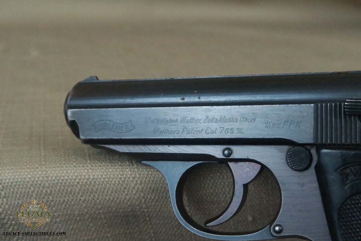 1/4/2017 – This is a nice Walther PPK from World War II. The serial number puts it in the SS range and it was most likely an SS contract pistol. It should have a numbered baseplate, but has the finger extension magazine. We are pricing this as a regular commercial PPK. It has a nice black grip and black finger extension magazine. All matching parts. Excellent bore. Very cool commercial PPK!