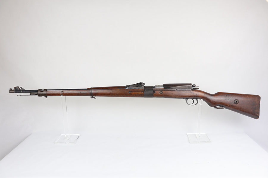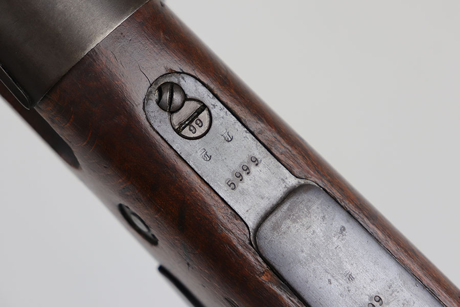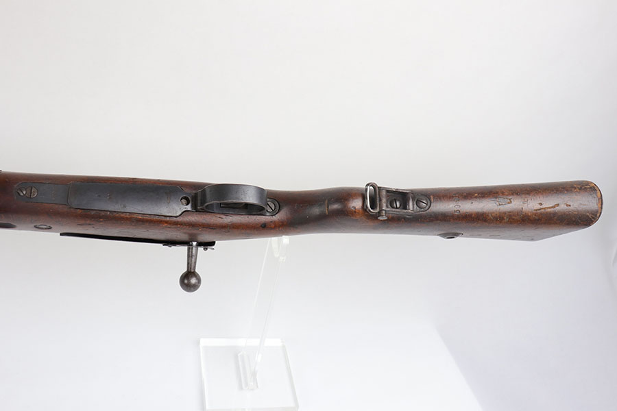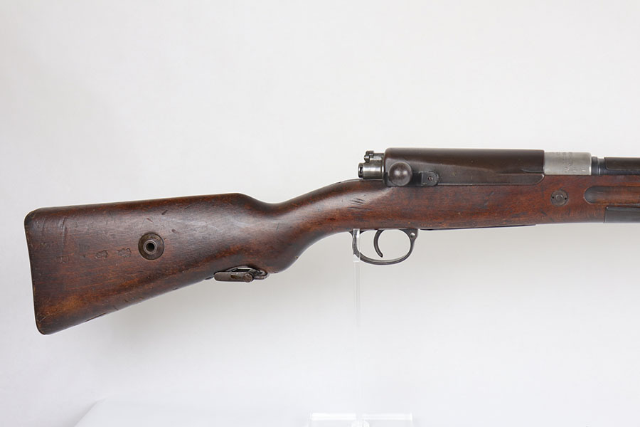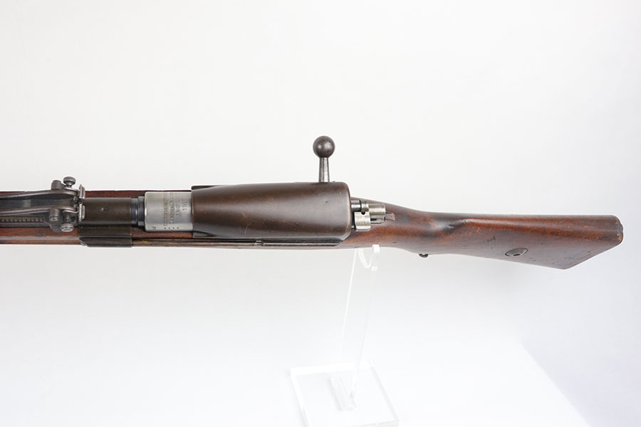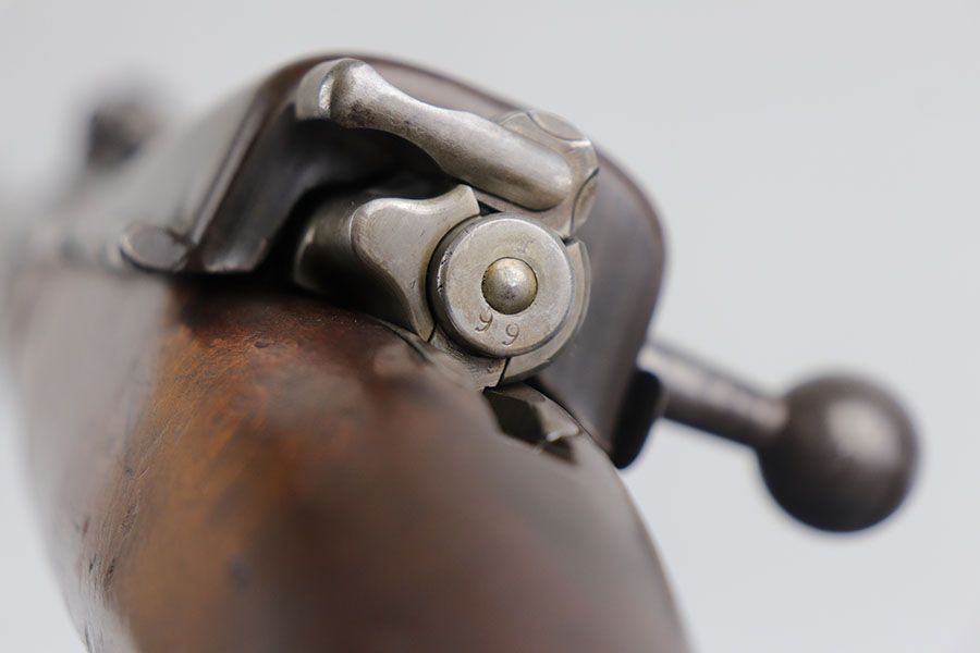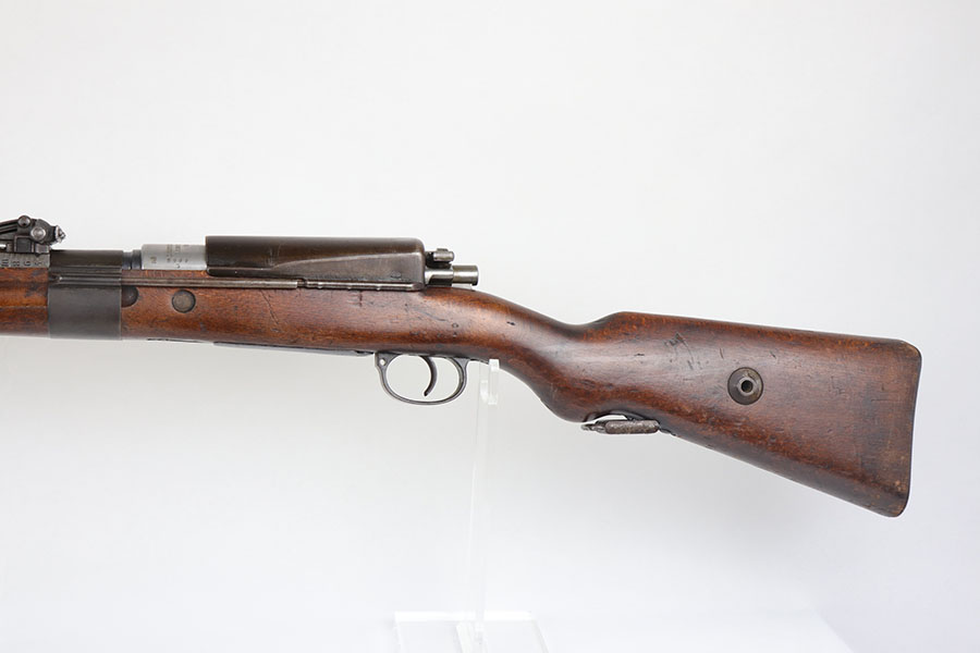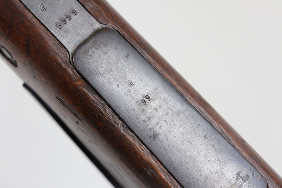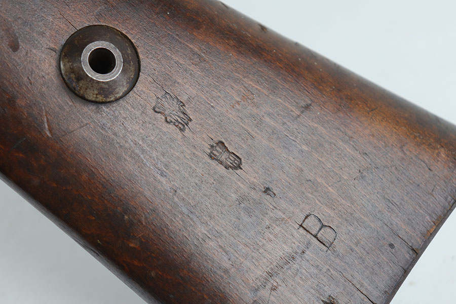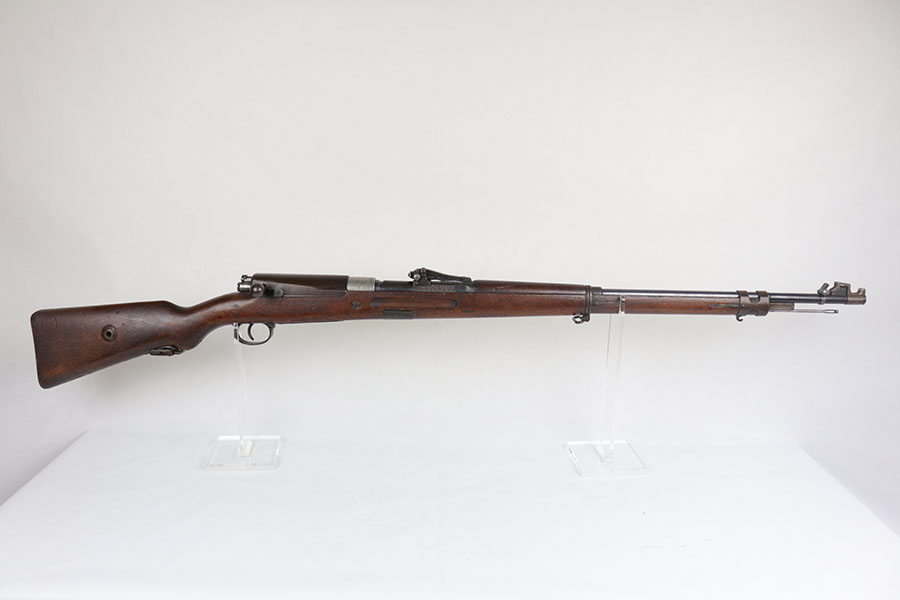 8/13/20 – This is an all matching and original DWM Gewehr 98 in uncommonly seen condition and configuration. This rifle has many especially cool features to it, so we’ll start with the basics. All numbered parts are matching, including the stock and all the way down to the cleaning rod. Secondly, this rifle has especially nice bluing remaining in all finished areas, with some patina on the bands and trigger group but minimal bluing loss overall. The birch wood stock is in very good condition with crisp imperial proofs in several areas. There are a few dings and nicks, most notably on the underside (towards the butt). The rare dust cover is also present, but what makes this an especially rare example is the night sight assembly that incorporates both the front and rear sight, and the unique dust cover assembly. The night sight assembly alone can sell for over $1500! Bore is shiny with strong rifling and minor sign of use.