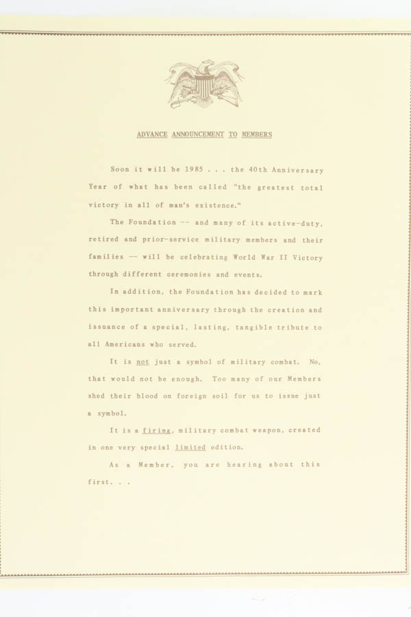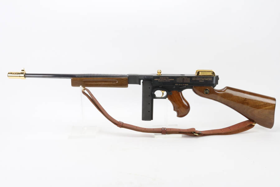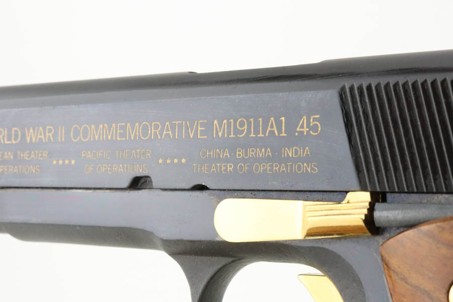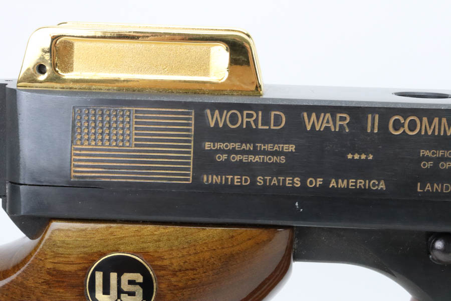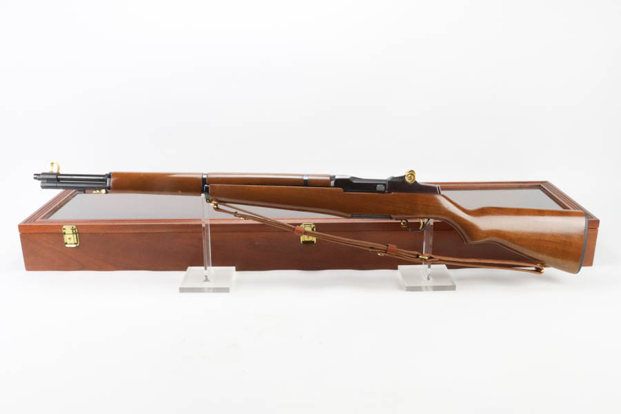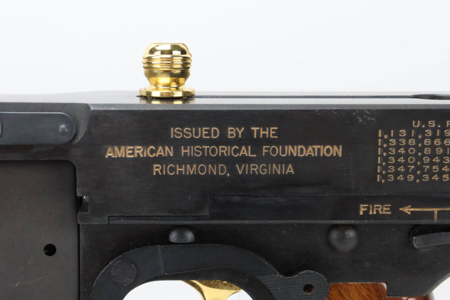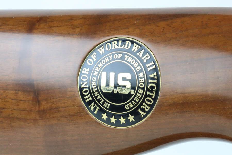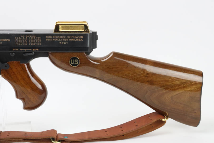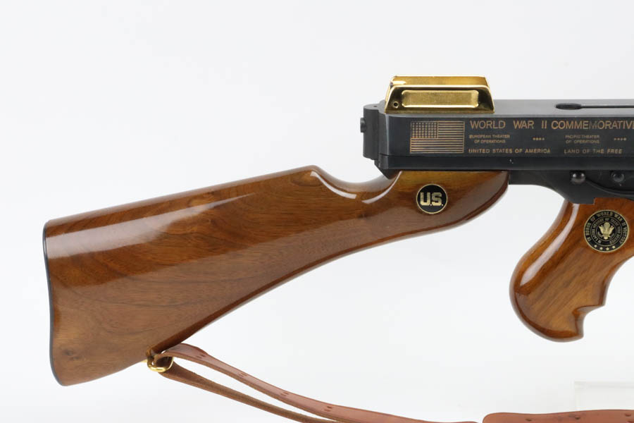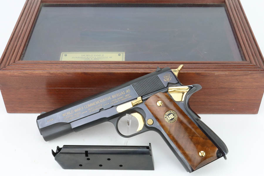 6/18/24 – This is a very cool, matching set of the Auto Ordnance WW2 Commemorative Firearms offering issued in conjunction with the American Historical Society. This four-gun set has matching serial numbers between each firearm, gun #296 in the set. This set was bought new by our consignor and he never fired any of them. They are all in mint condition, and come with all of the original display cases and paperwork/literature. The Garand is a Springfield production, Iver Johnson made the M1 carbine, and Auto Ordnance produced the 1911A1 and Thompson. It appears only 500 of these sets were made and it’s very difficult to find a matching set, especially in unfired condition.